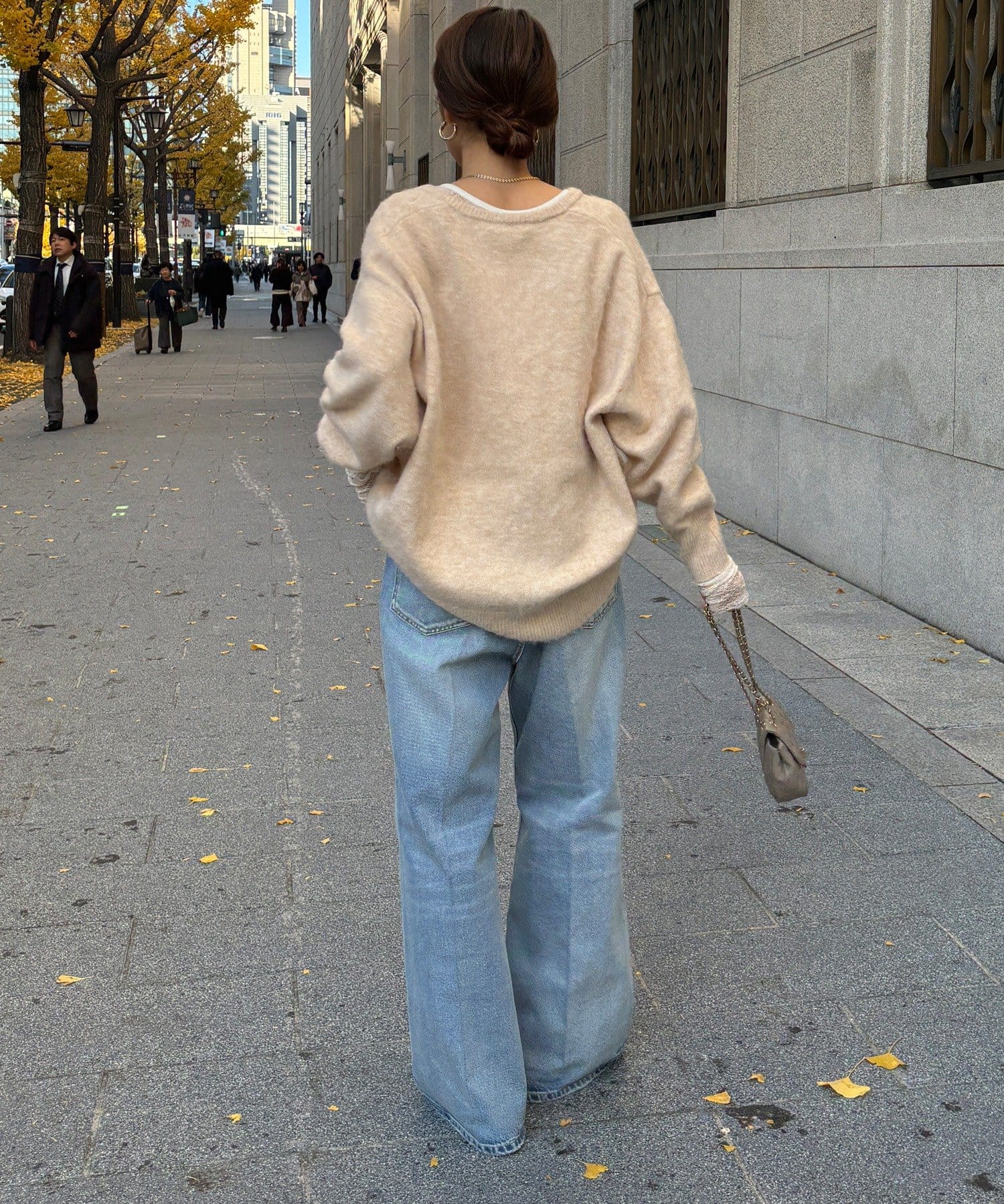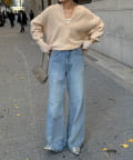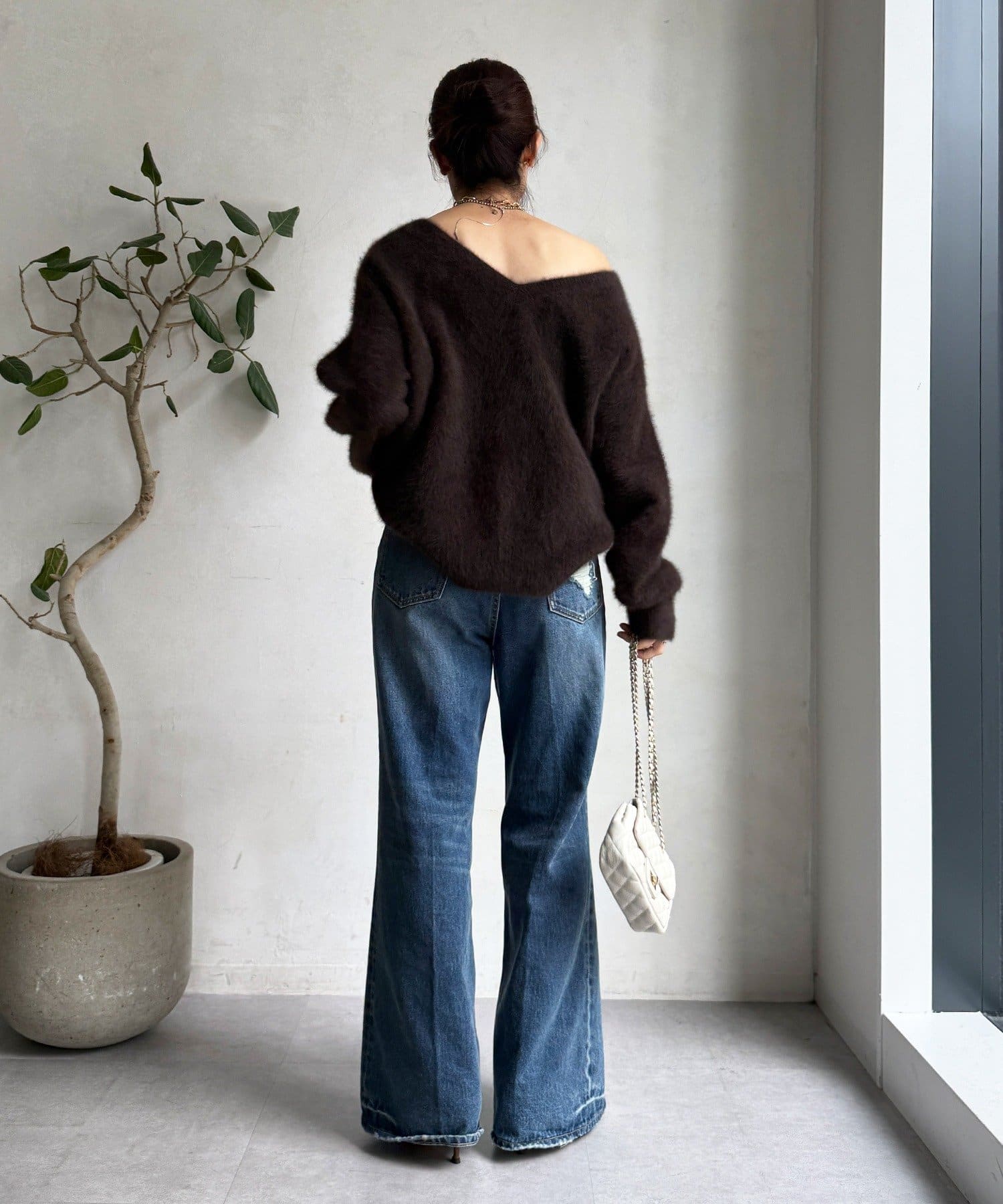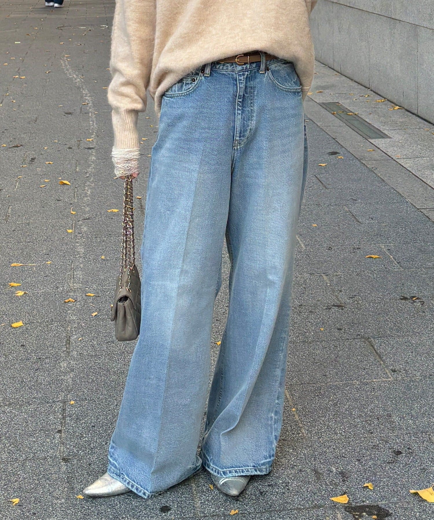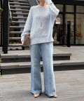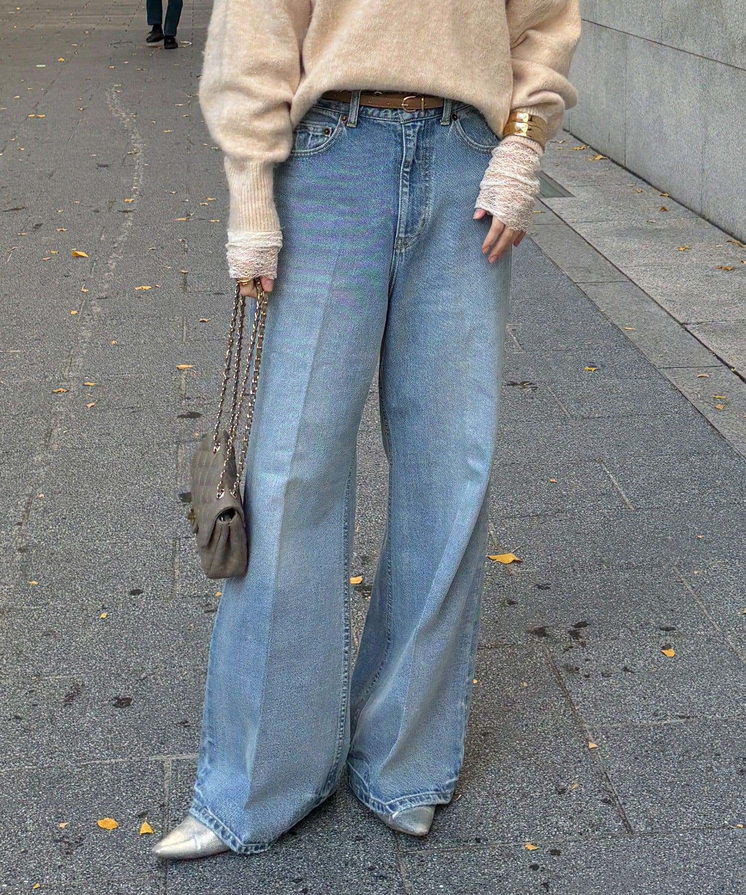 【完売カラー再追加!/2サイズ展開/美脚効果】ルーズフレアデニム