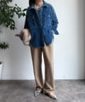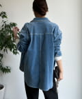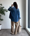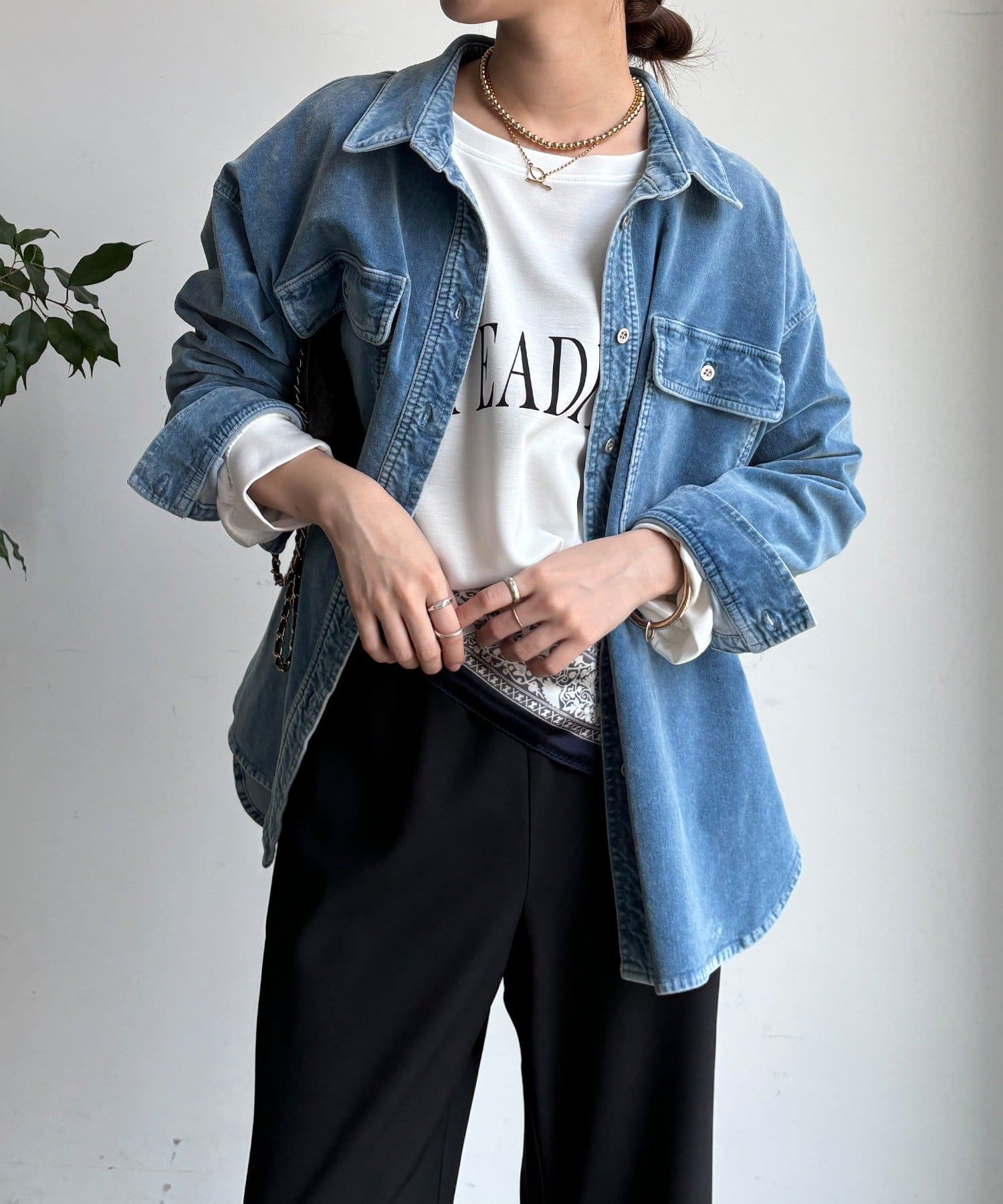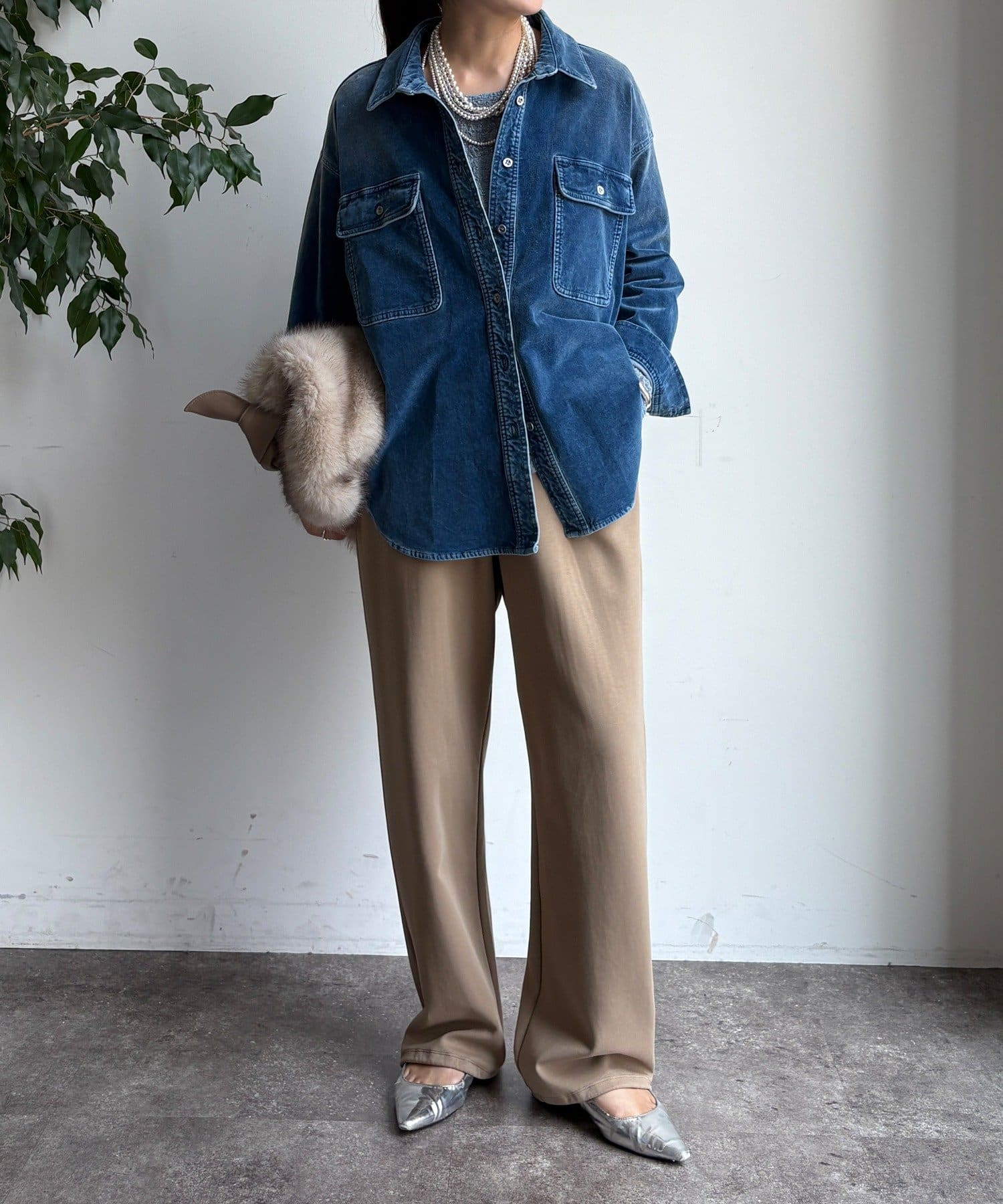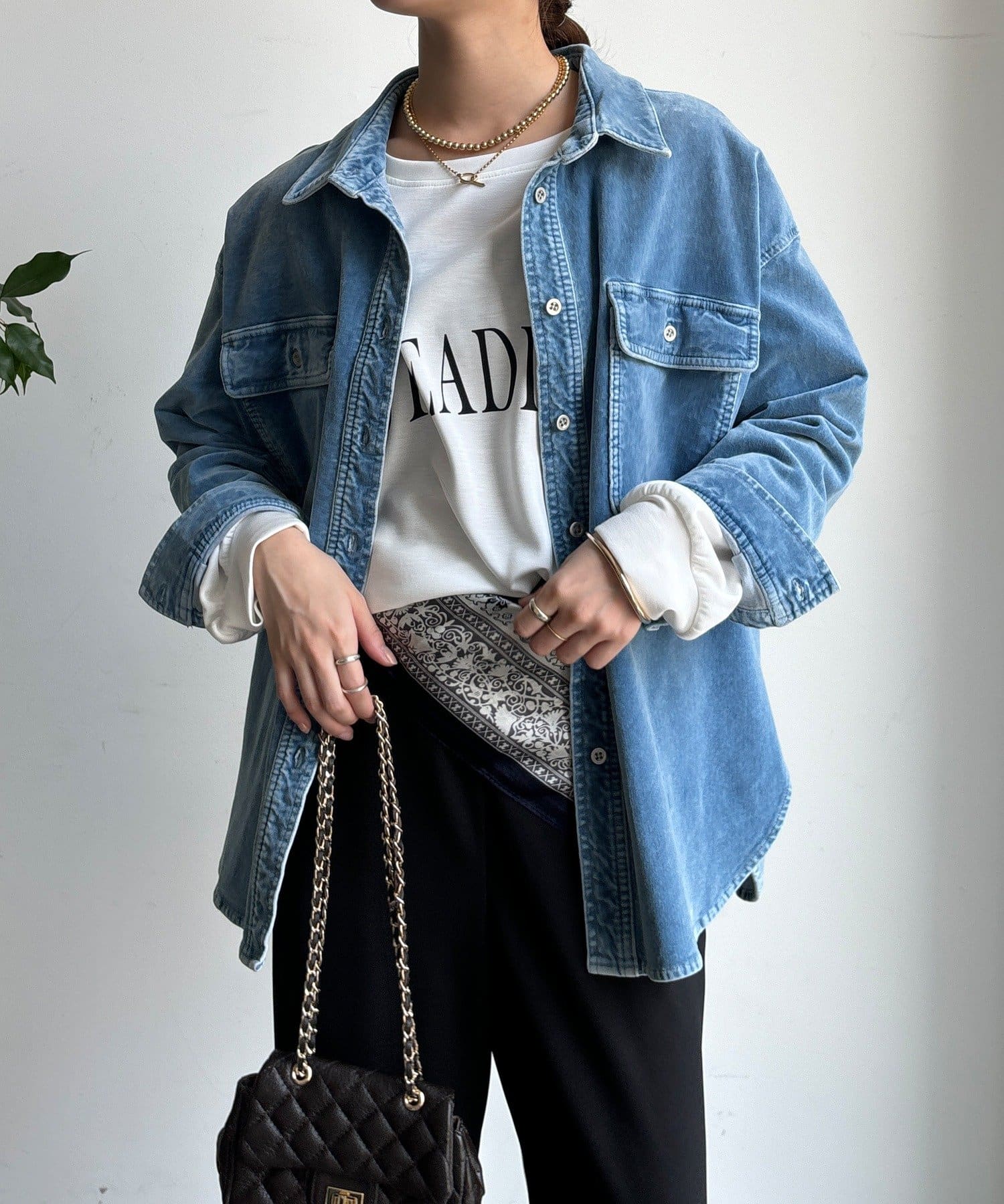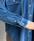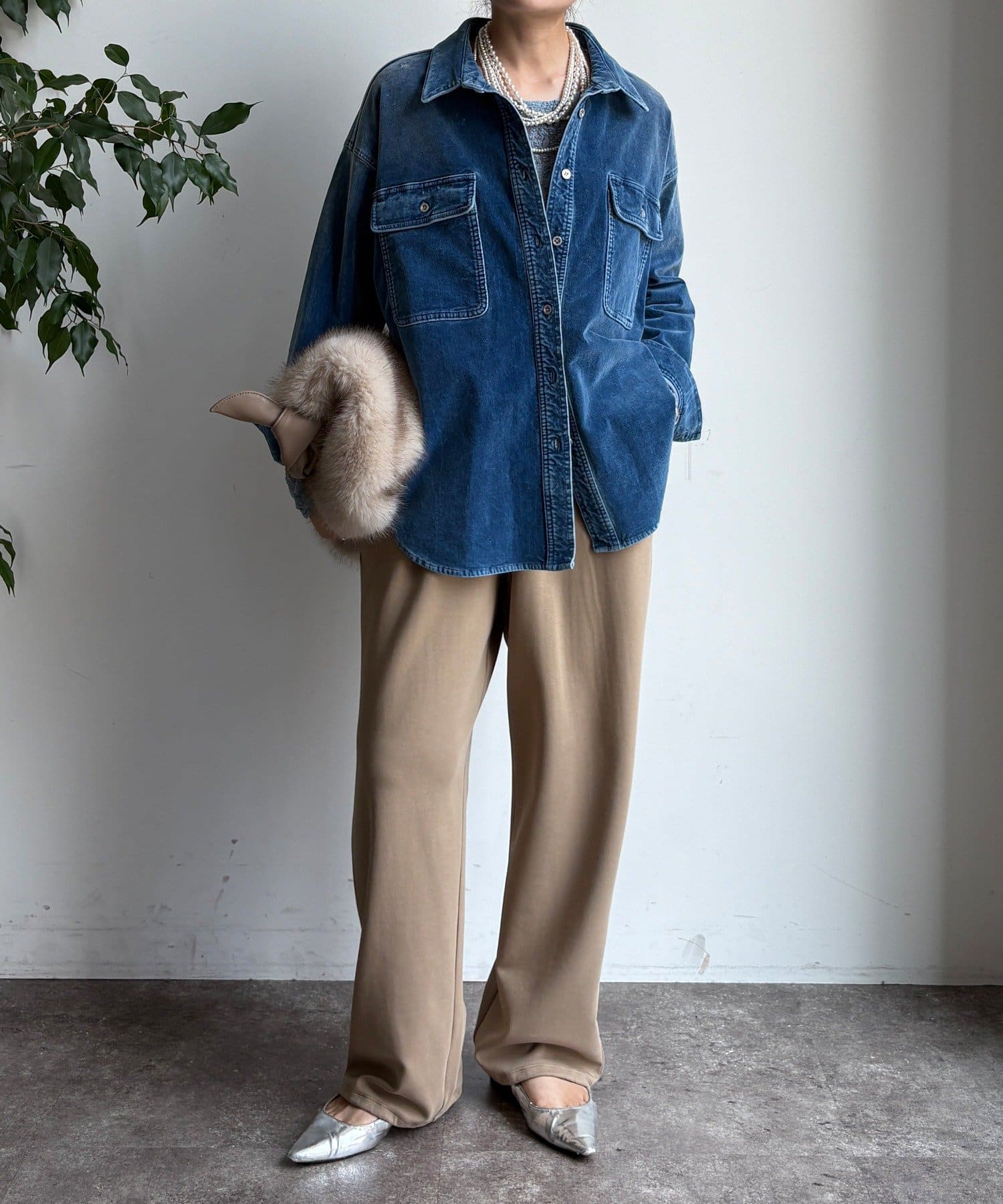 表面が毛羽だった綿の別珍素材を使用。ほかにはあまりない素材感のデニムシャツで新鮮な印象を与えます。
