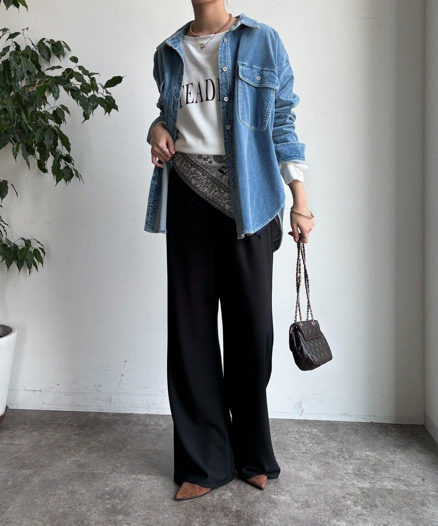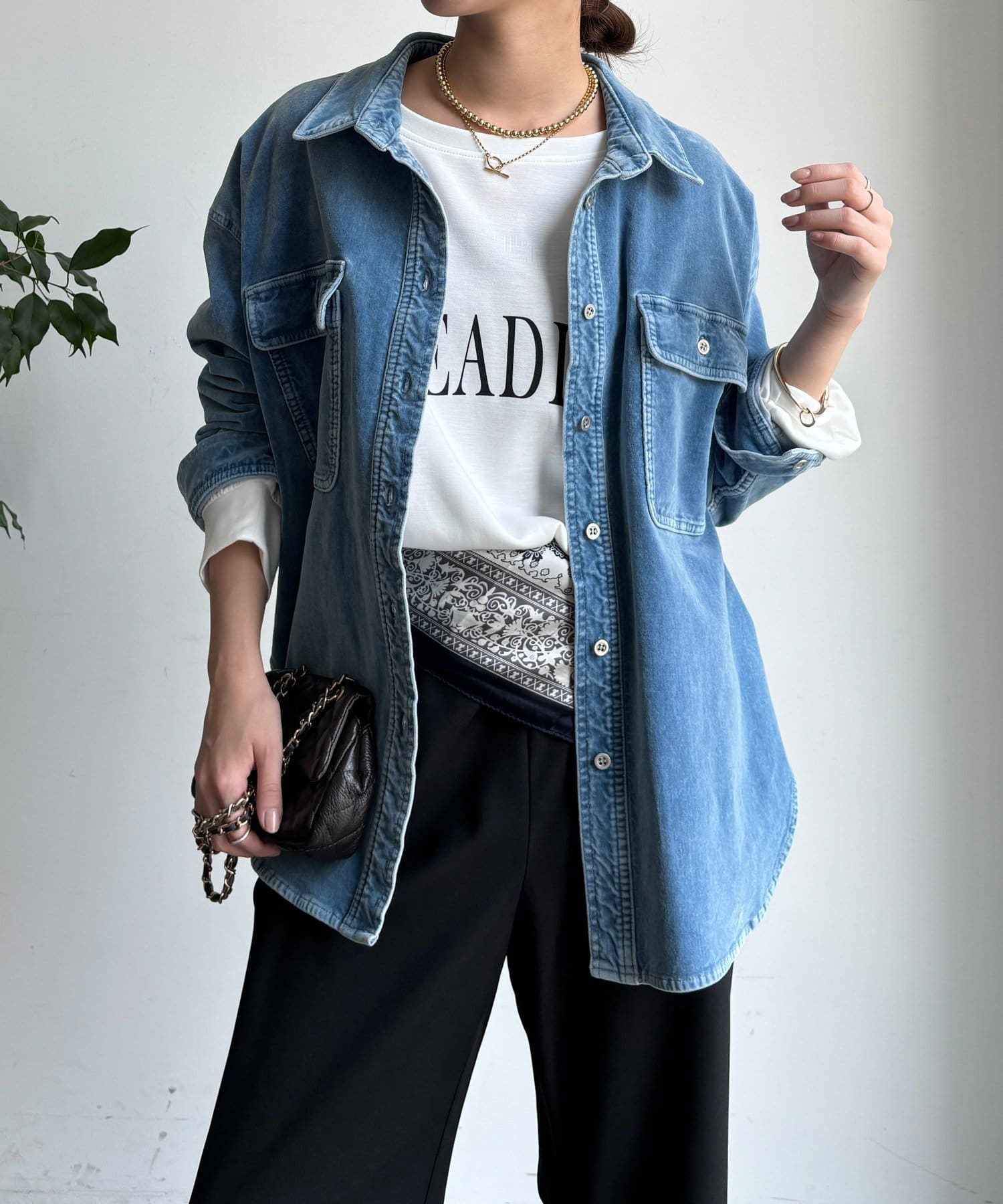 余裕感のあるシルエットのため羽織としても、プルオーバーとしても着られる1着は着回しが楽しめそう。