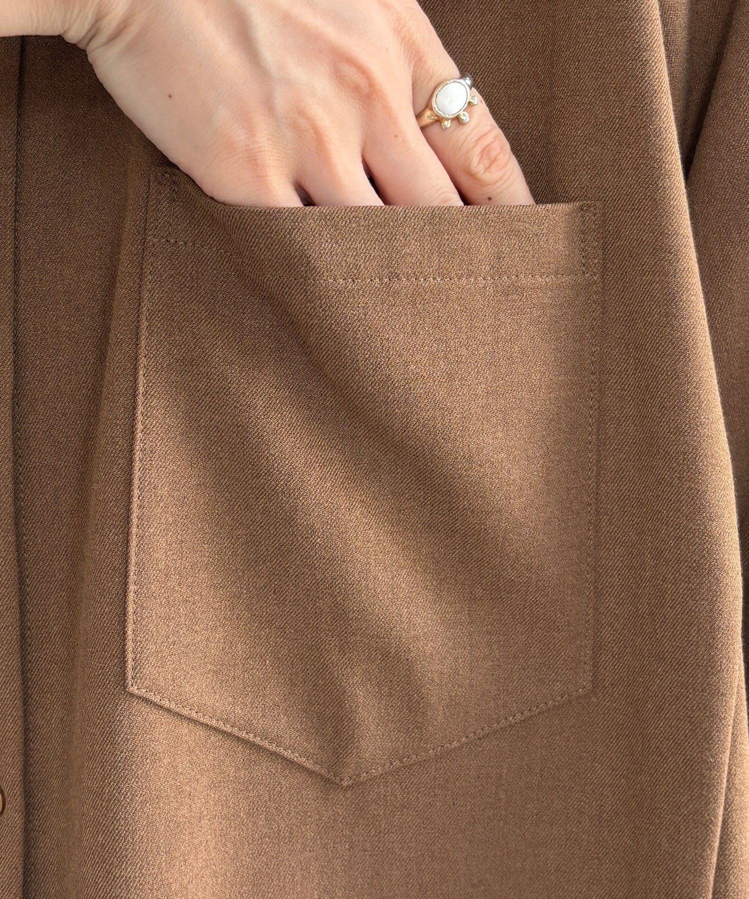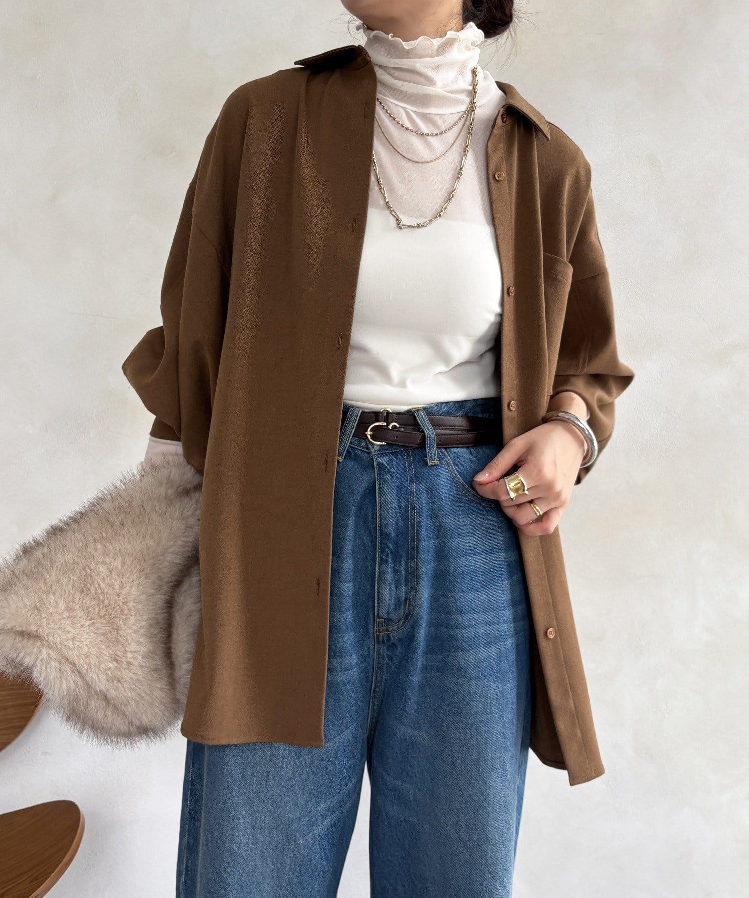 ウール混の素材でシャツながらもしっかりとした素材を使用し、仕上げた1着。