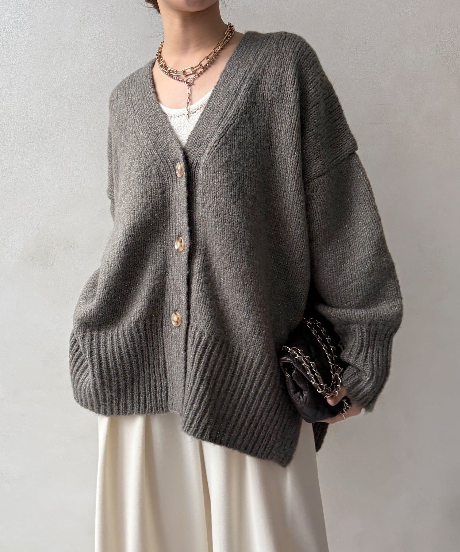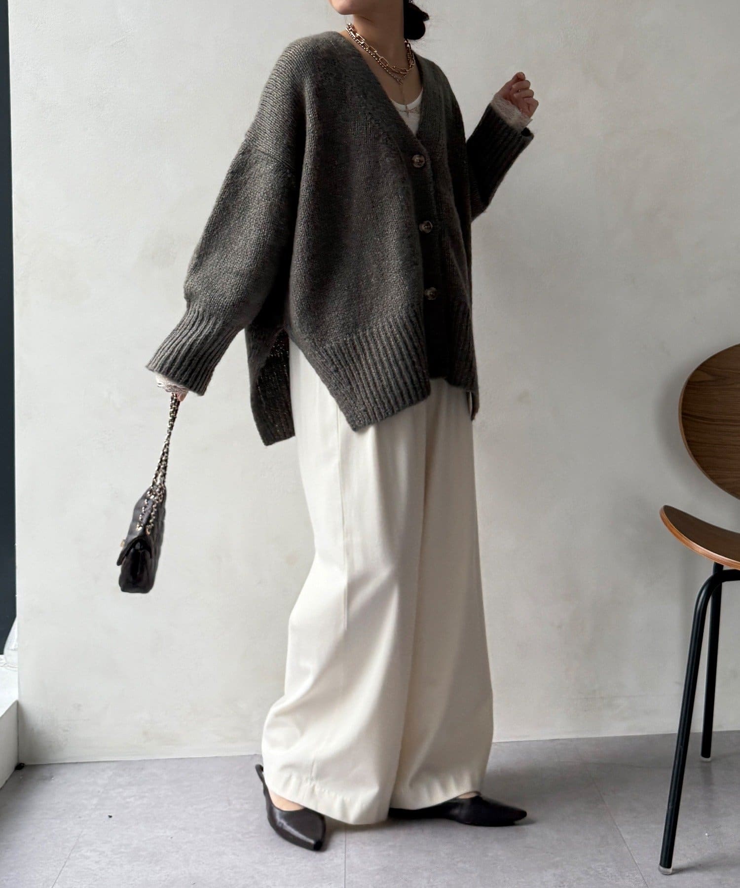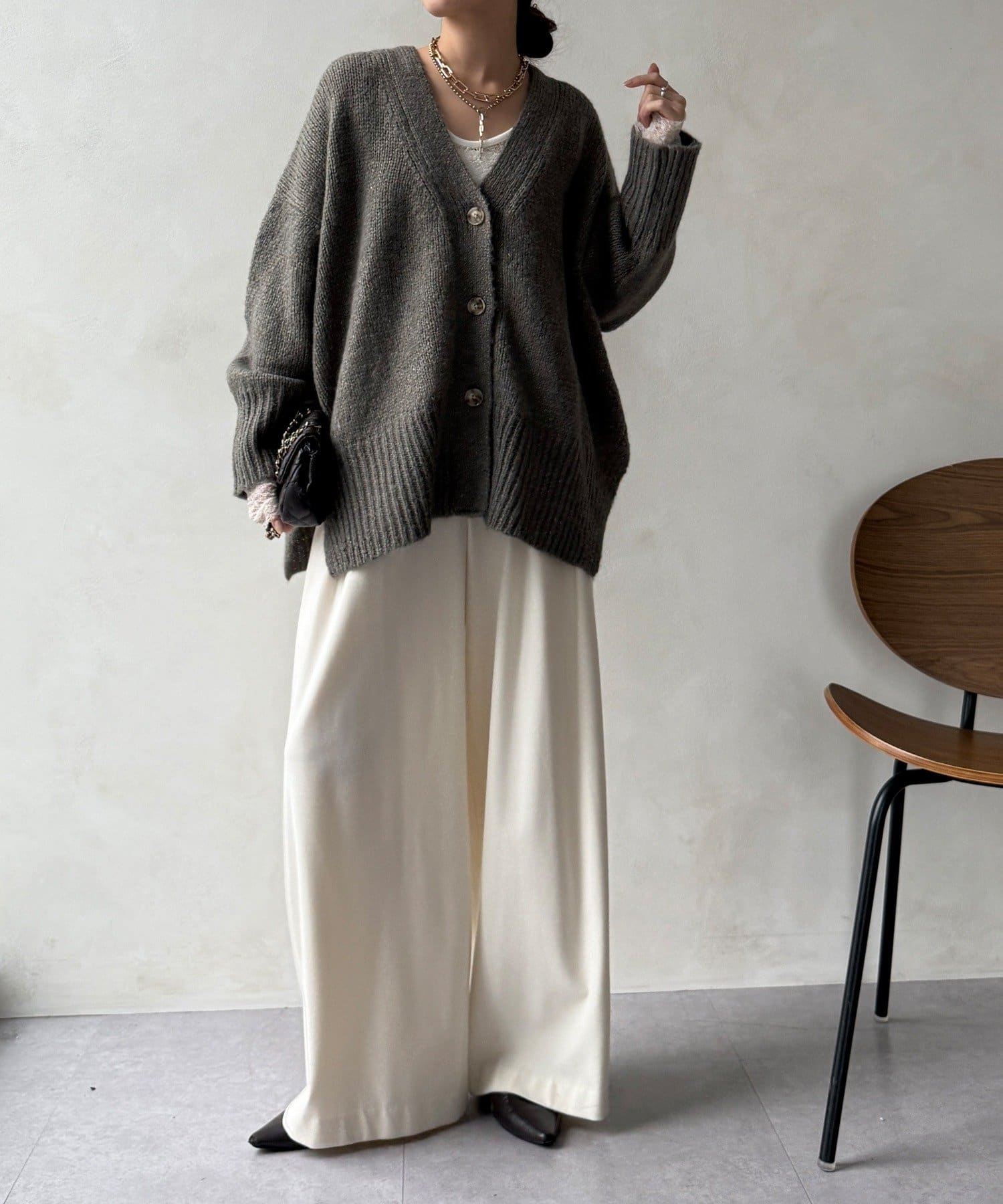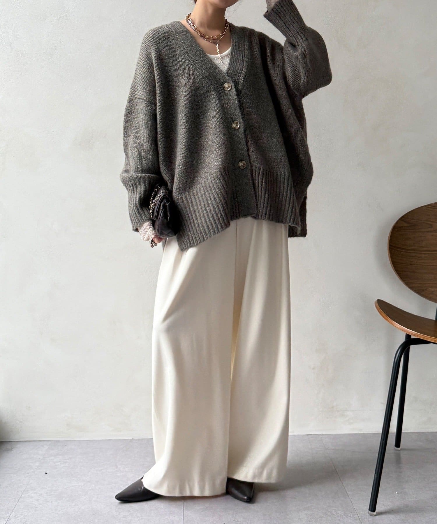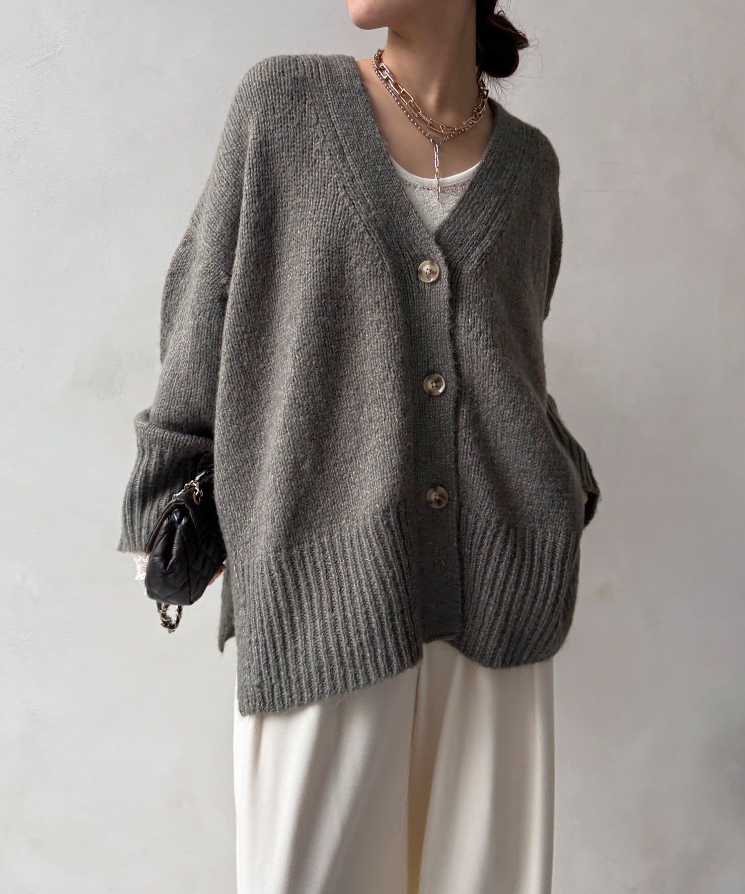 デイリーにもお出かけにも使える万能ニットカーデです。