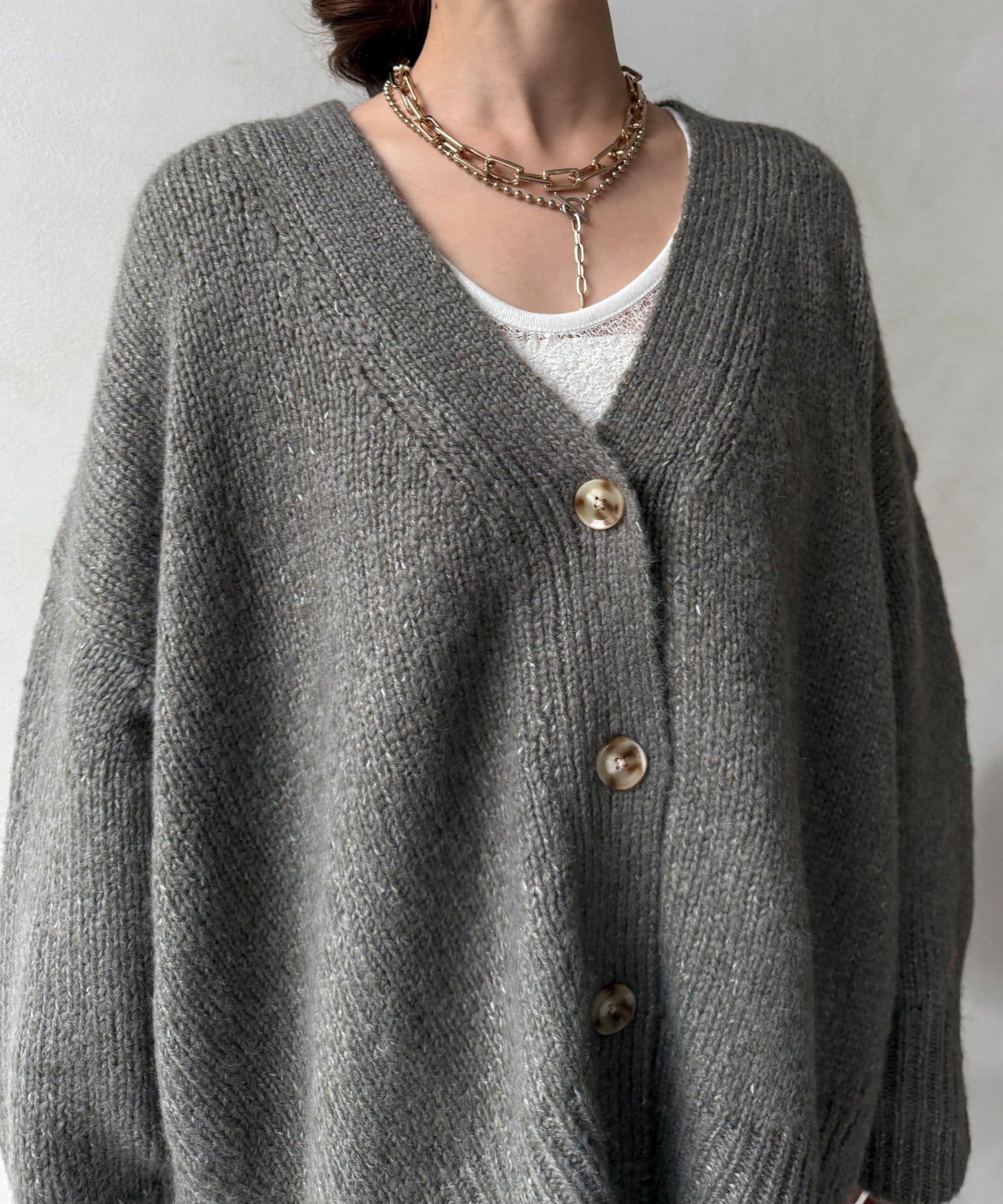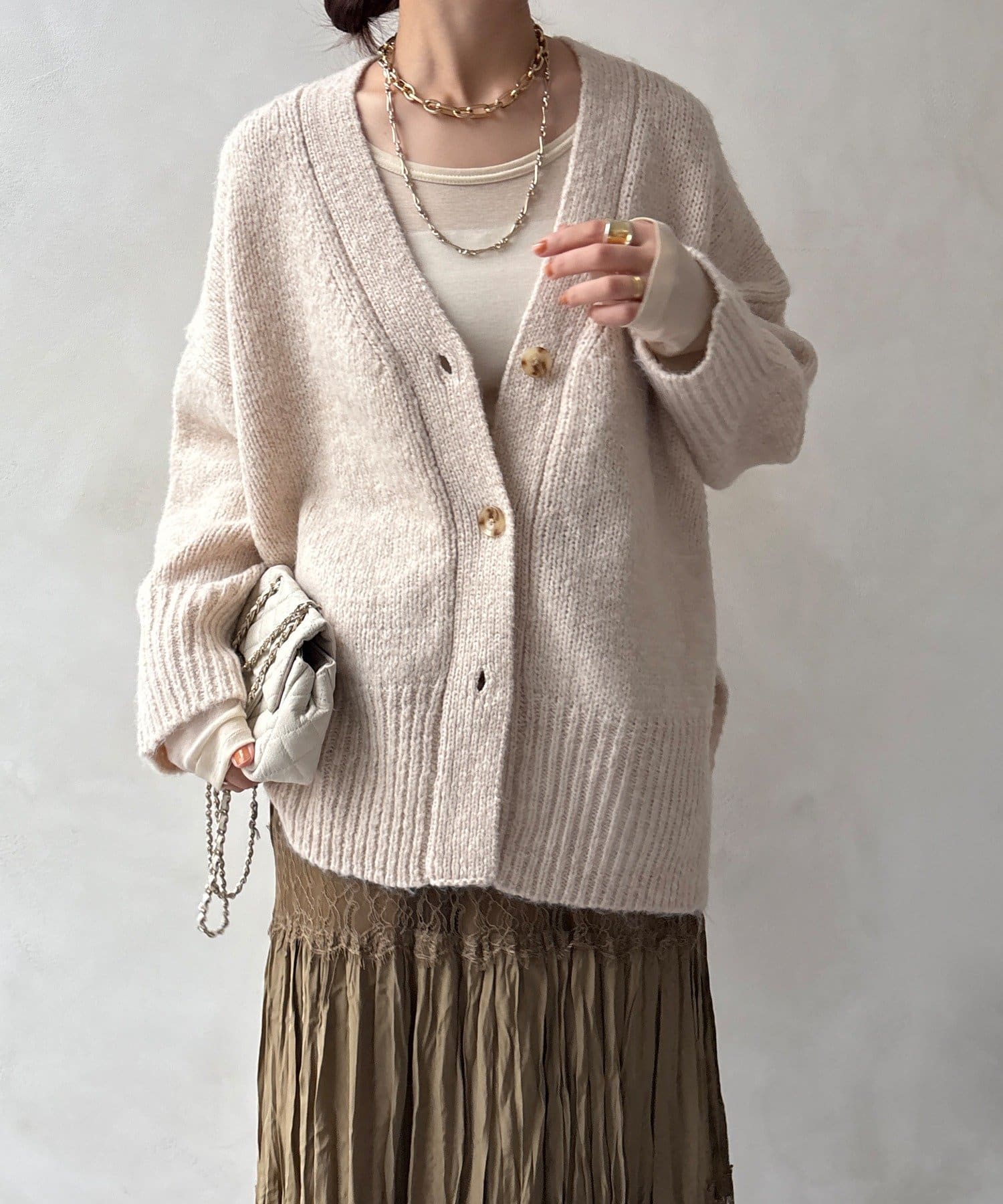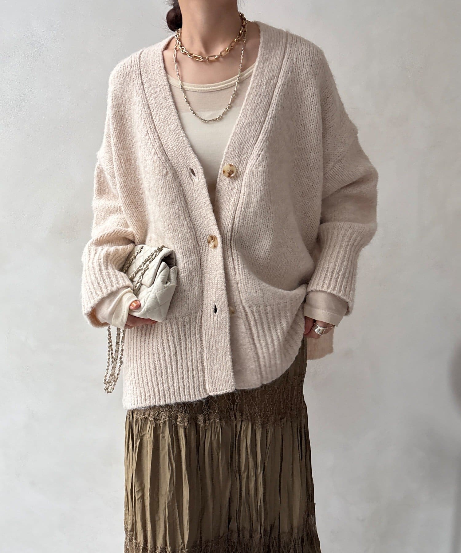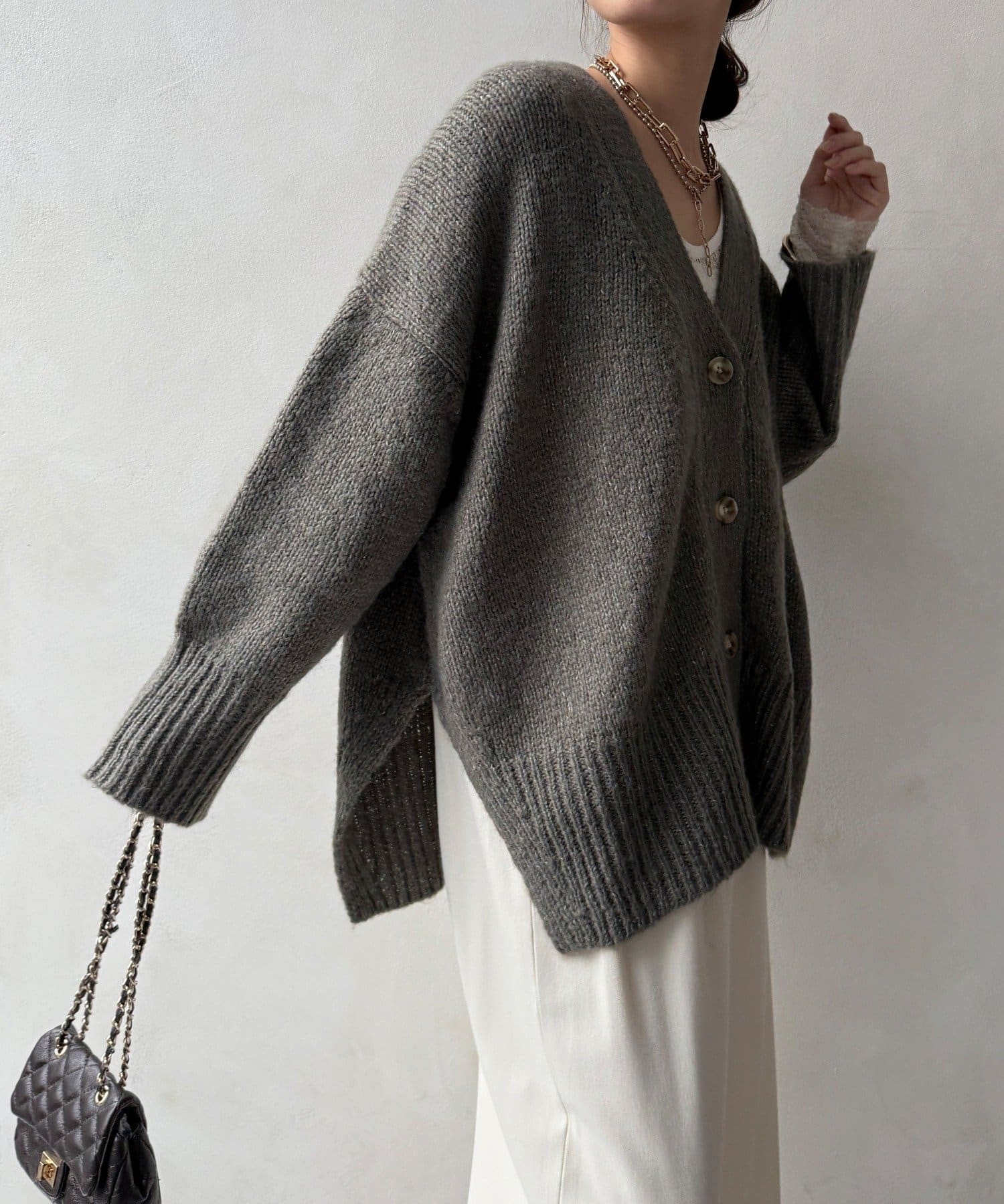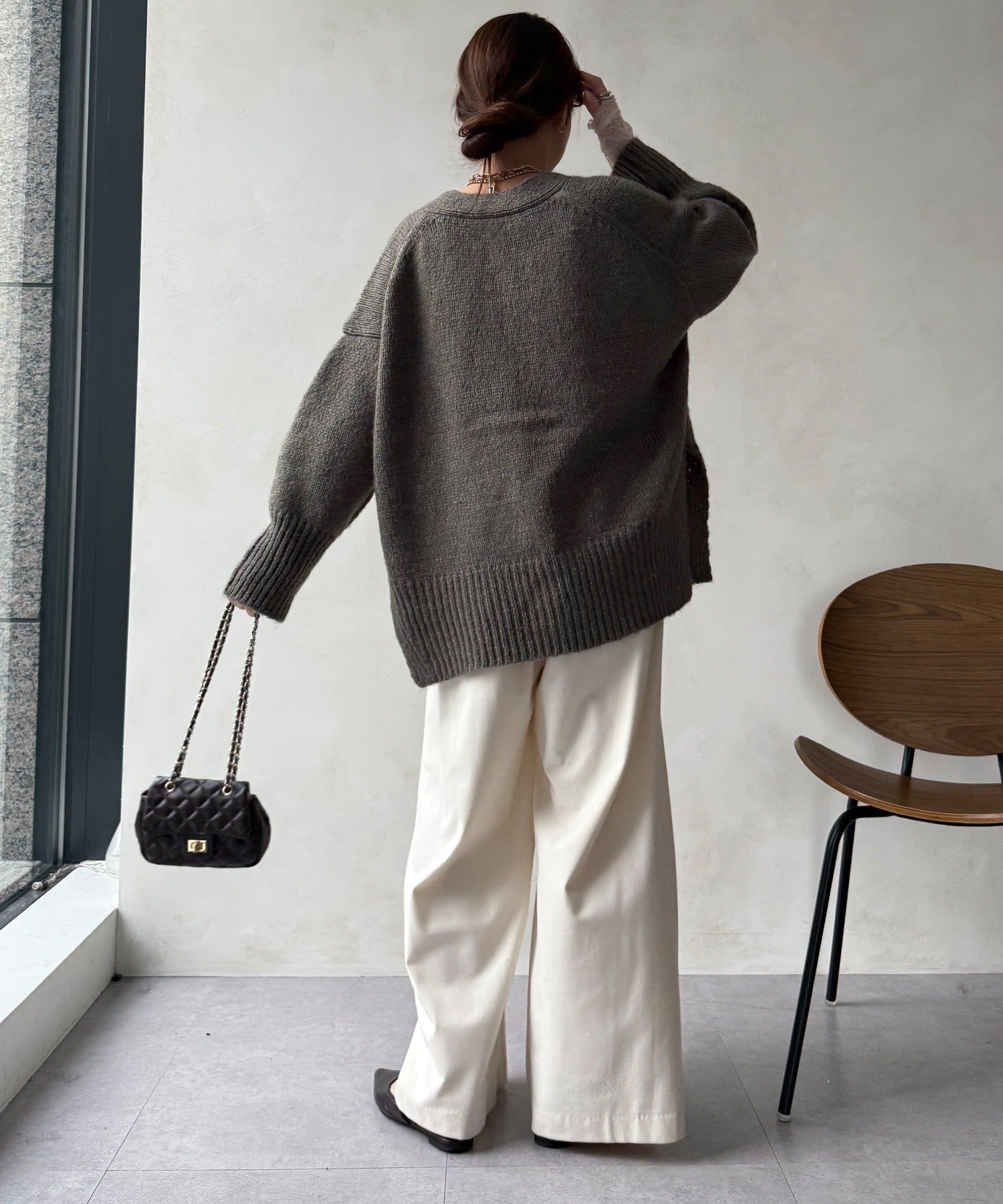 デイリーにもお出かけにも使える万能ニットカーデです。