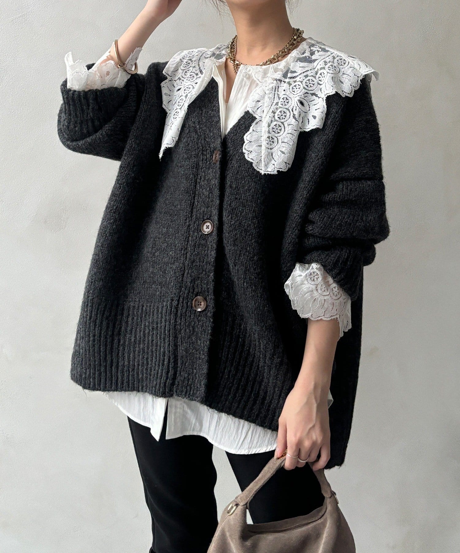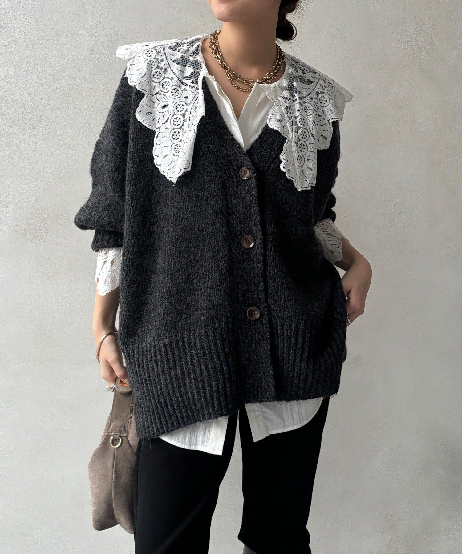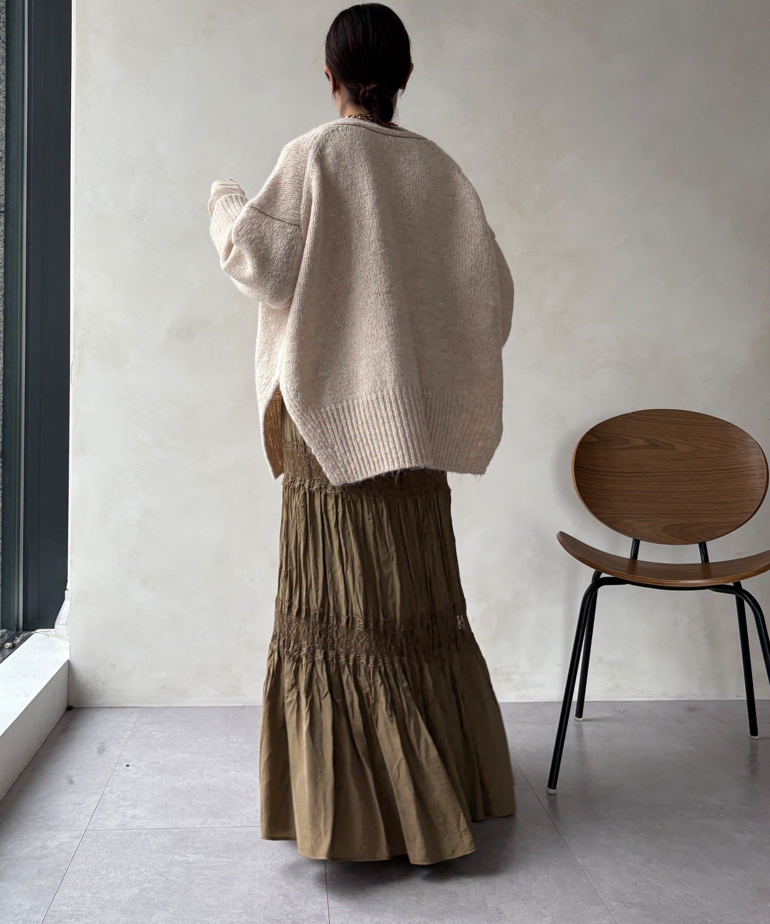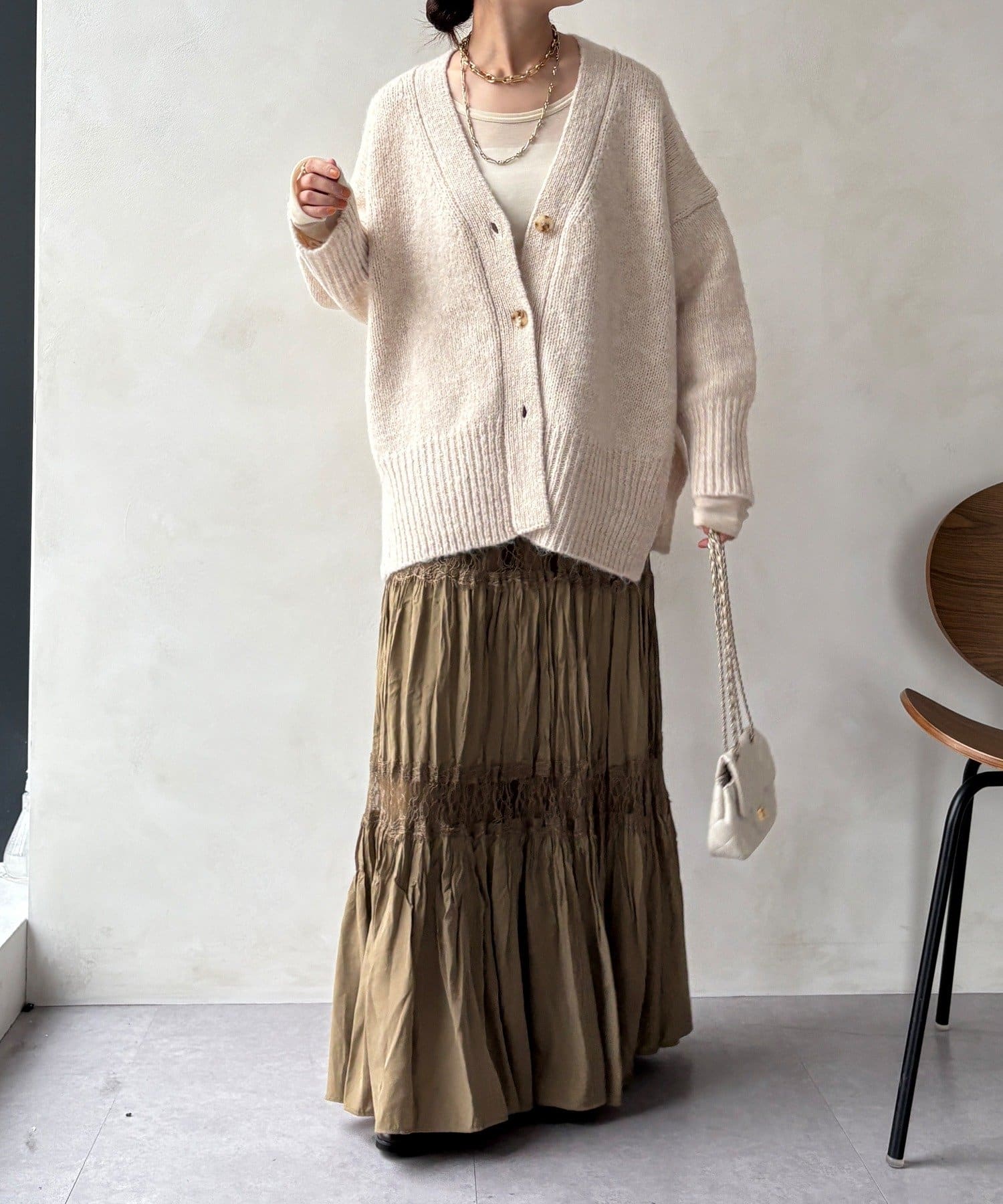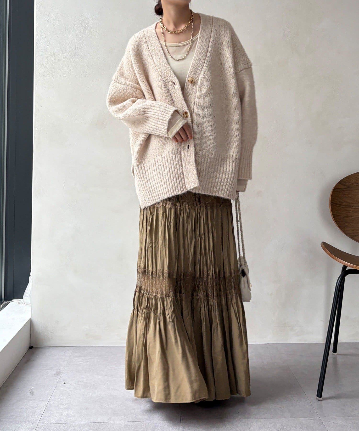 デイリーにもお出かけにも使える万能ニットカーデです。