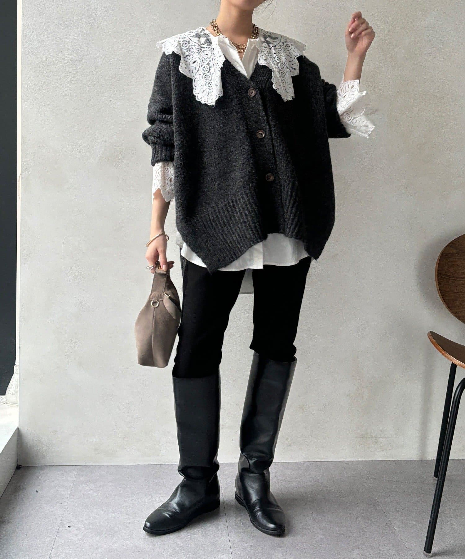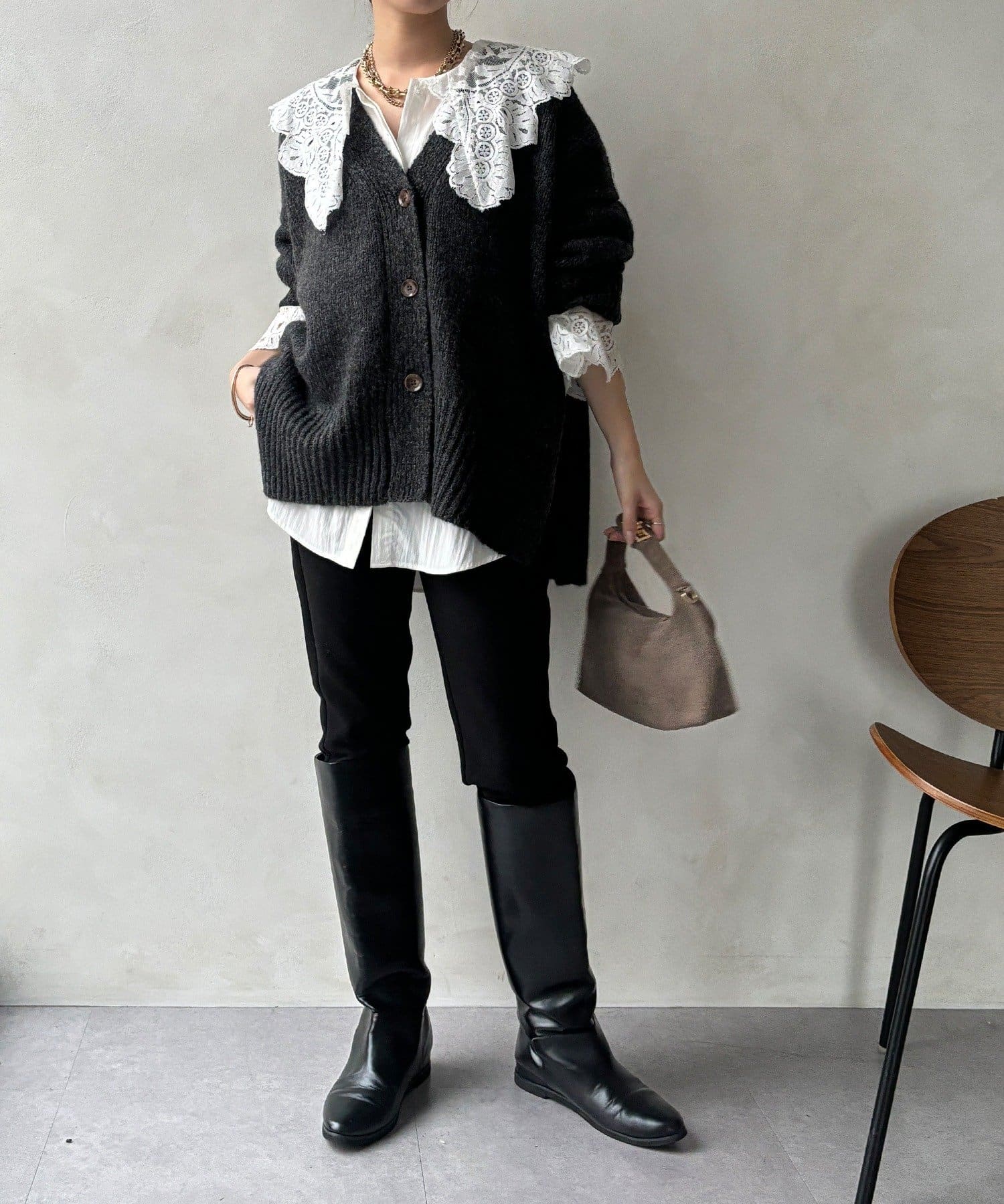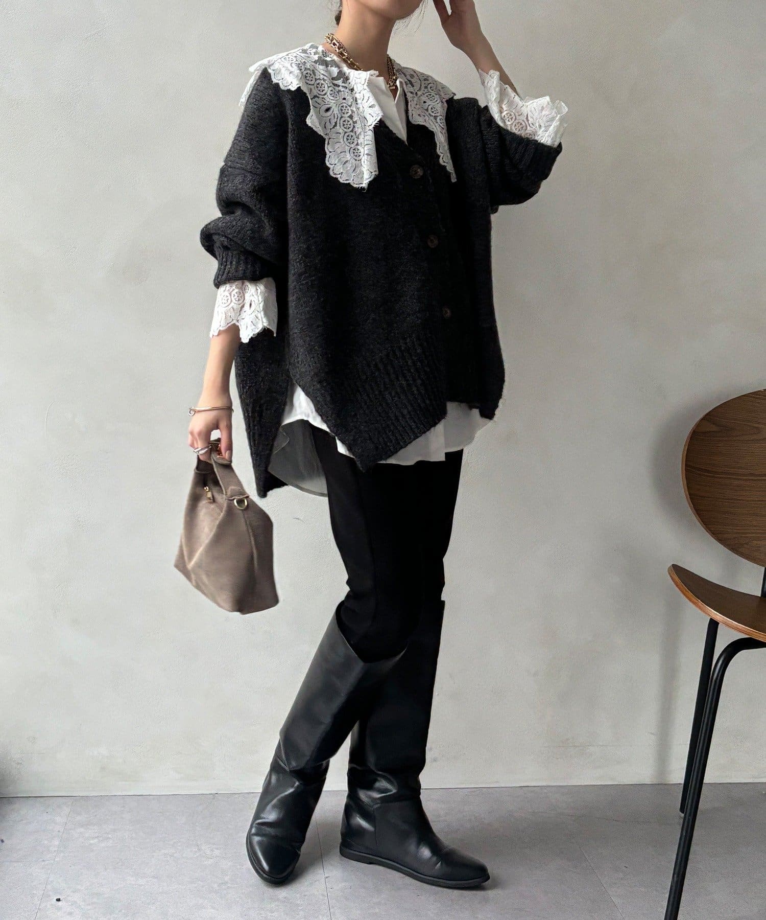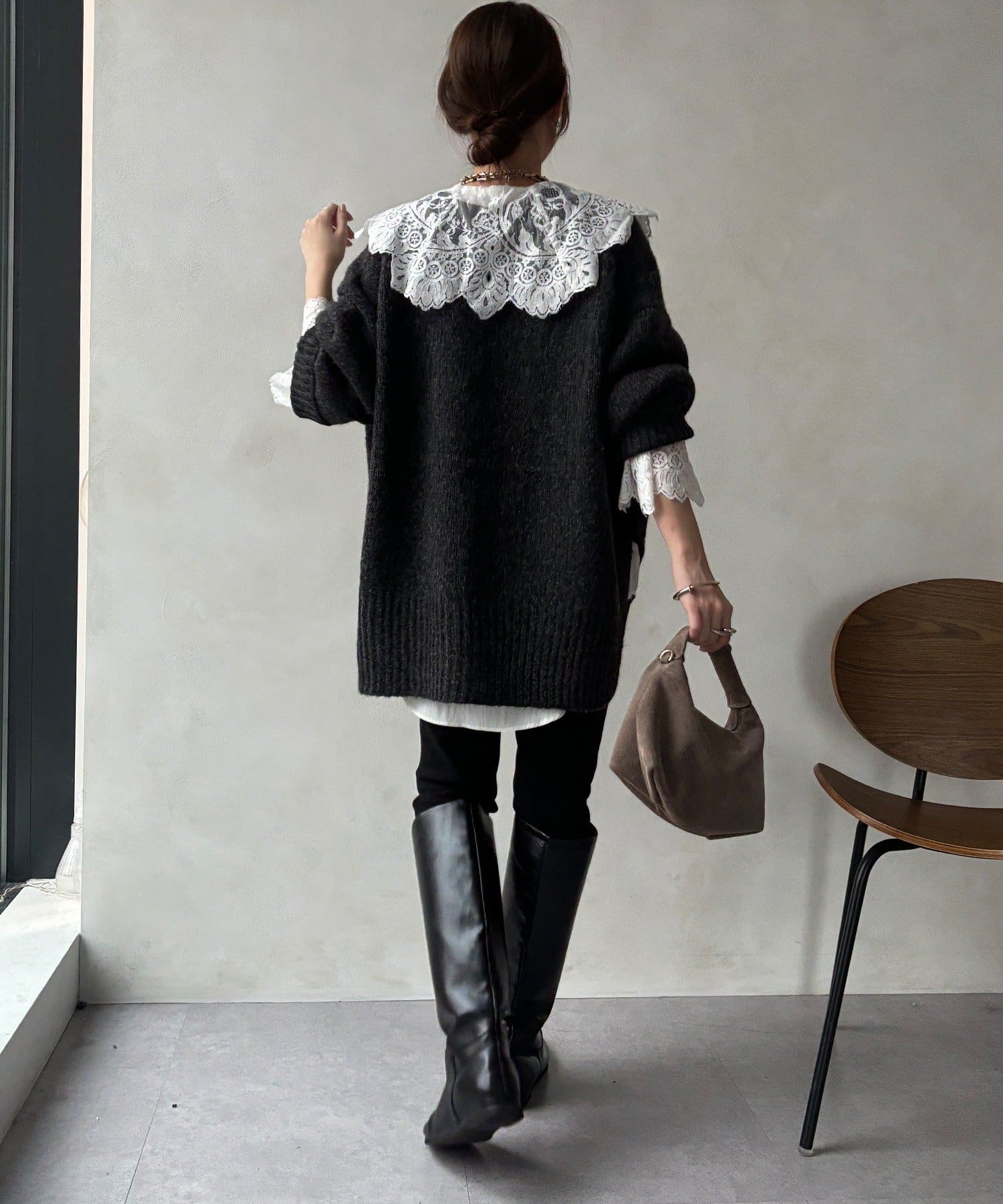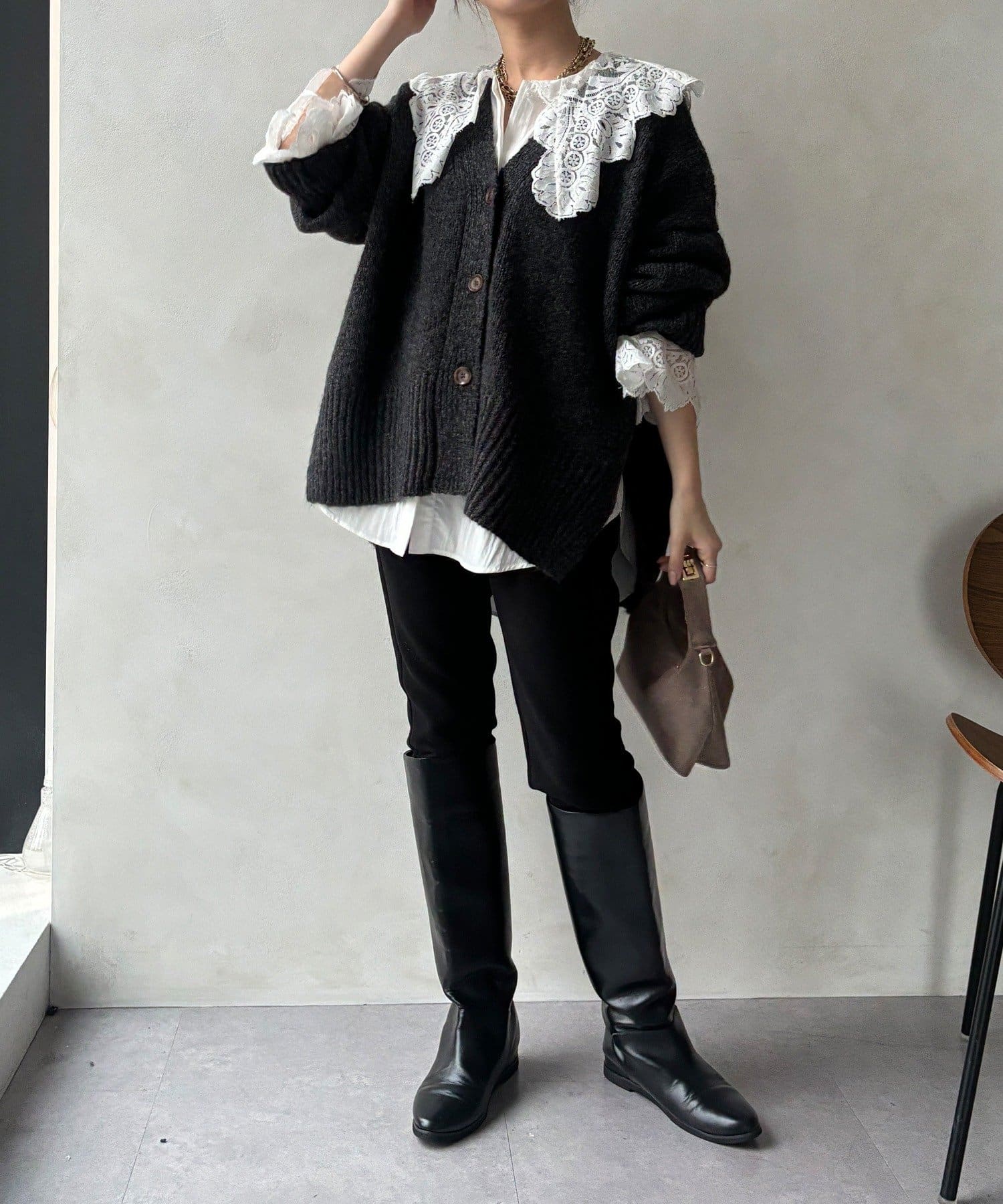 デイリーにもお出かけにも使える万能ニットカーデです。