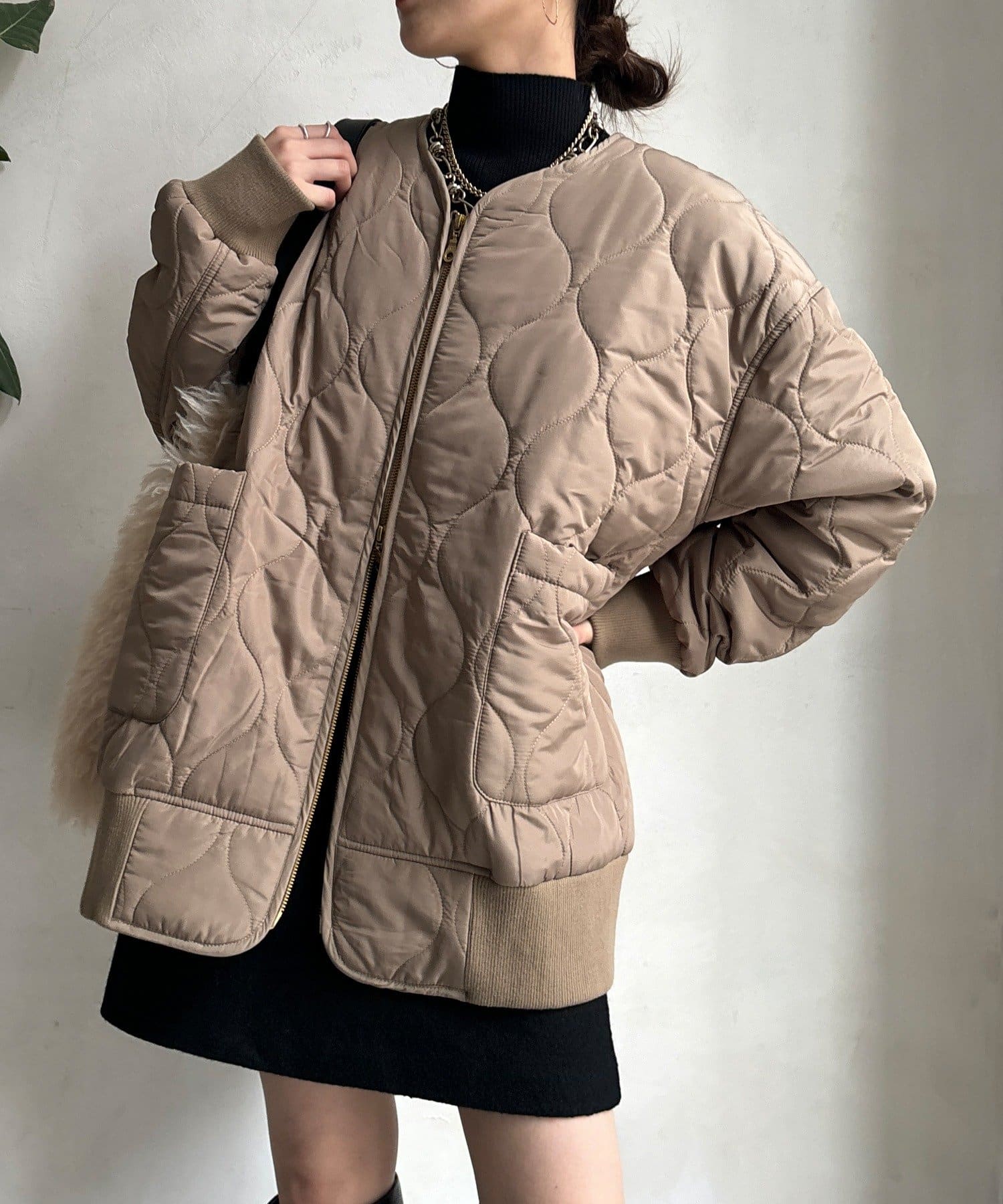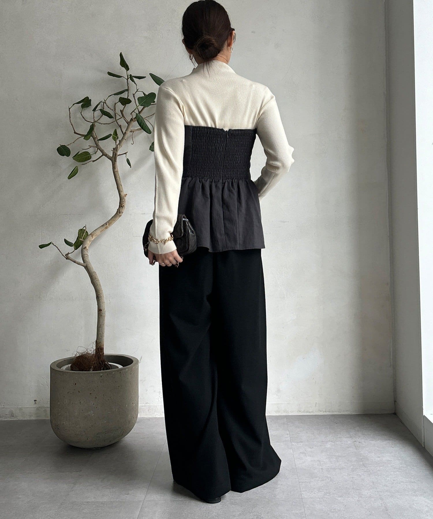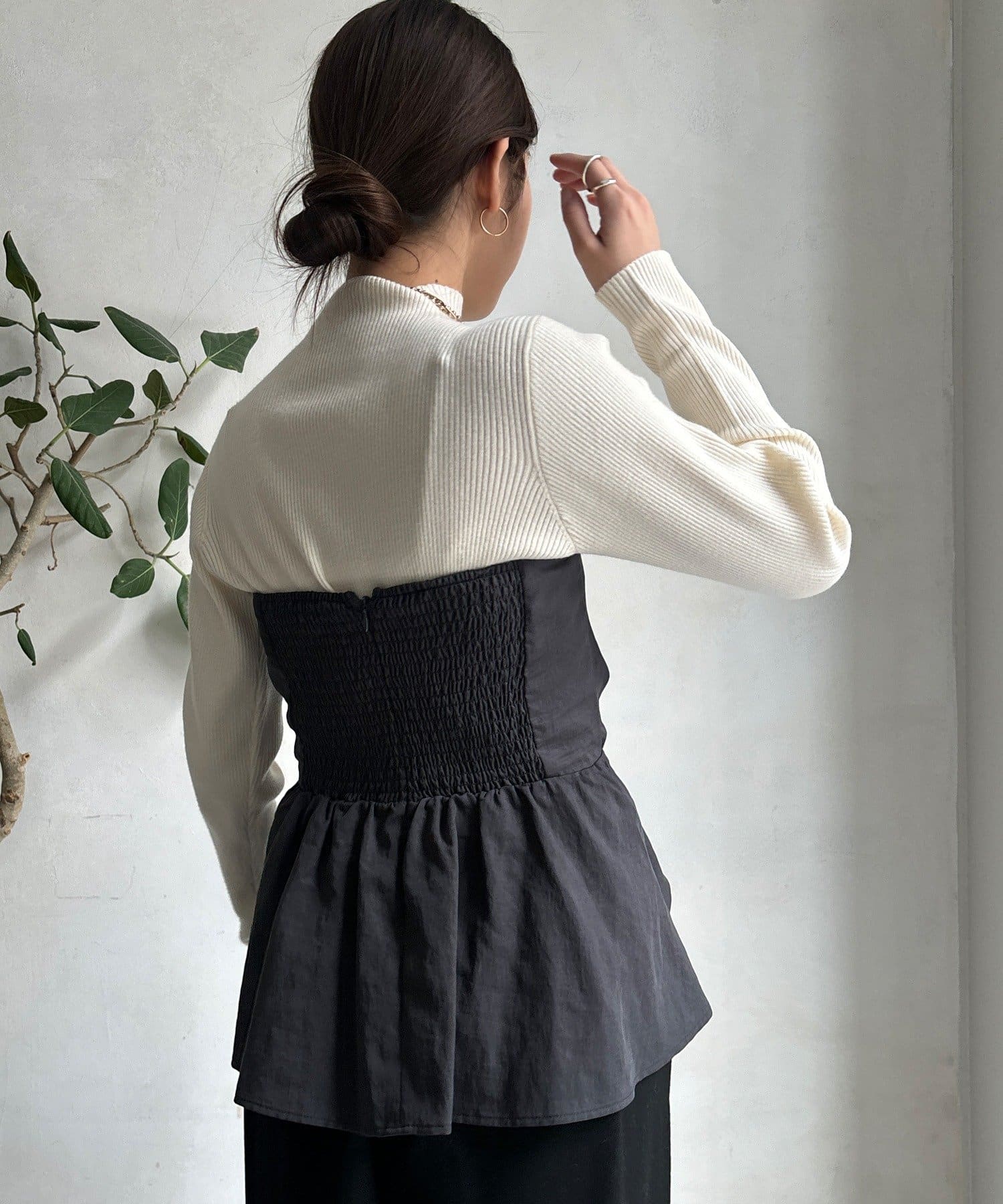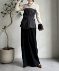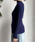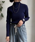 程よくフィットするリブ素材が女性らしいシルエットをつくり、着心地もやわらかで快適で、アウターを羽織っても着膨れしにくいのが嬉しいポイントです。