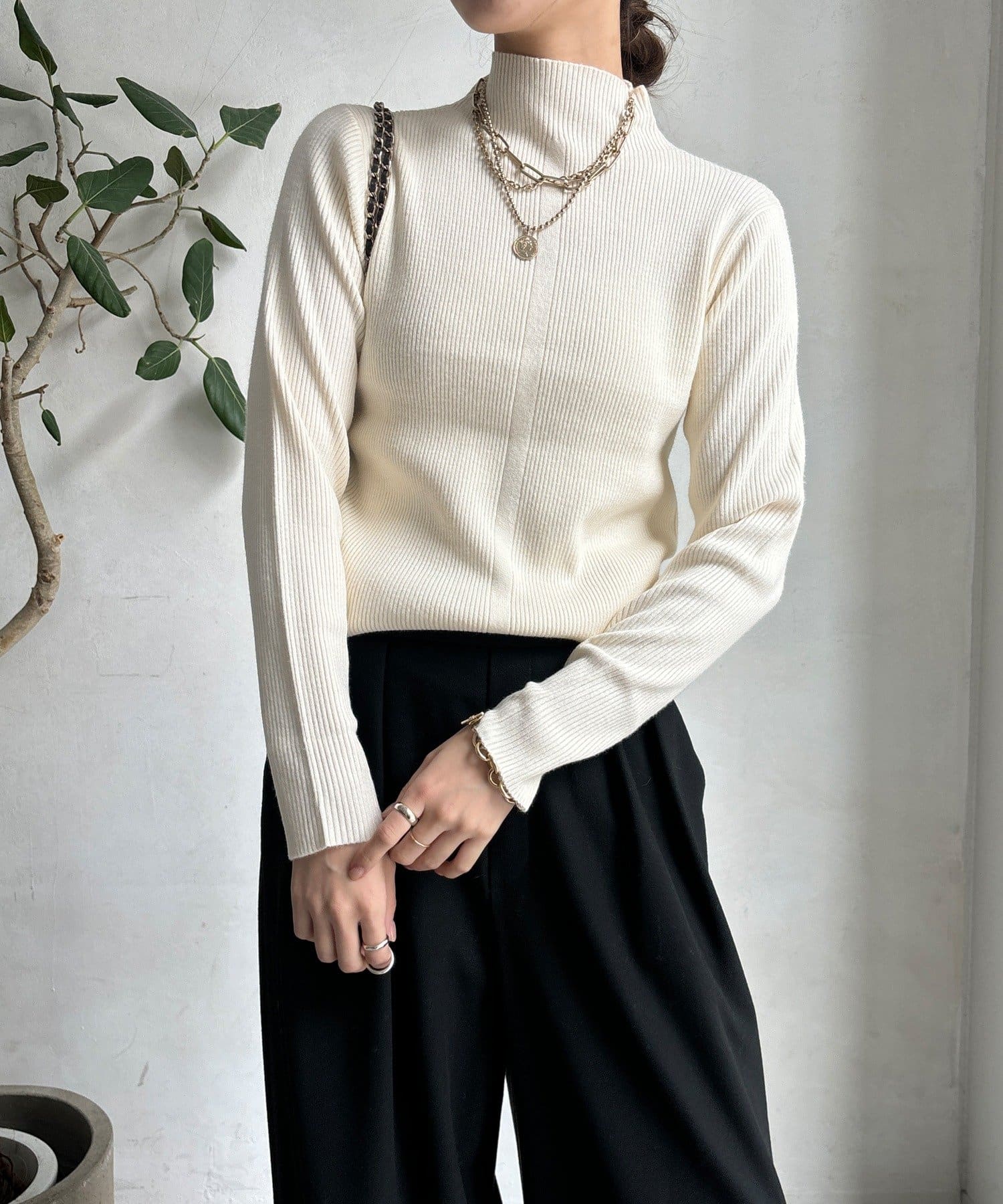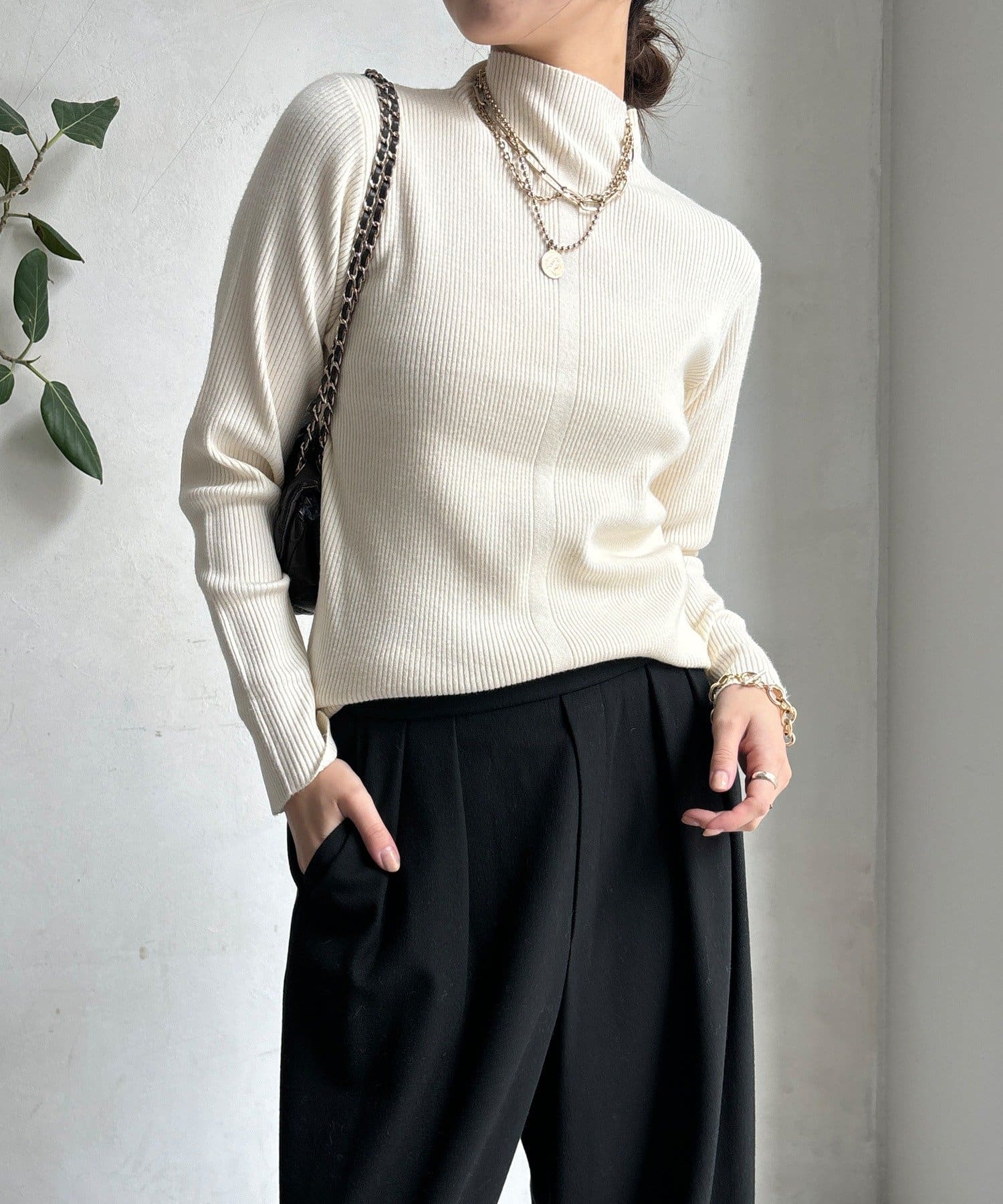 【WEB限定】ボトルネックリブニット