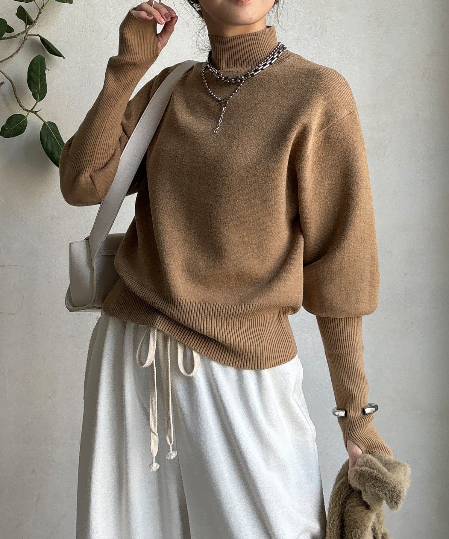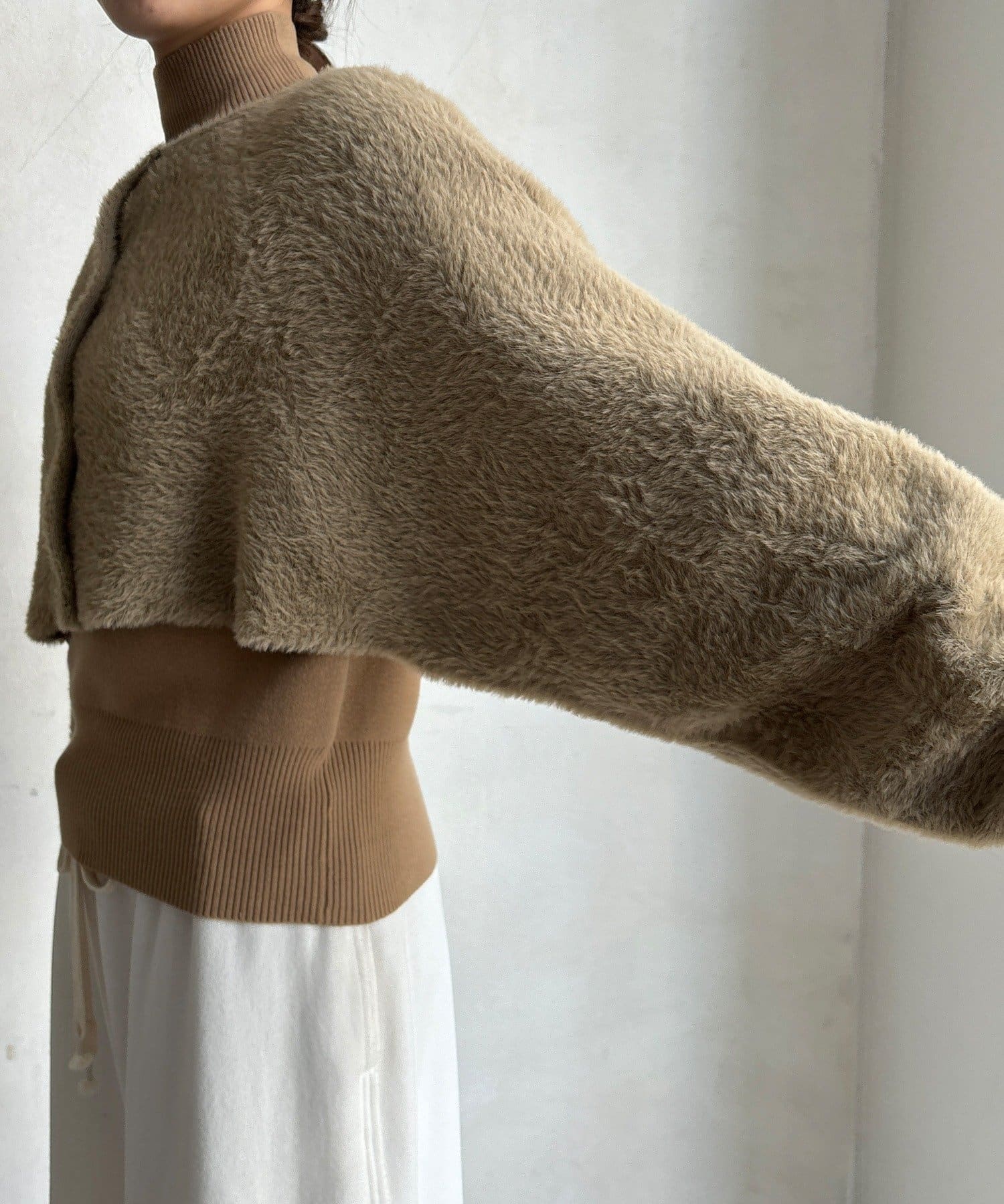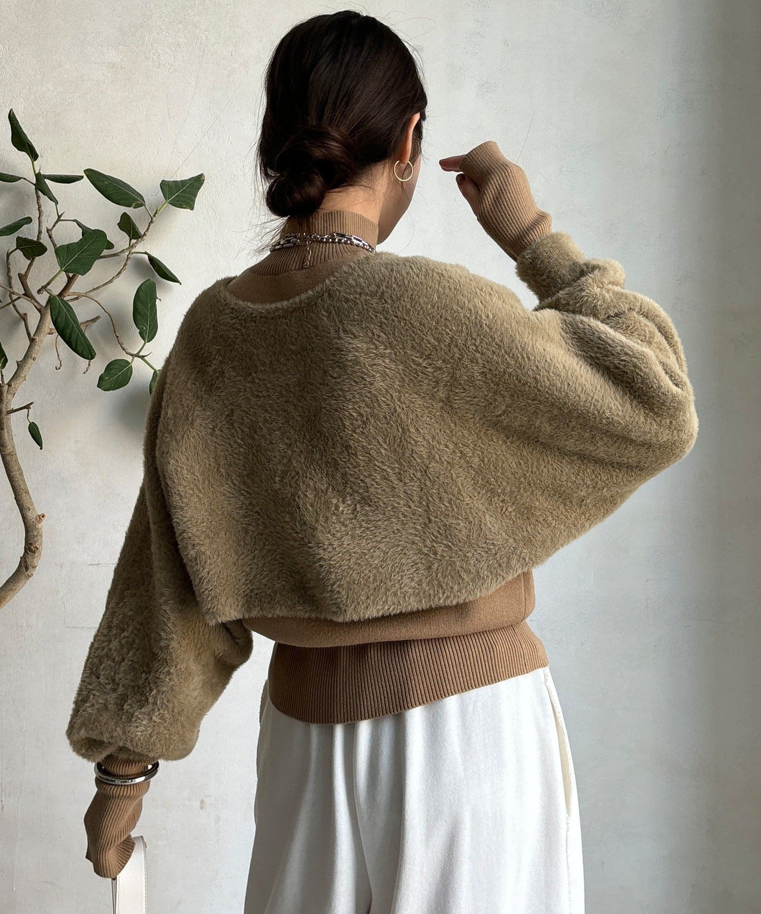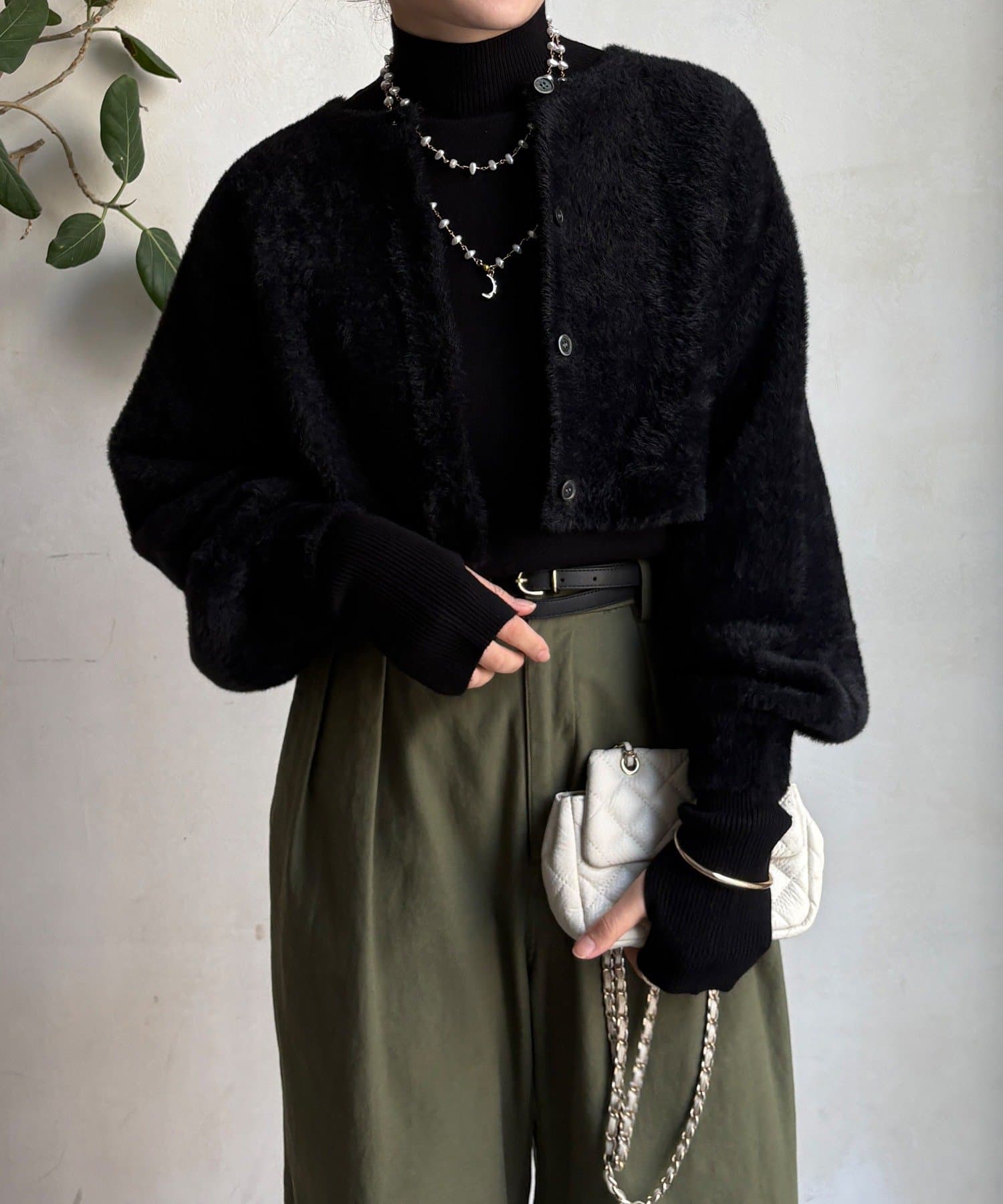 ふわっとした質感がシーズンムードを高め、着るだけで優しい印象を演出します。