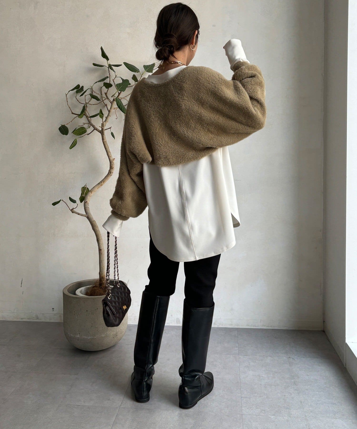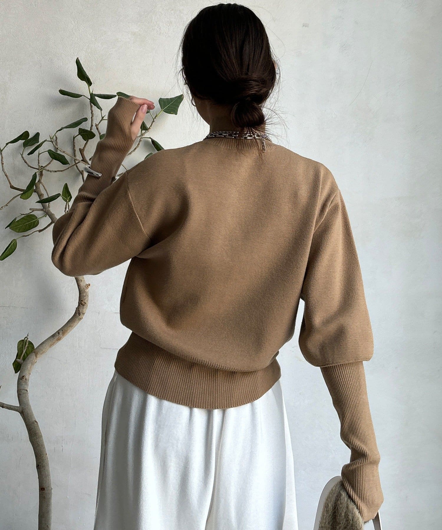 程よいボリューム感がありながらも、すっきりとしたシルエットで女性らしさを引き立てます。