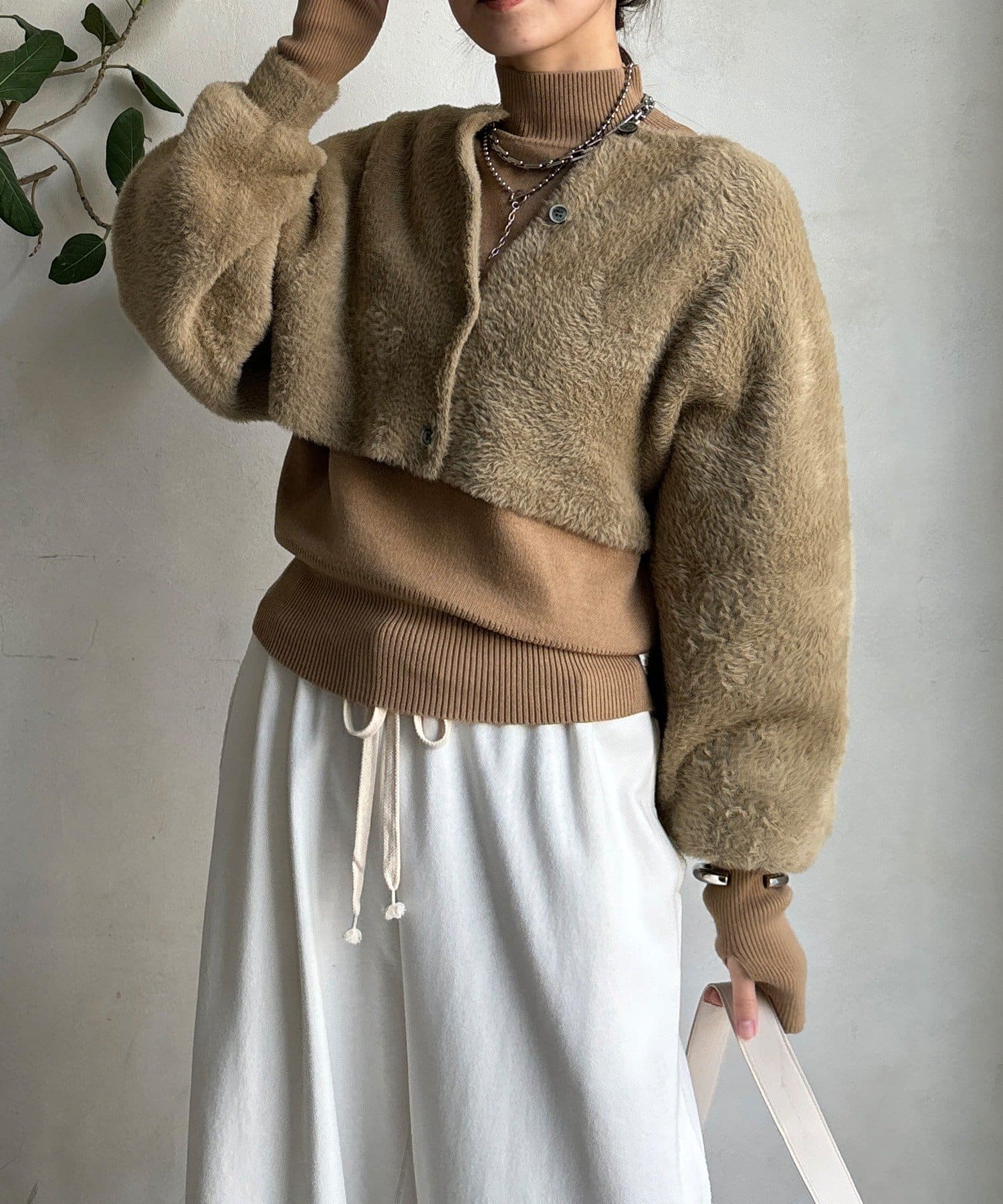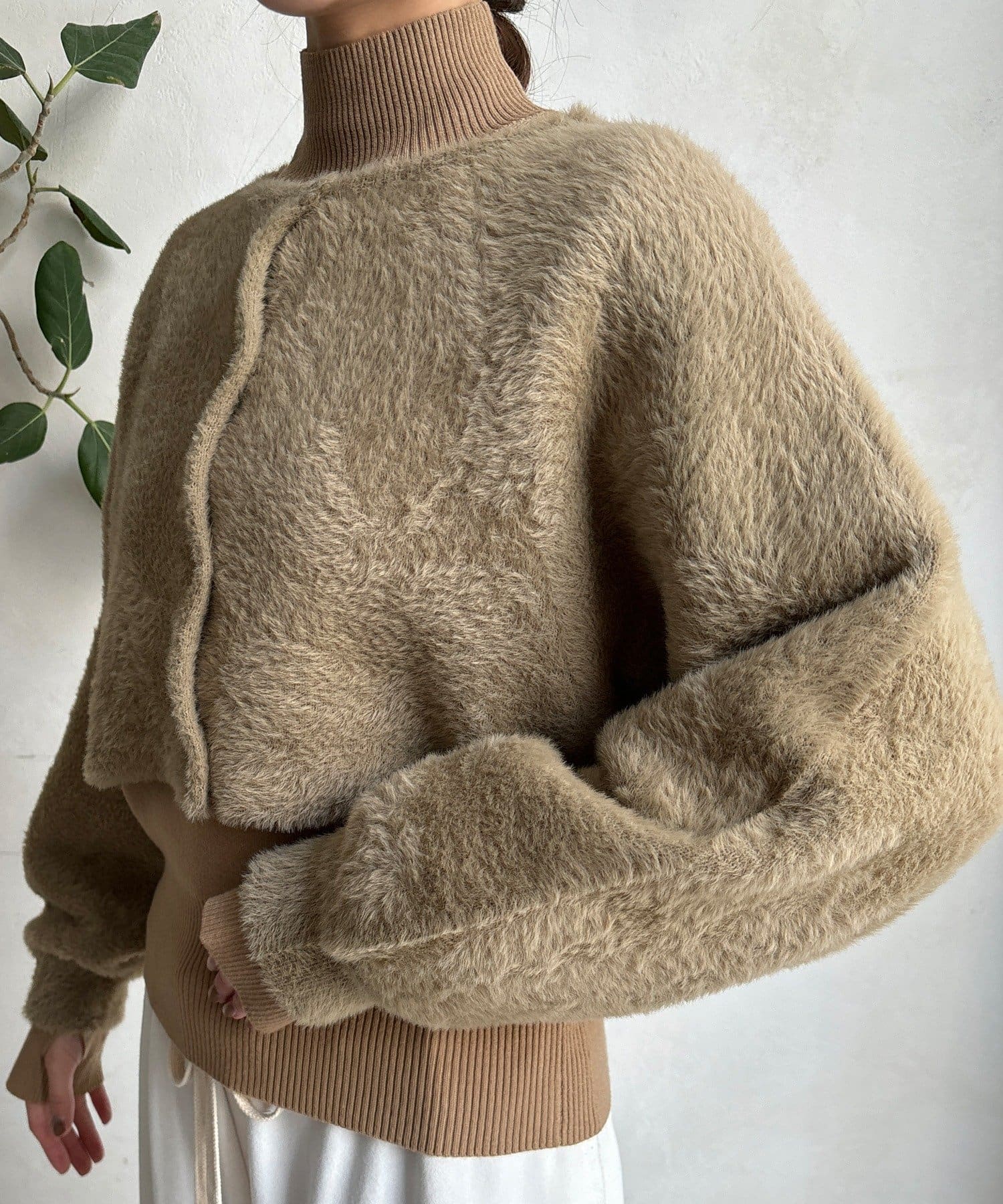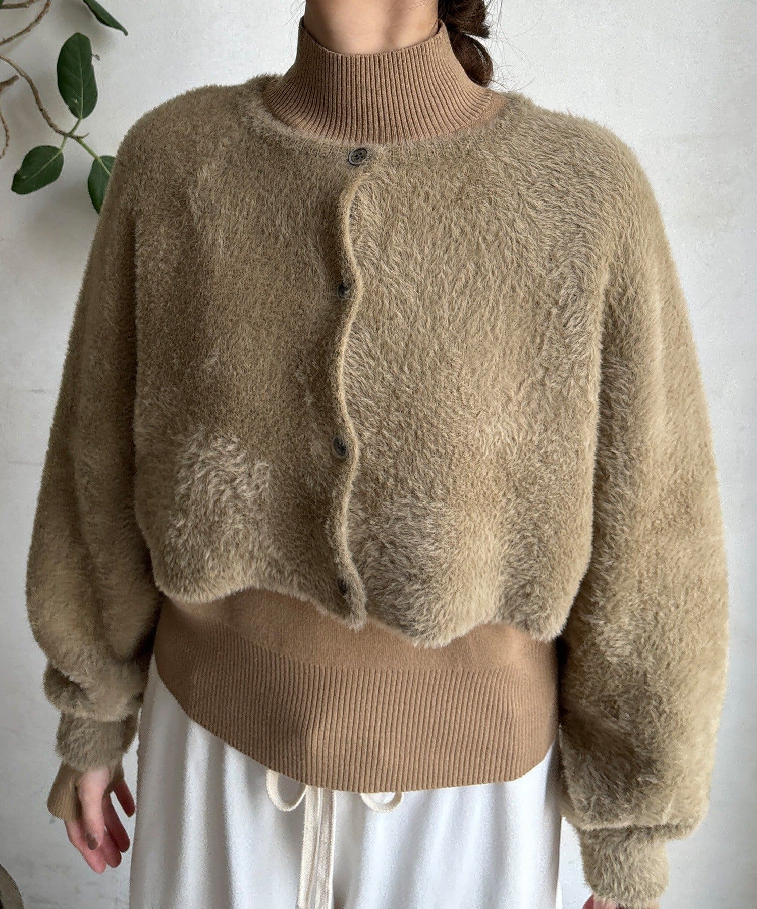 上品フェザーヤーンのカーディガン+ニットの便利なアンサンブル仕様
