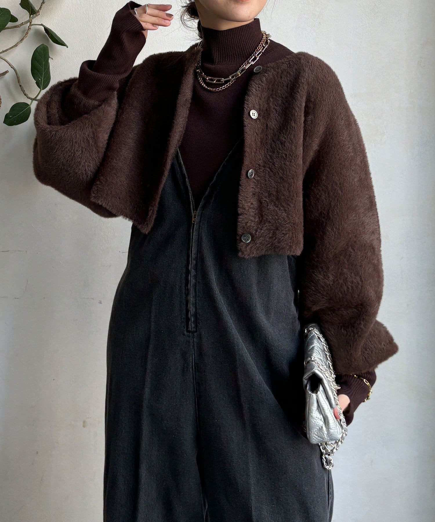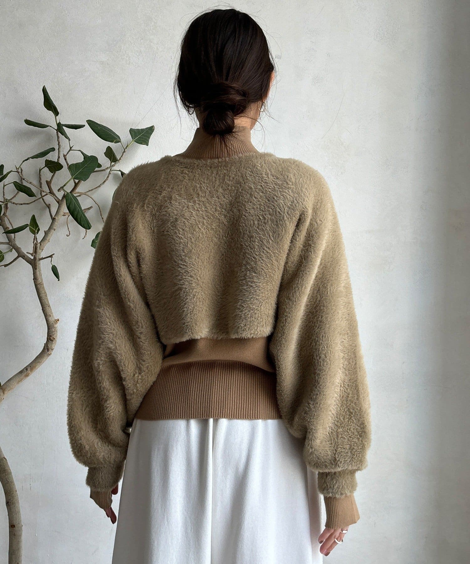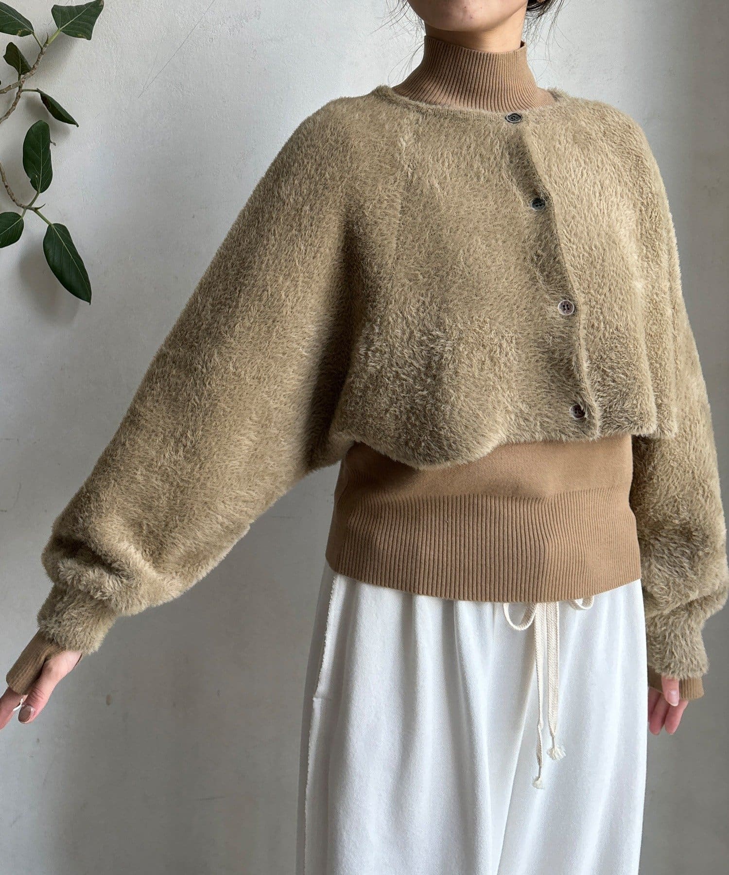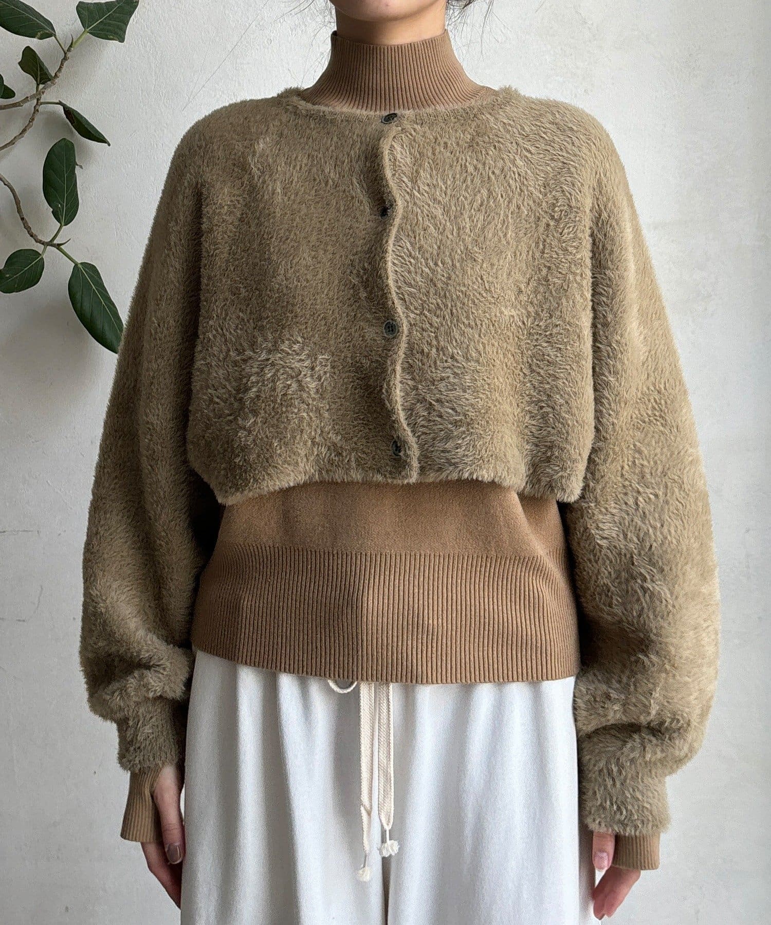 上品フェザーヤーンのカーディガン+ニットの便利なアンサンブル仕様