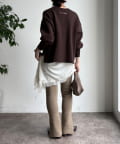 ゆるめのシルエットなので、デニムやスカート、ワイドパンツなどとも相性抜群ですよ。