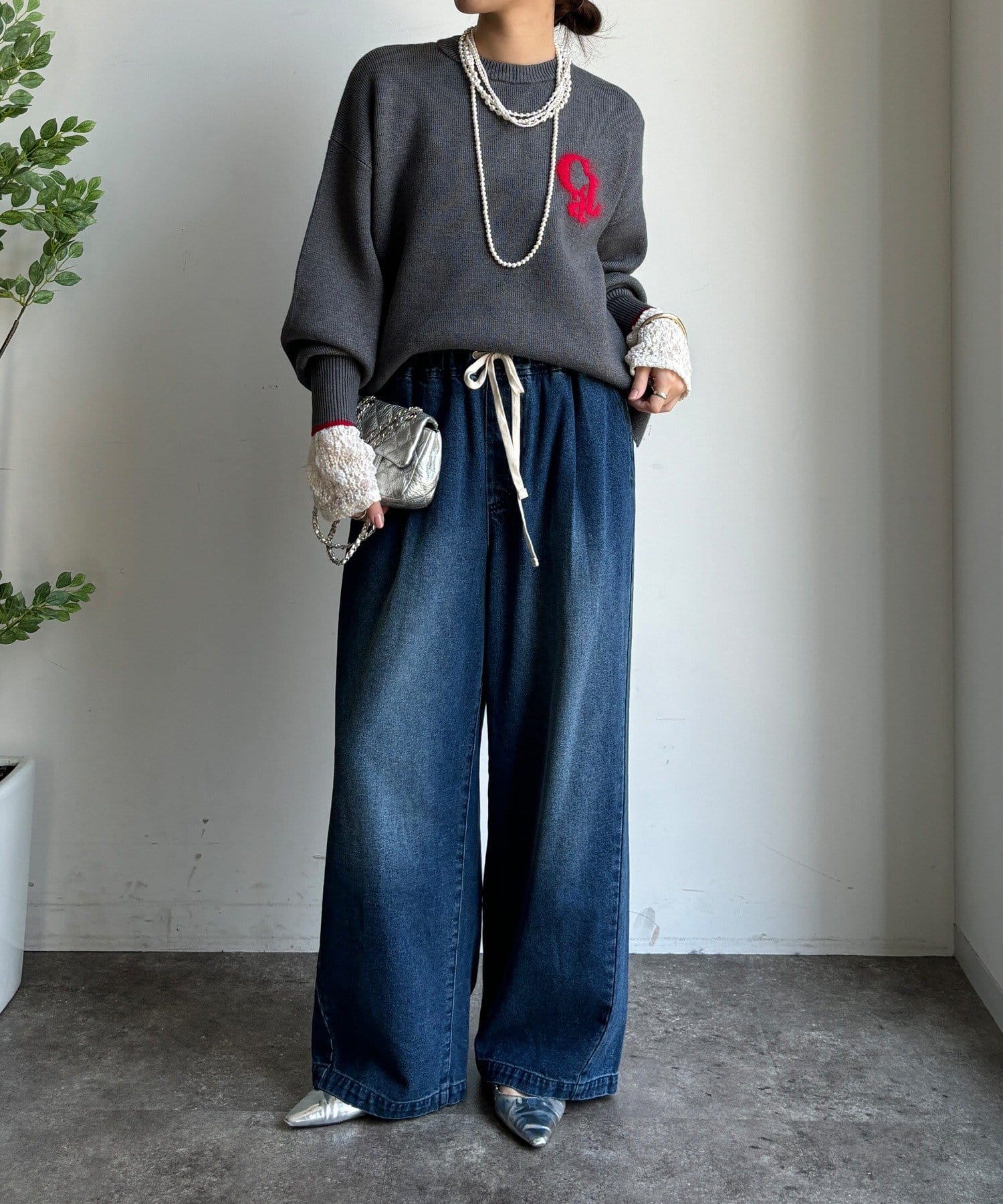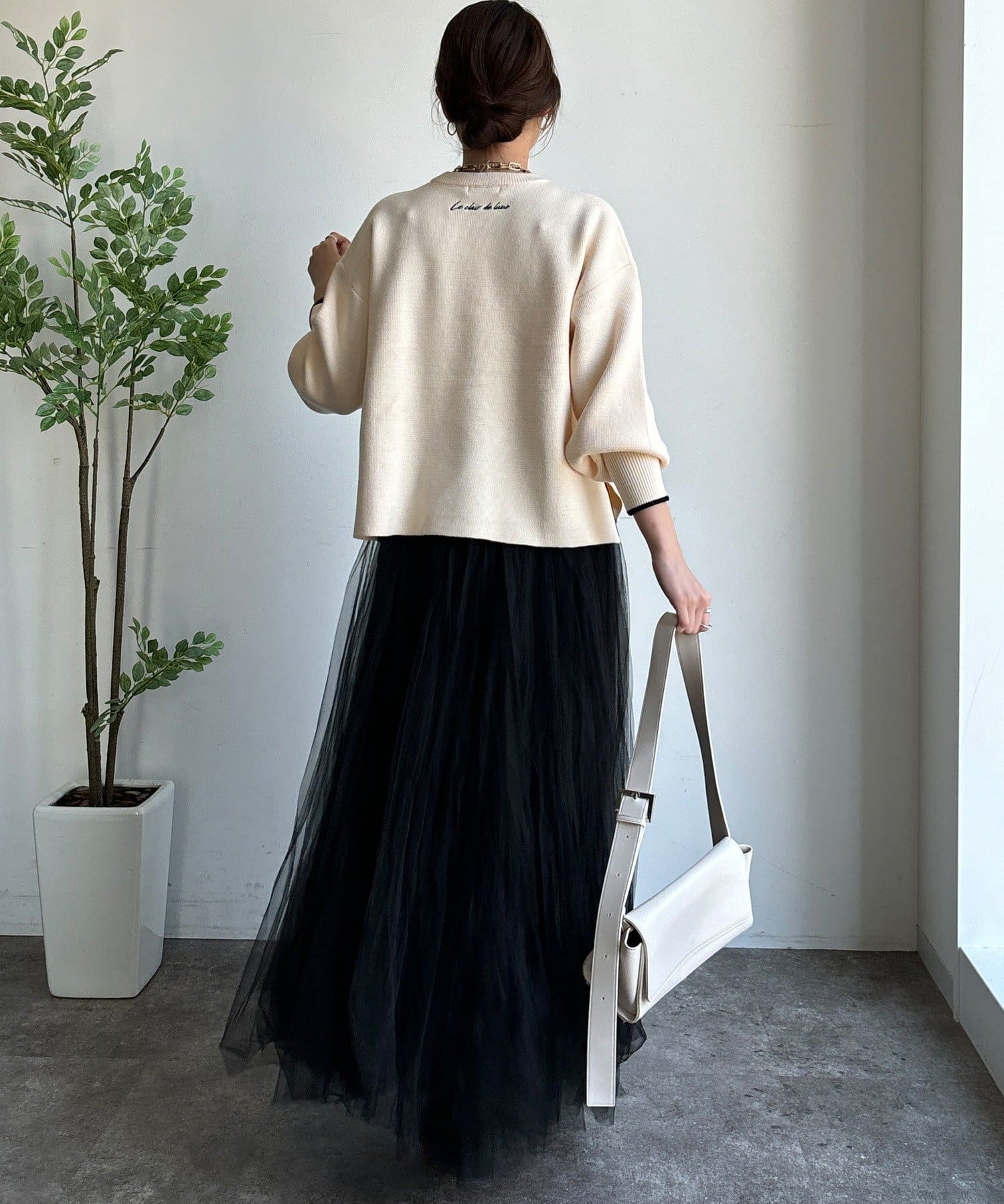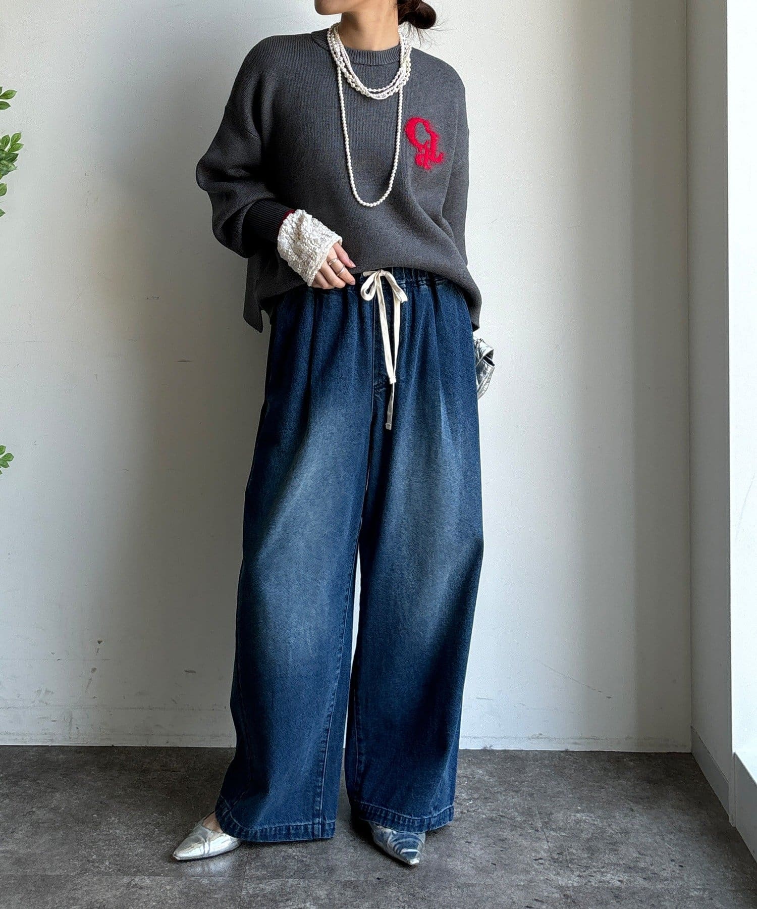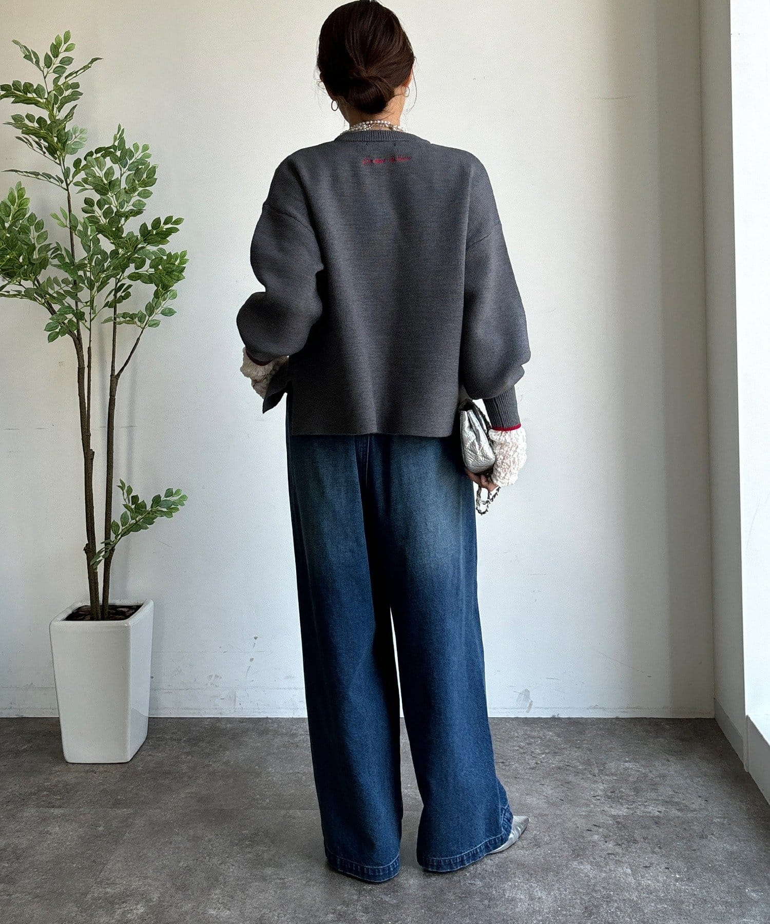 ゆるめのシルエットなので、デニムやスカート、ワイドパンツなどとも相性抜群ですよ。