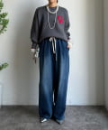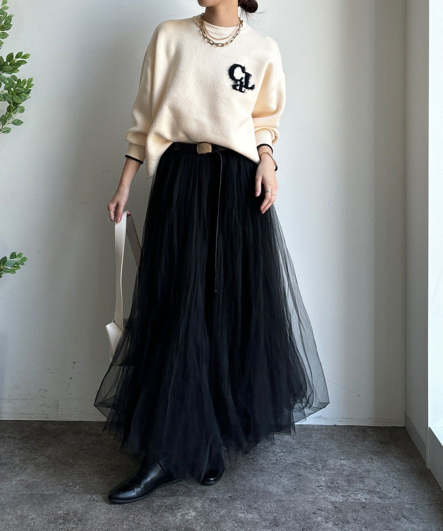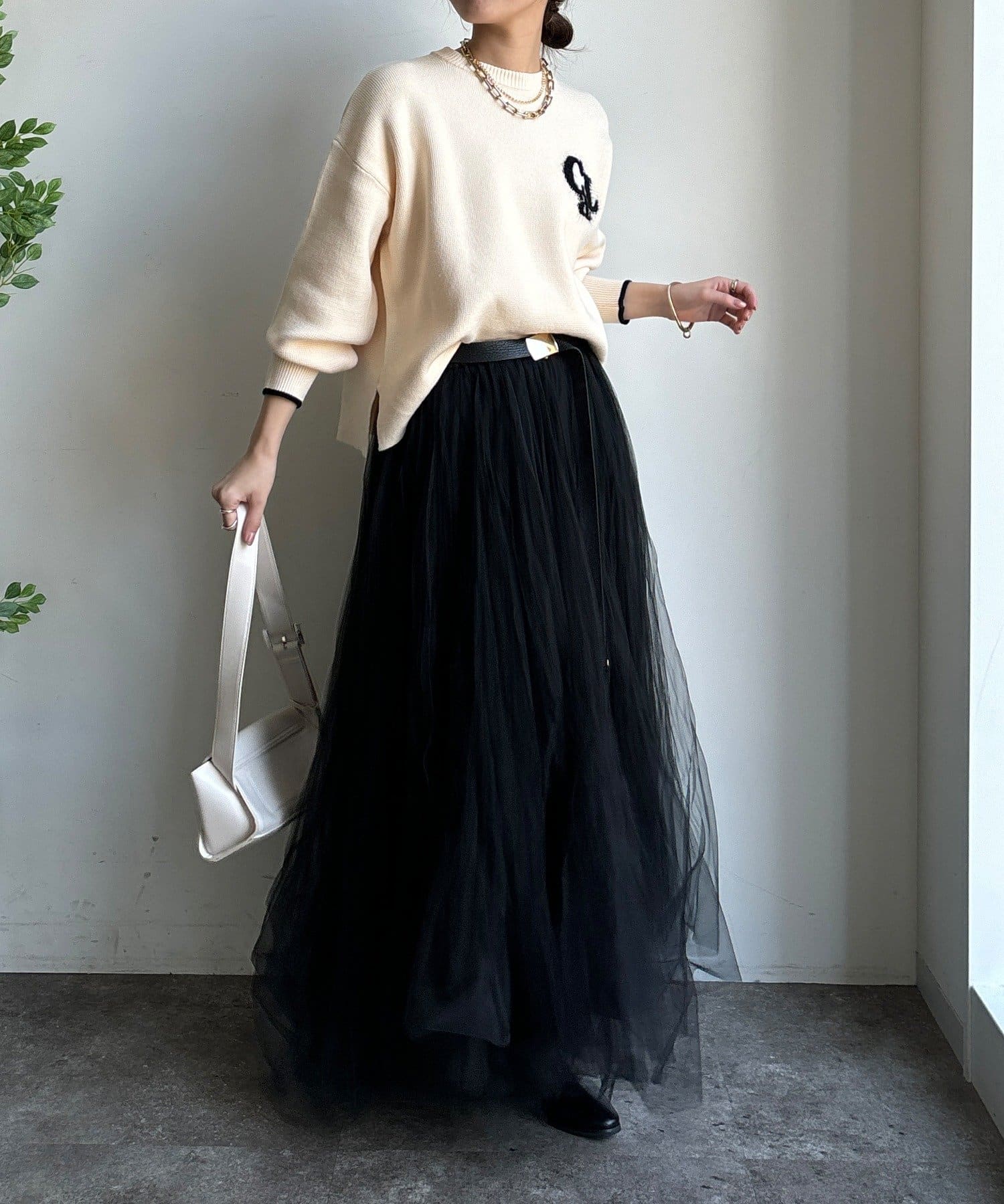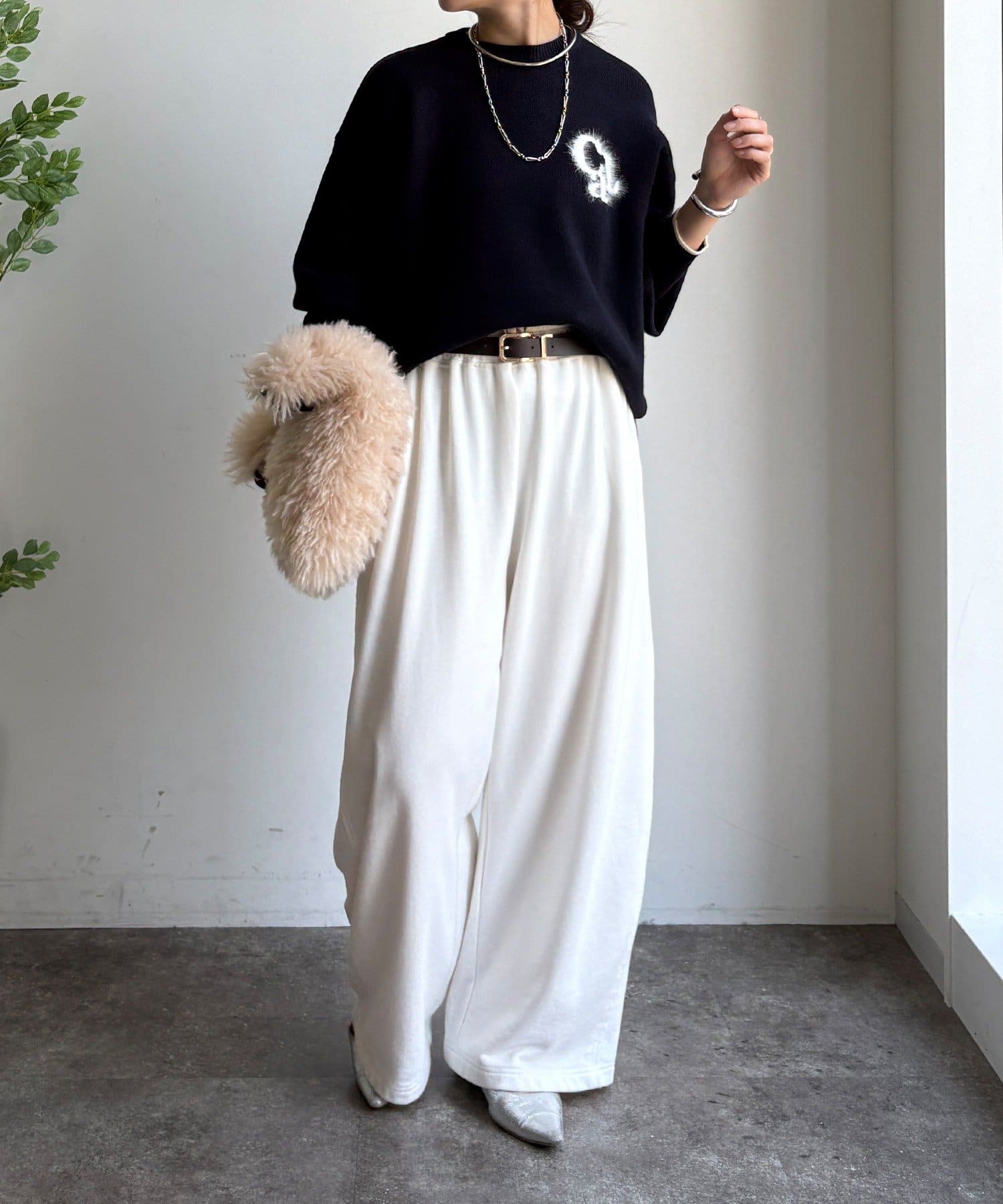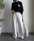ゆるめのシルエットなので、デニムやスカート、ワイドパンツなどとも相性抜群ですよ。