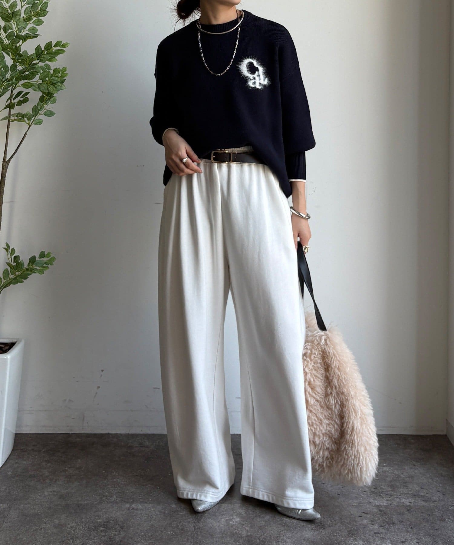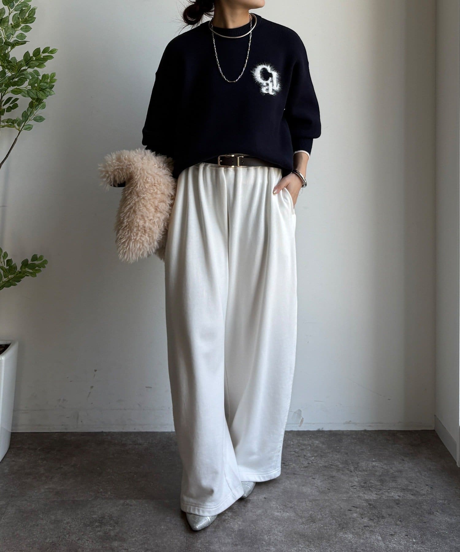 胸元にあしらわれたロゴデザインが、さりげないアクセントになりつつ、素材のふんわり感が女性らしさを引き立てます!