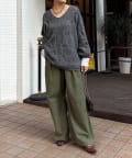 ゆるっと着られるルーズなサイジングですが、首元はVネックのデザインにすることですっきり見せをサポート◎