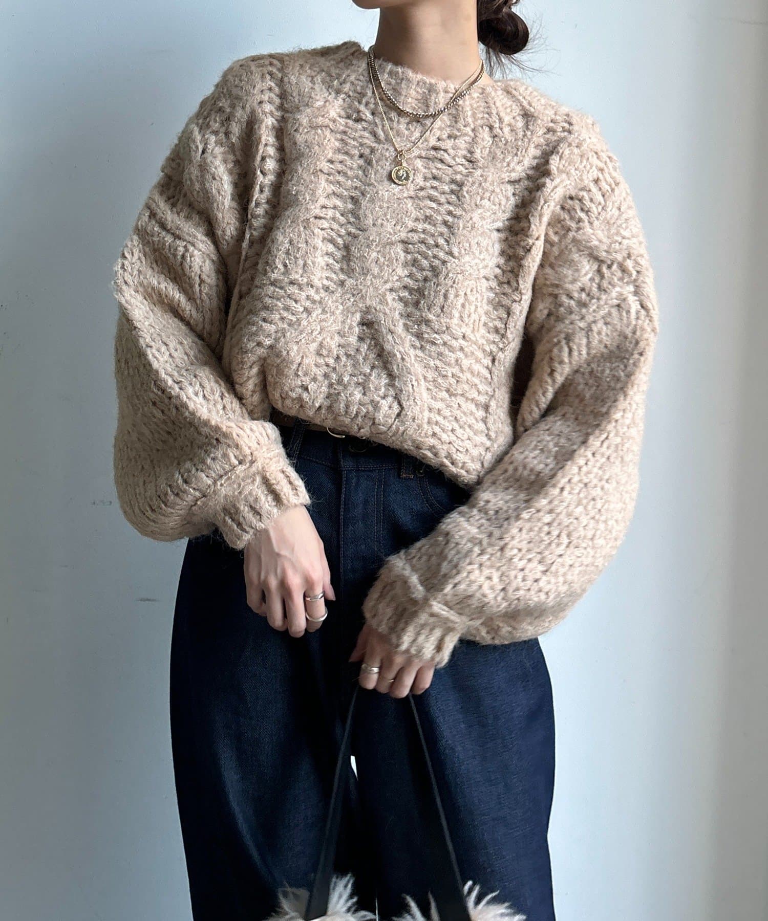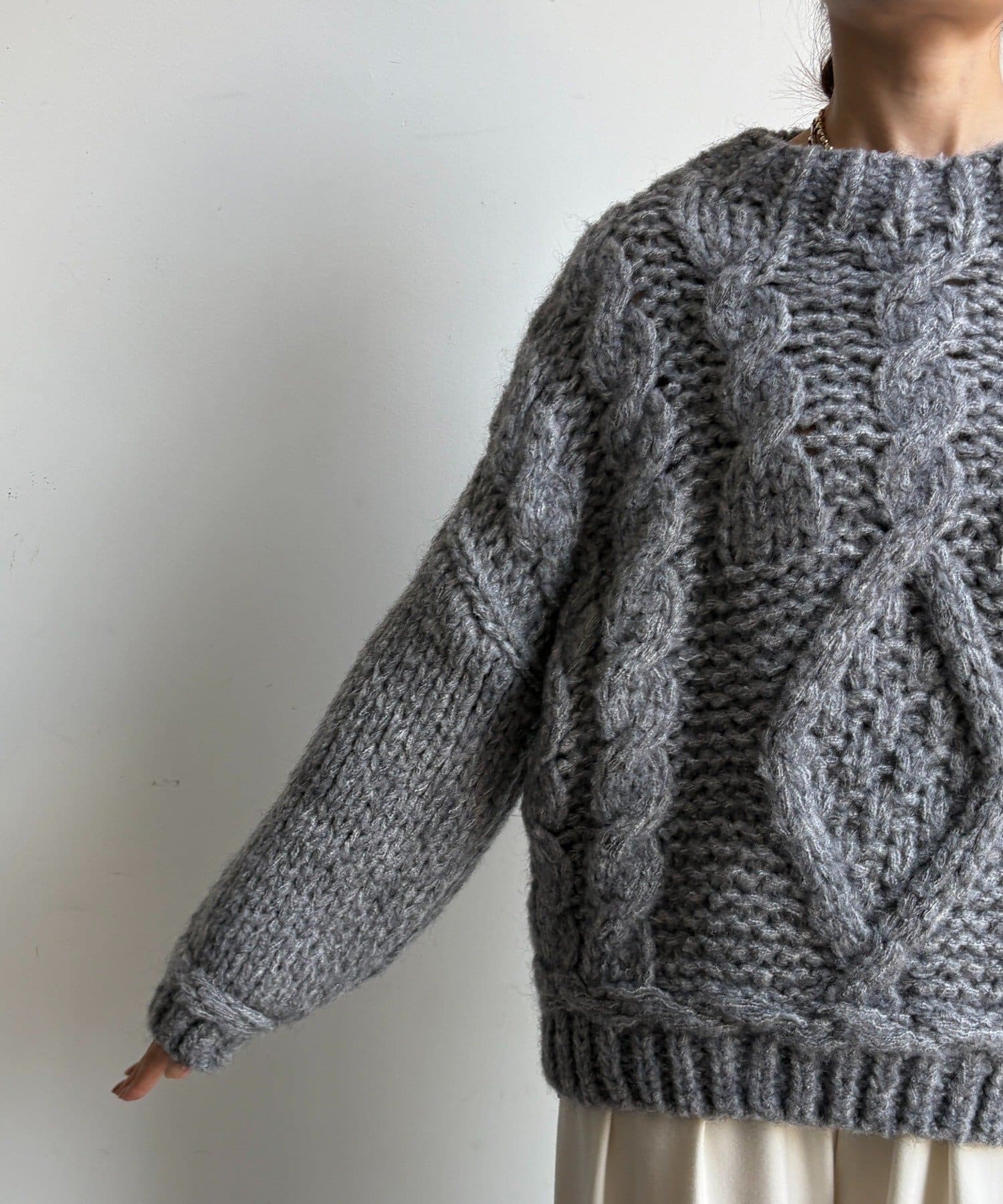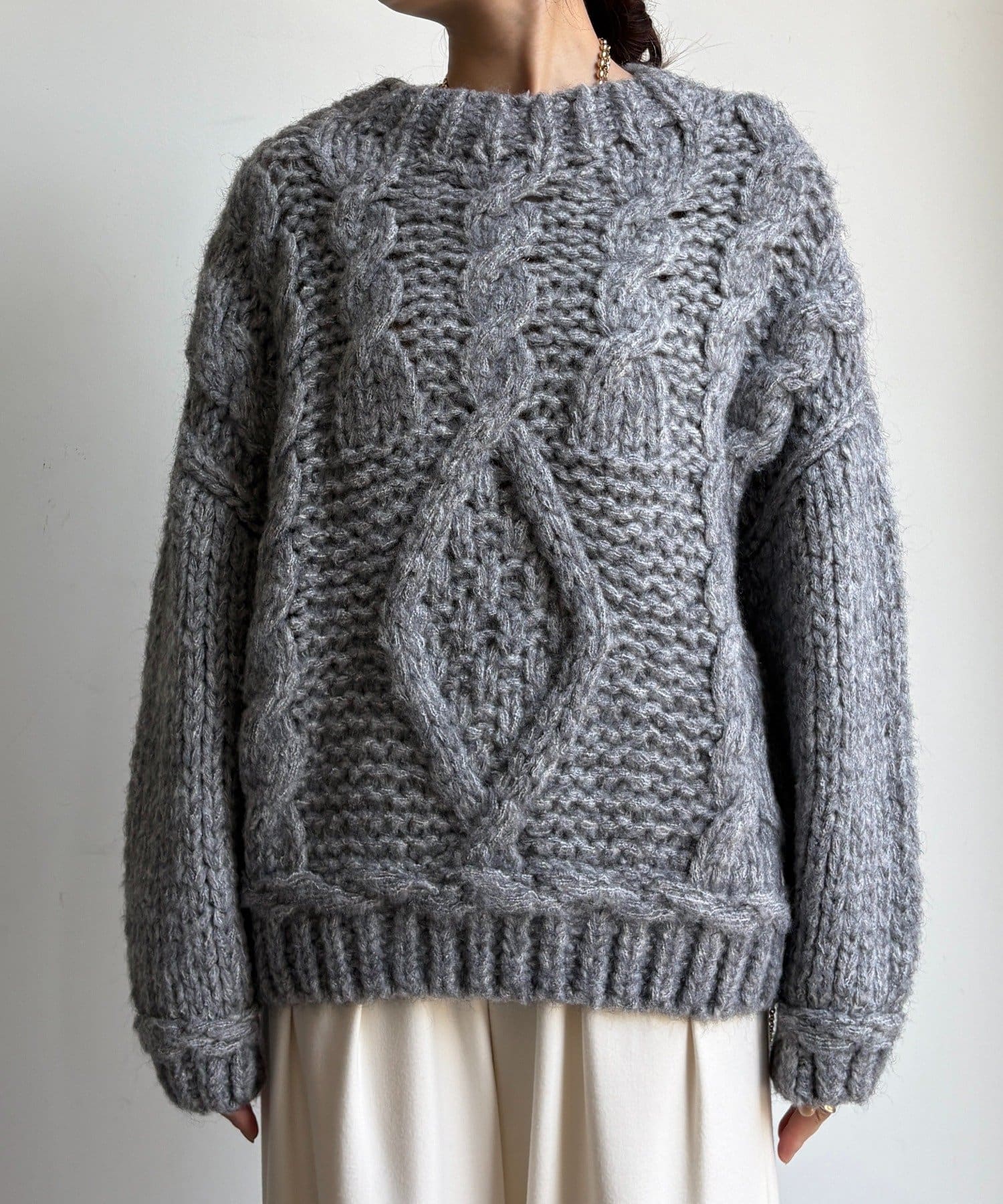 ざっくりとした編み目が魅力のローゲージケーブルニットです。