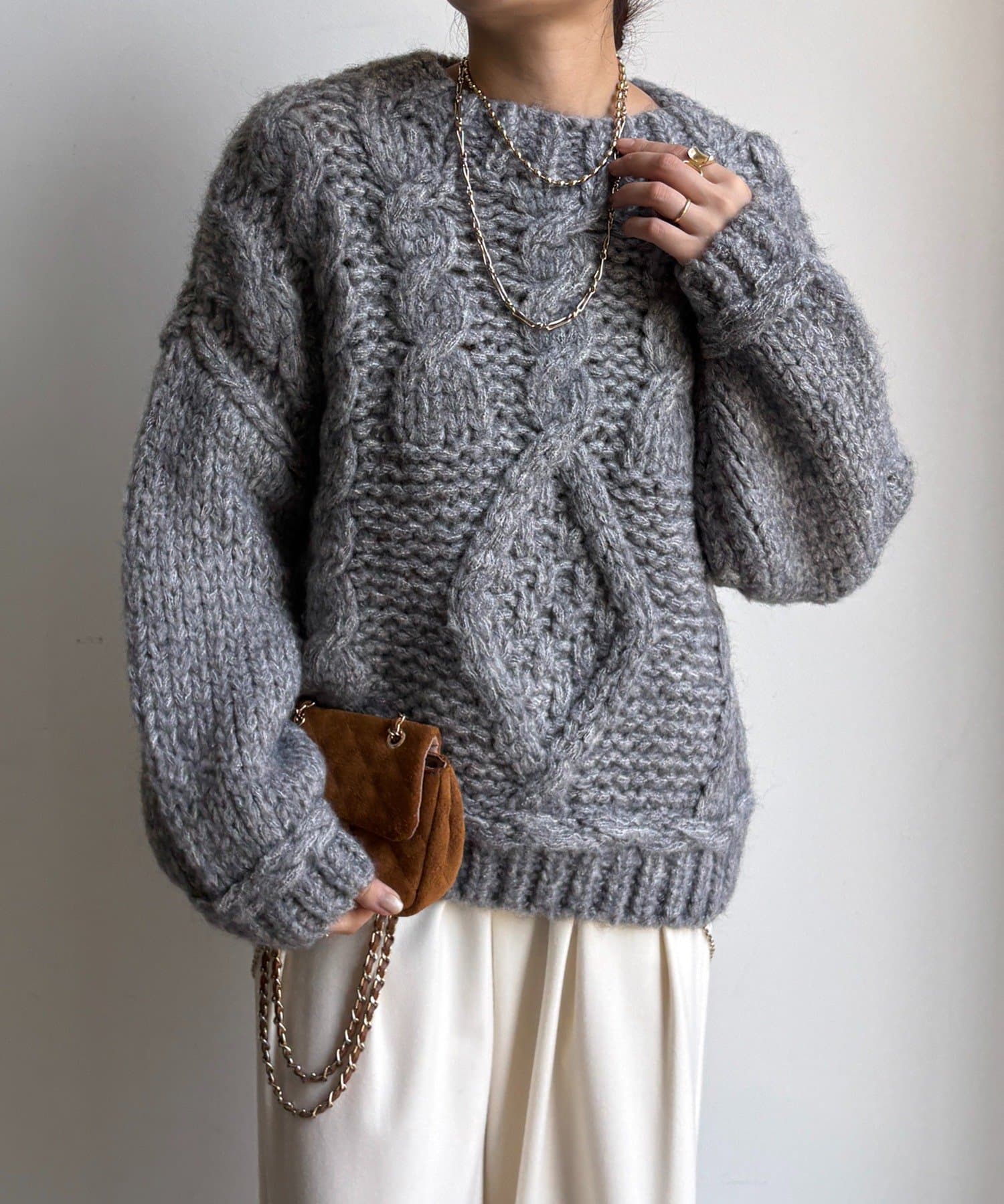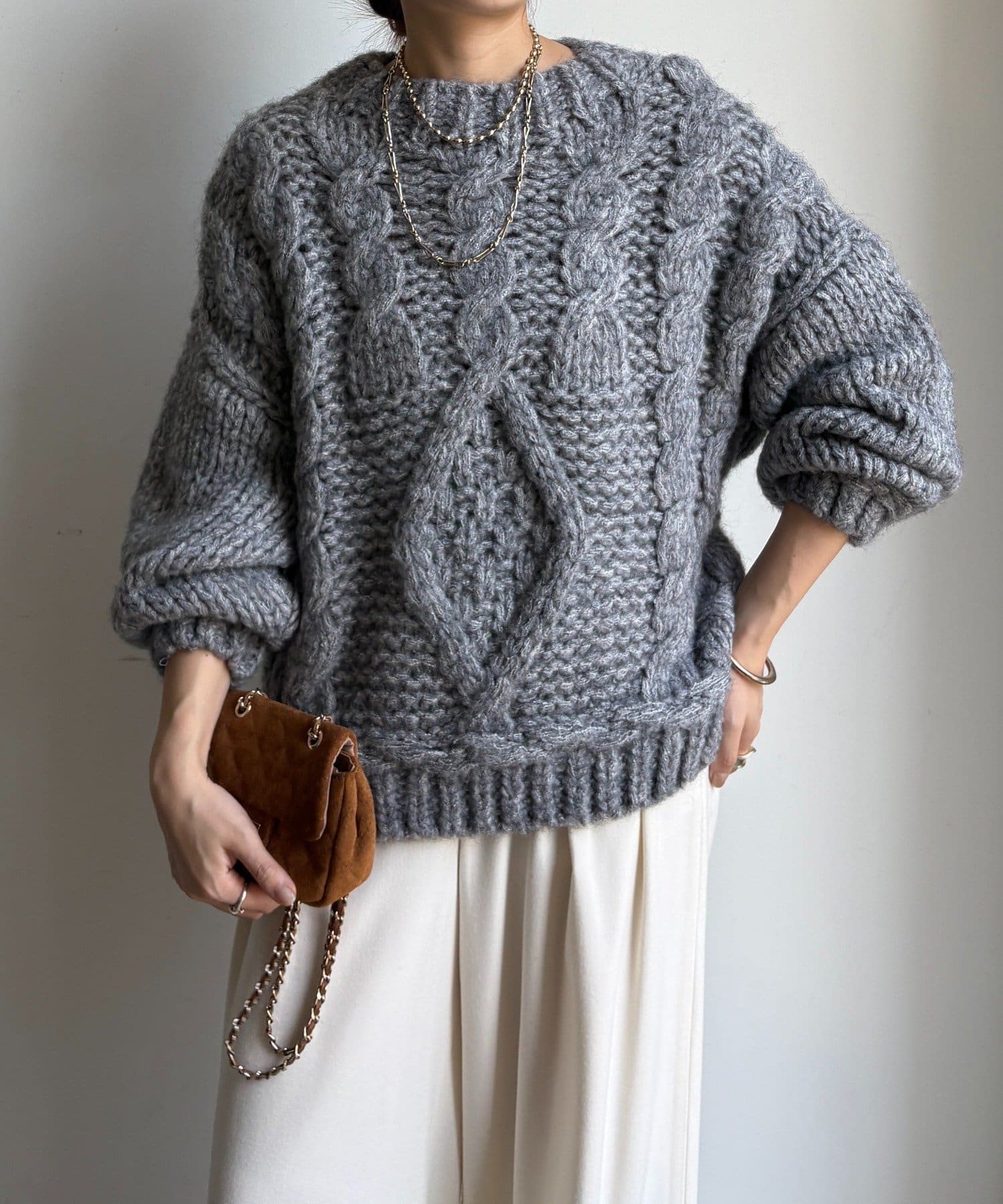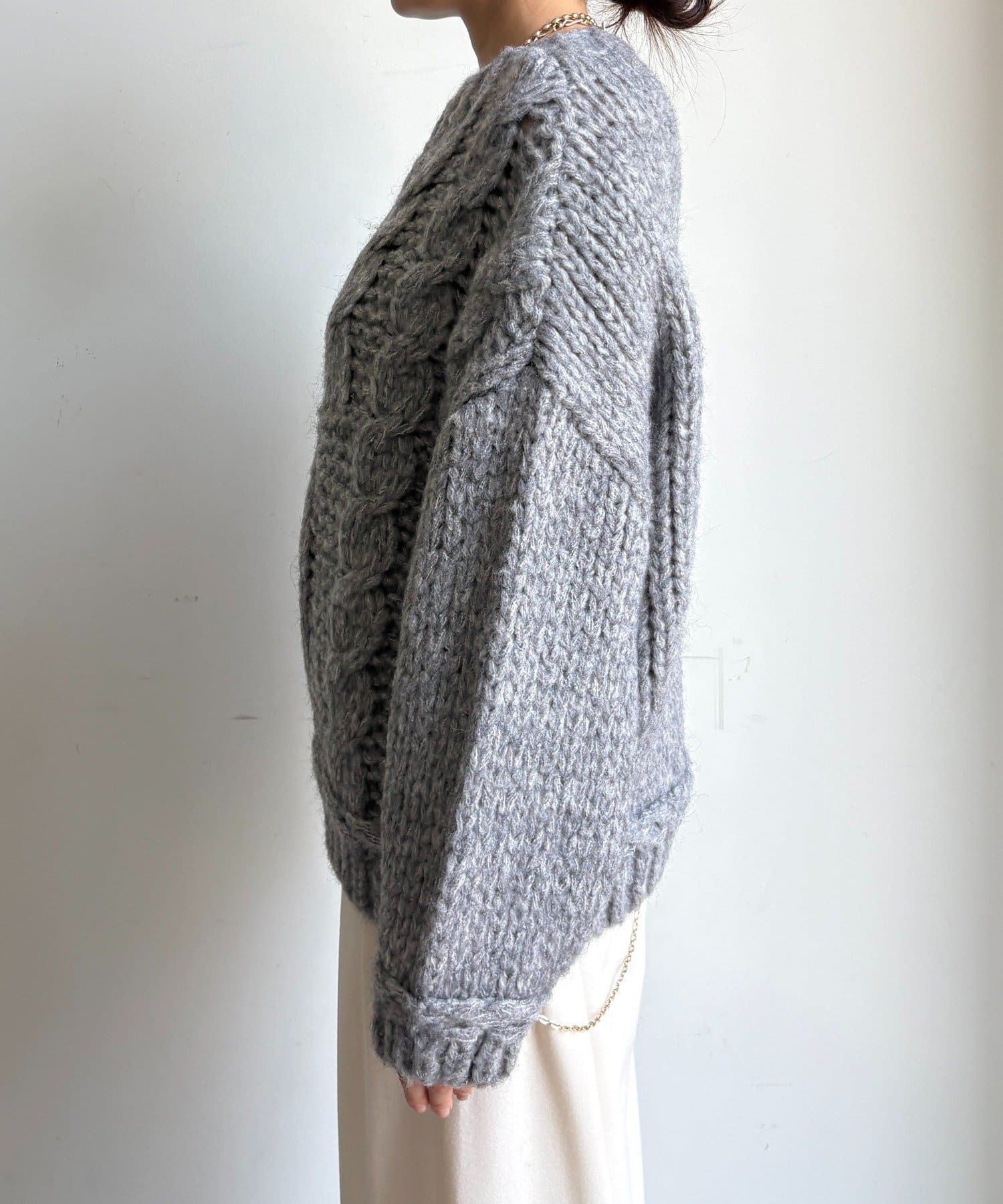 ざっくりとした編み目が魅力のローゲージケーブルニットです。