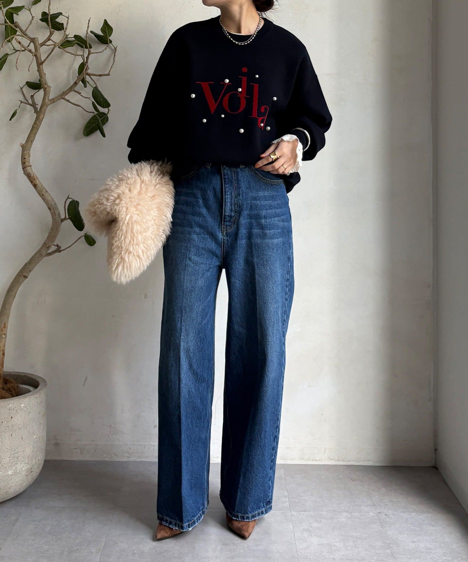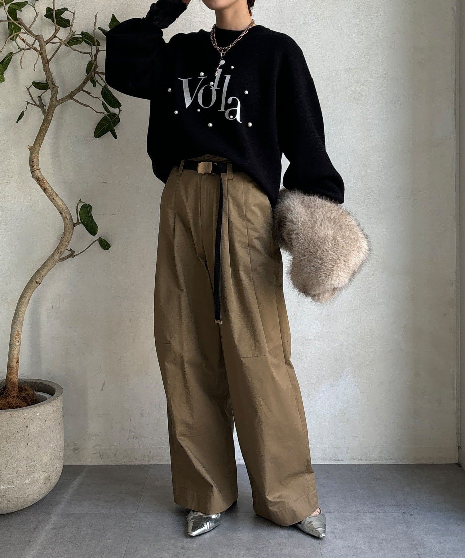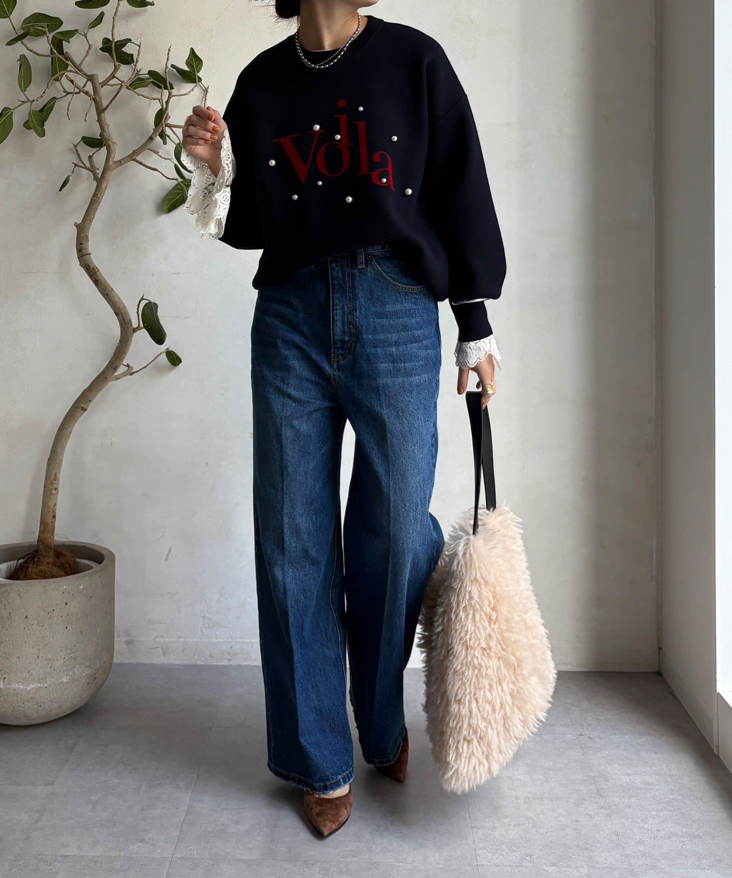 上品なツヤのパールが立体的で、シンプルなシルエットに華やかさをプラスします。