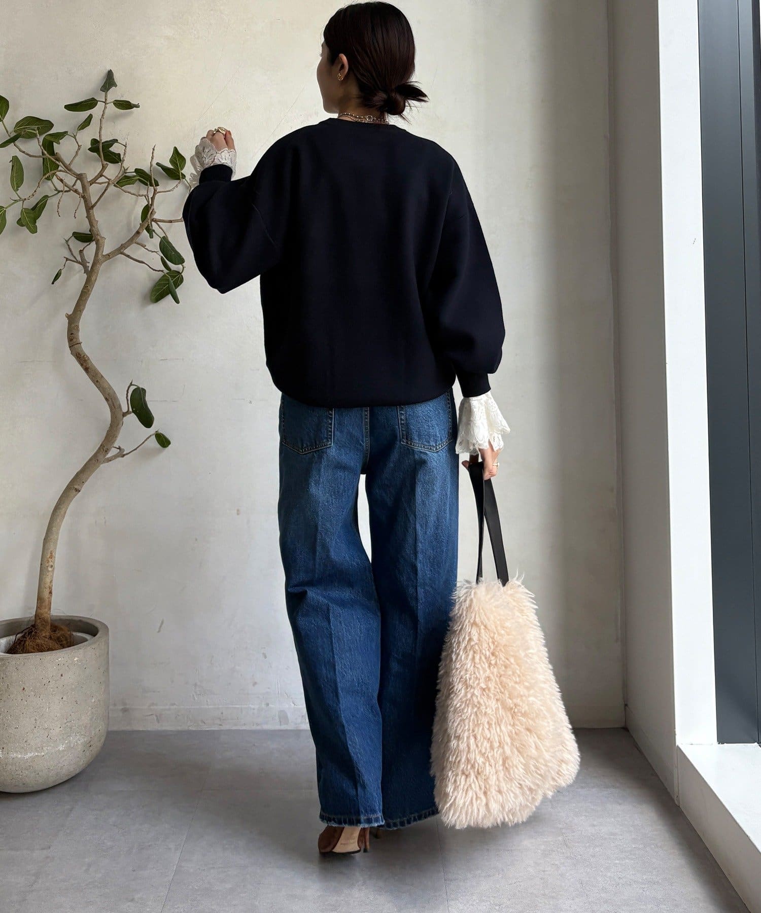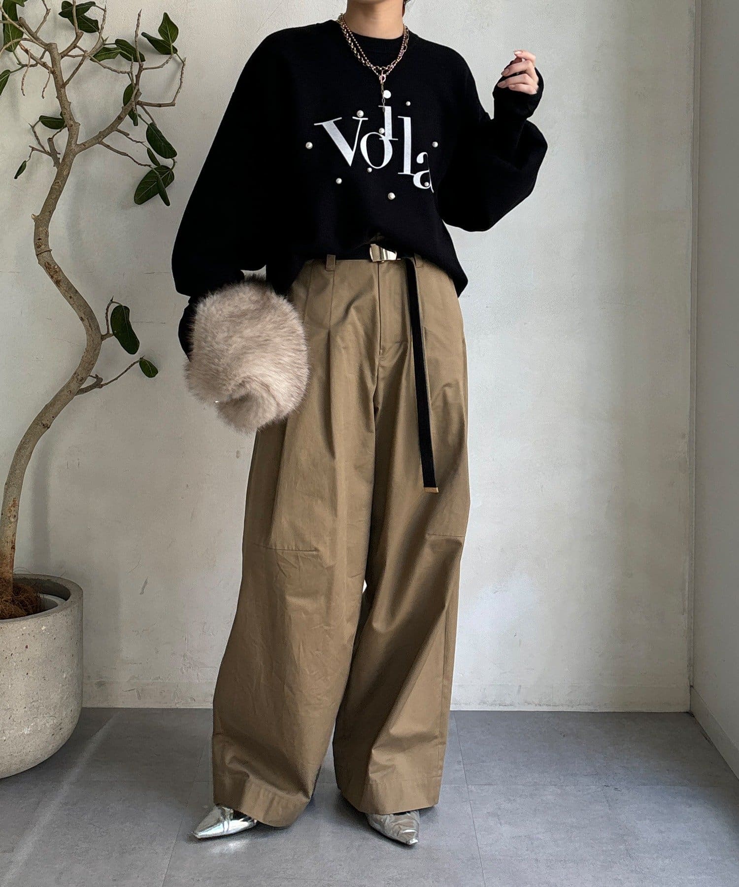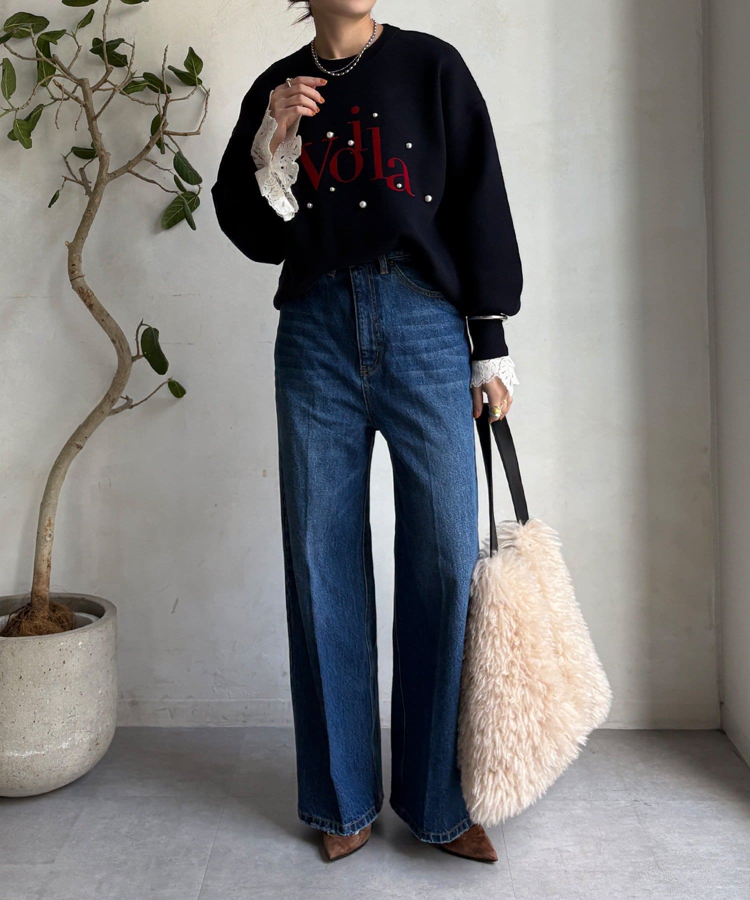 上品なツヤのパールが立体的で、シンプルなシルエットに華やかさをプラスします。