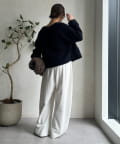 ノーカラーの洗練されたデザイン。首元をすっきりと見せ、アクセサリーとの相性も抜群です。