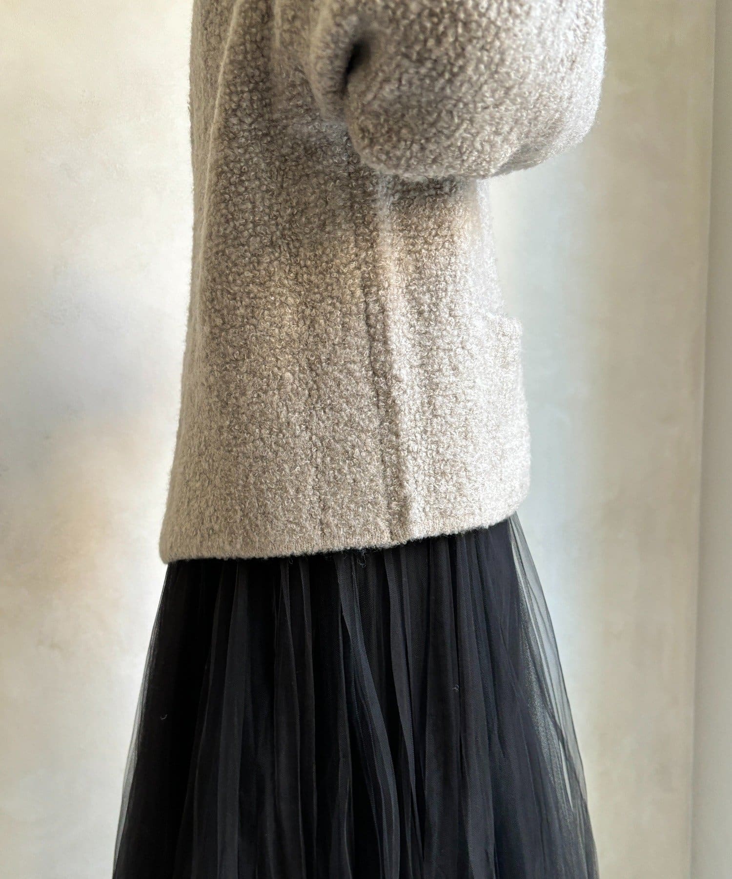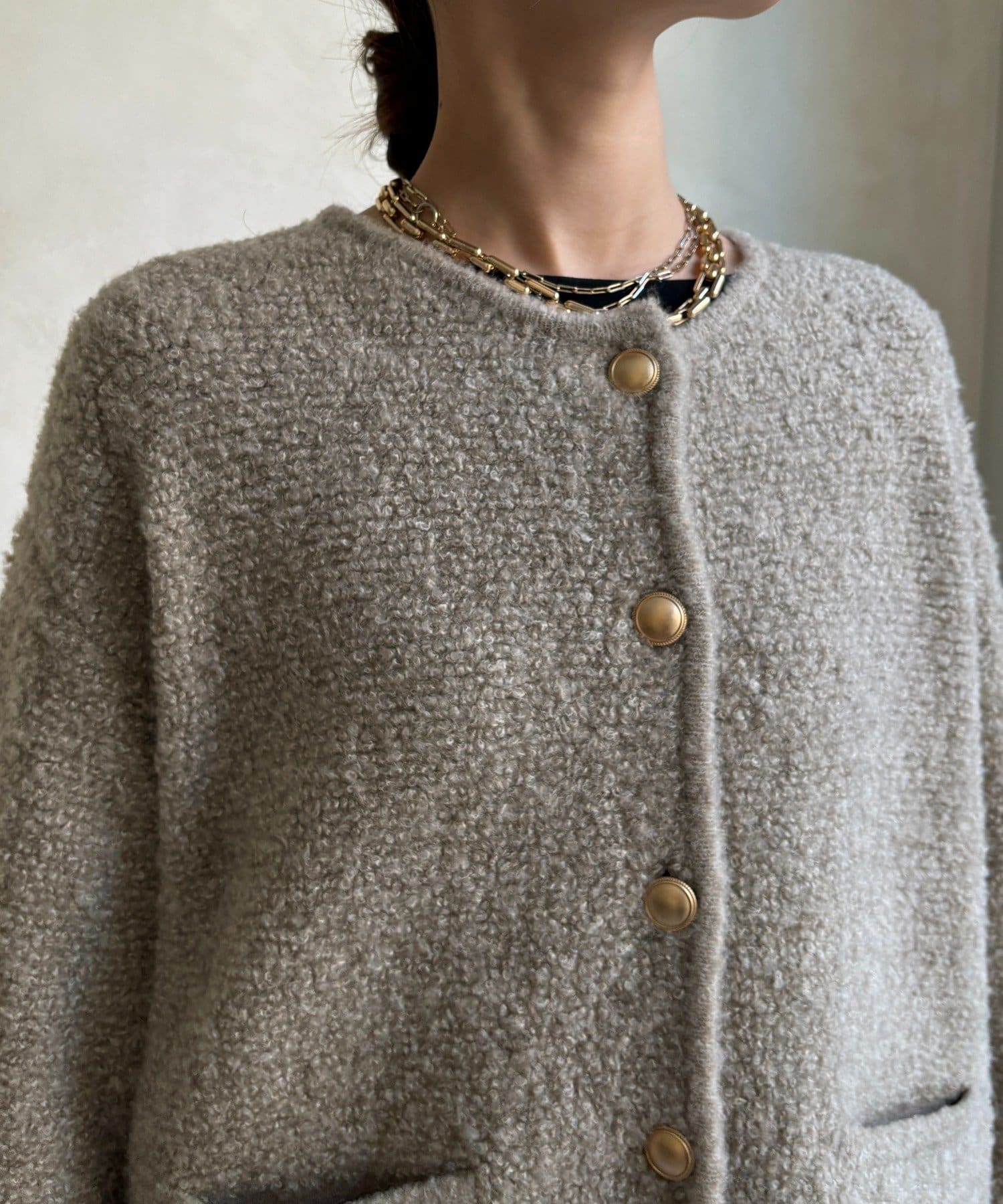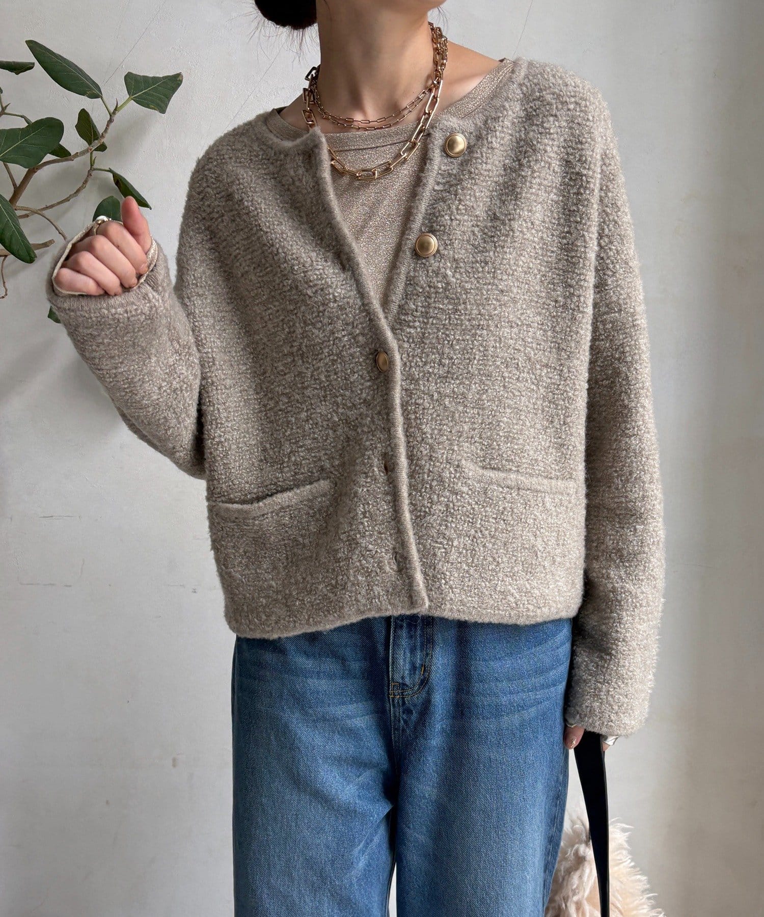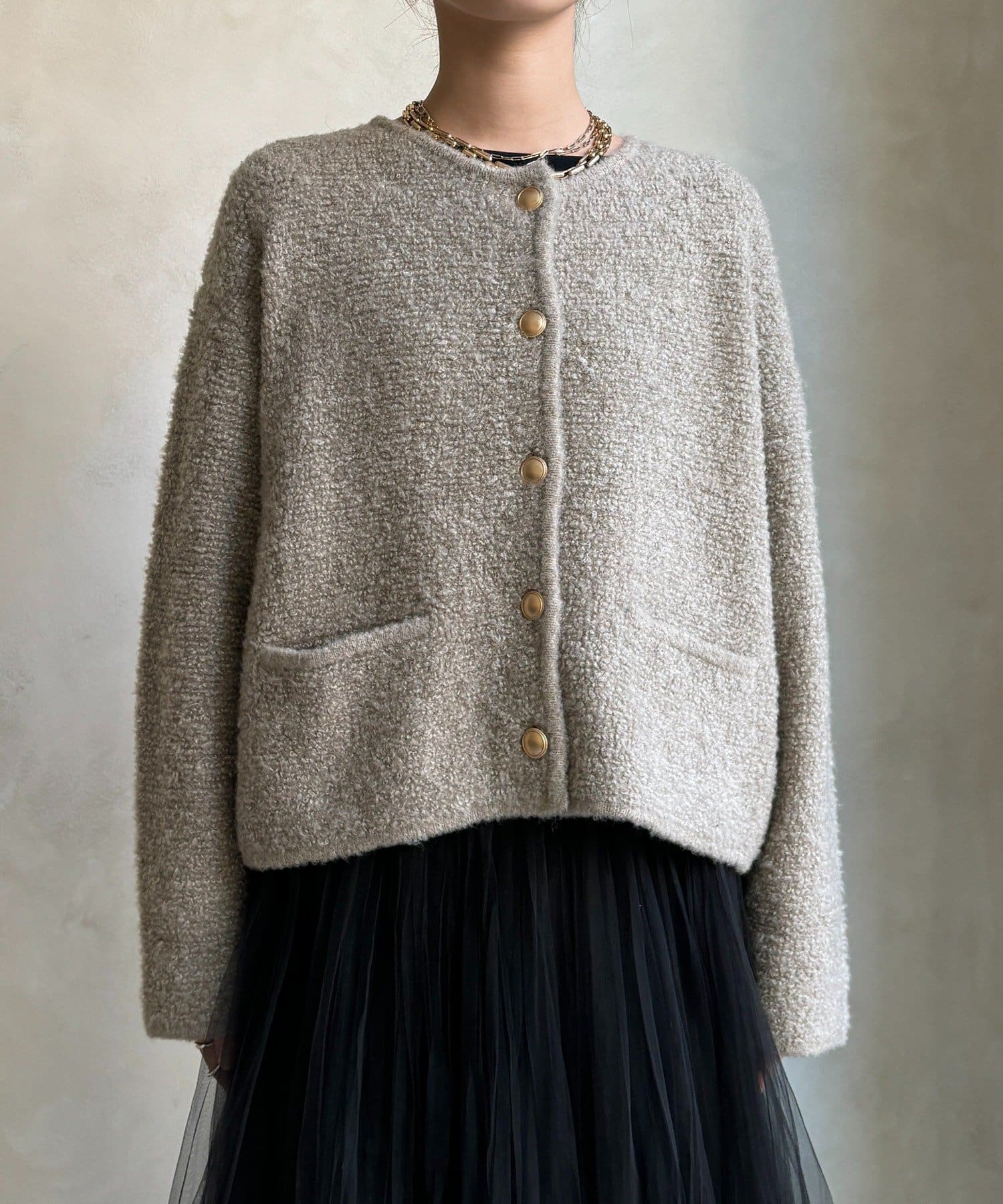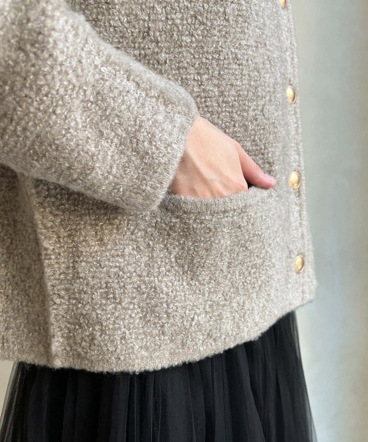 ふんわりと空気を含んだループヤーンが、見た目にもあたたかなニットジャケット。