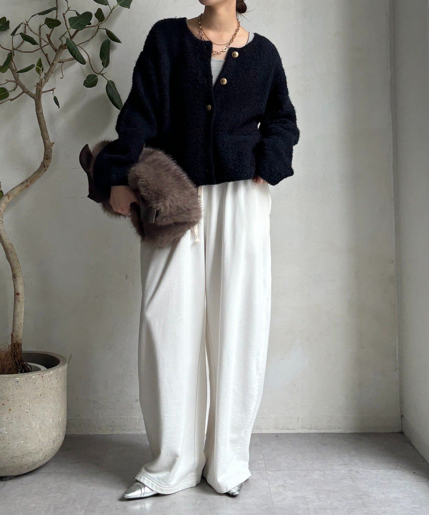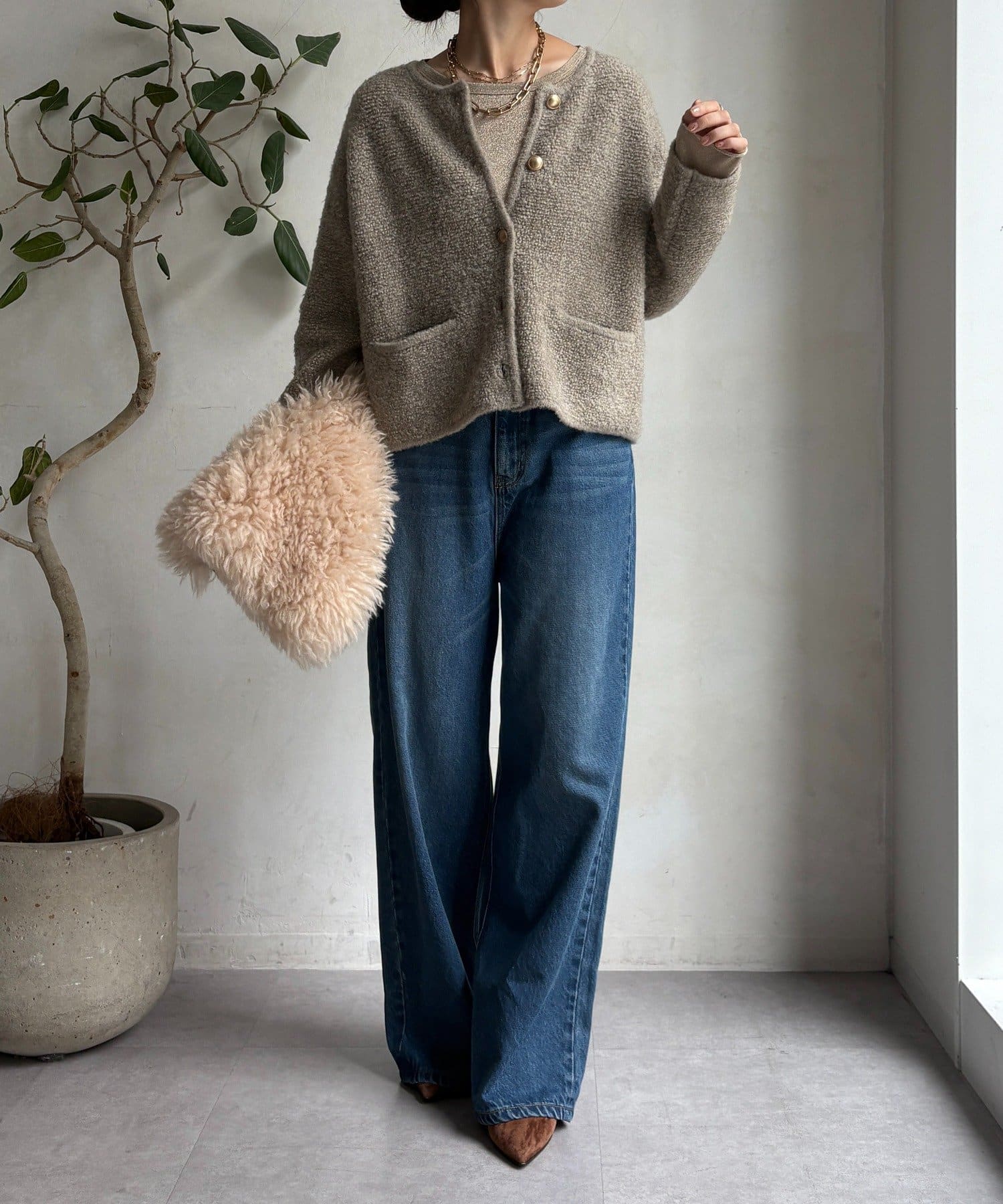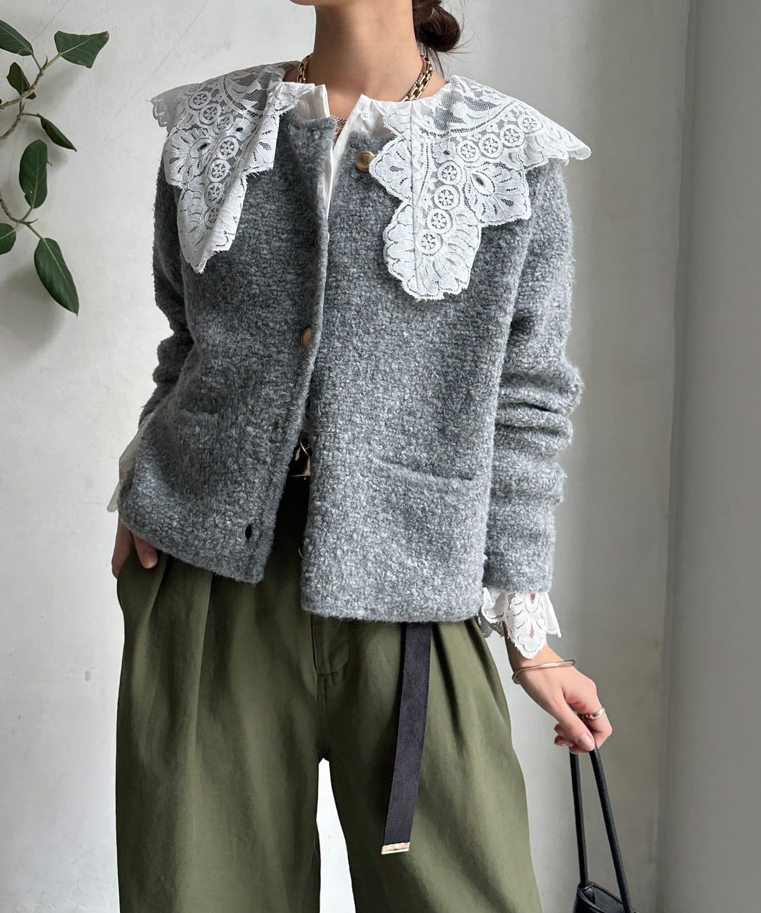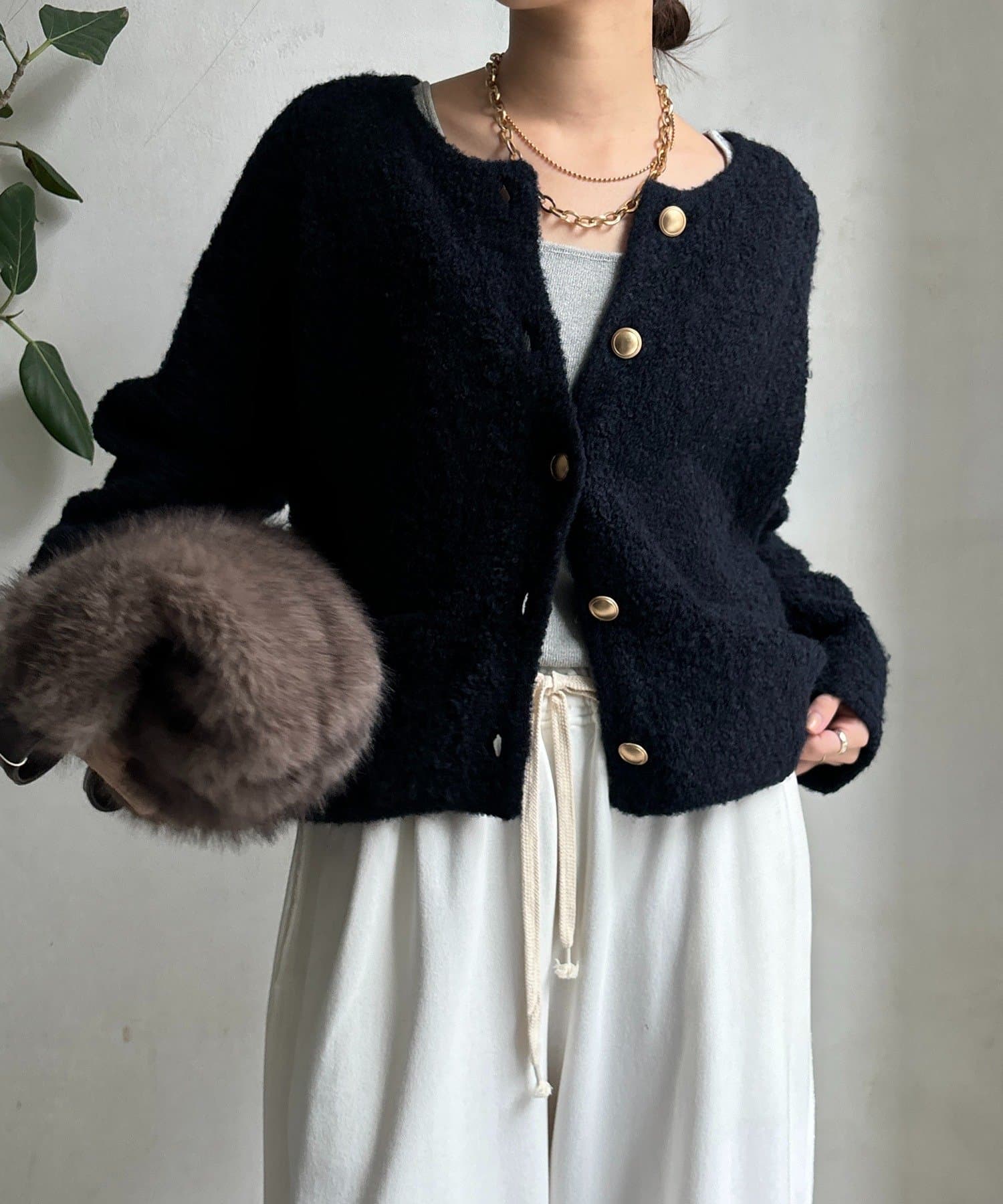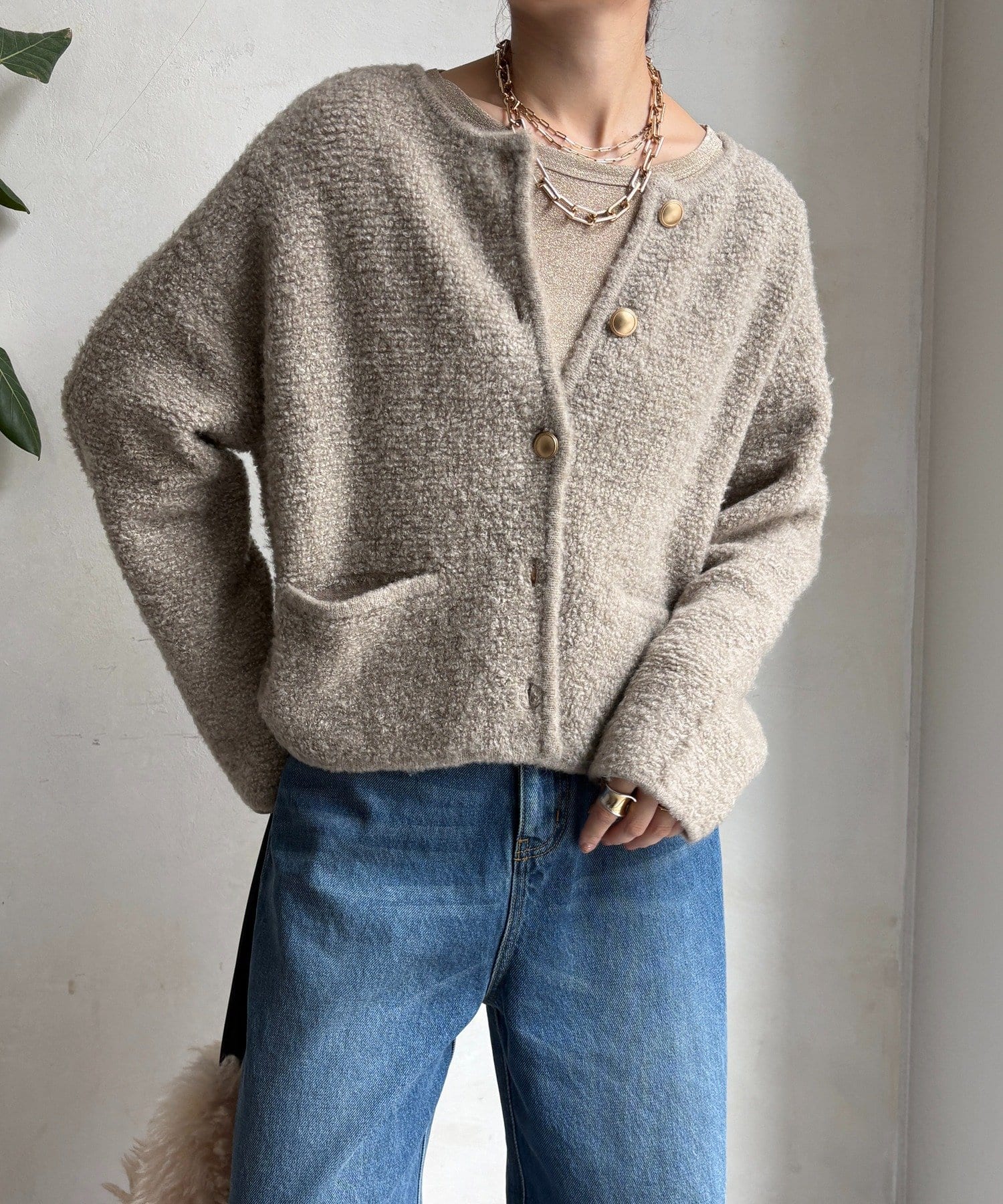 ふんわりと空気を含んだループヤーンが、見た目にもあたたかなニットジャケット。