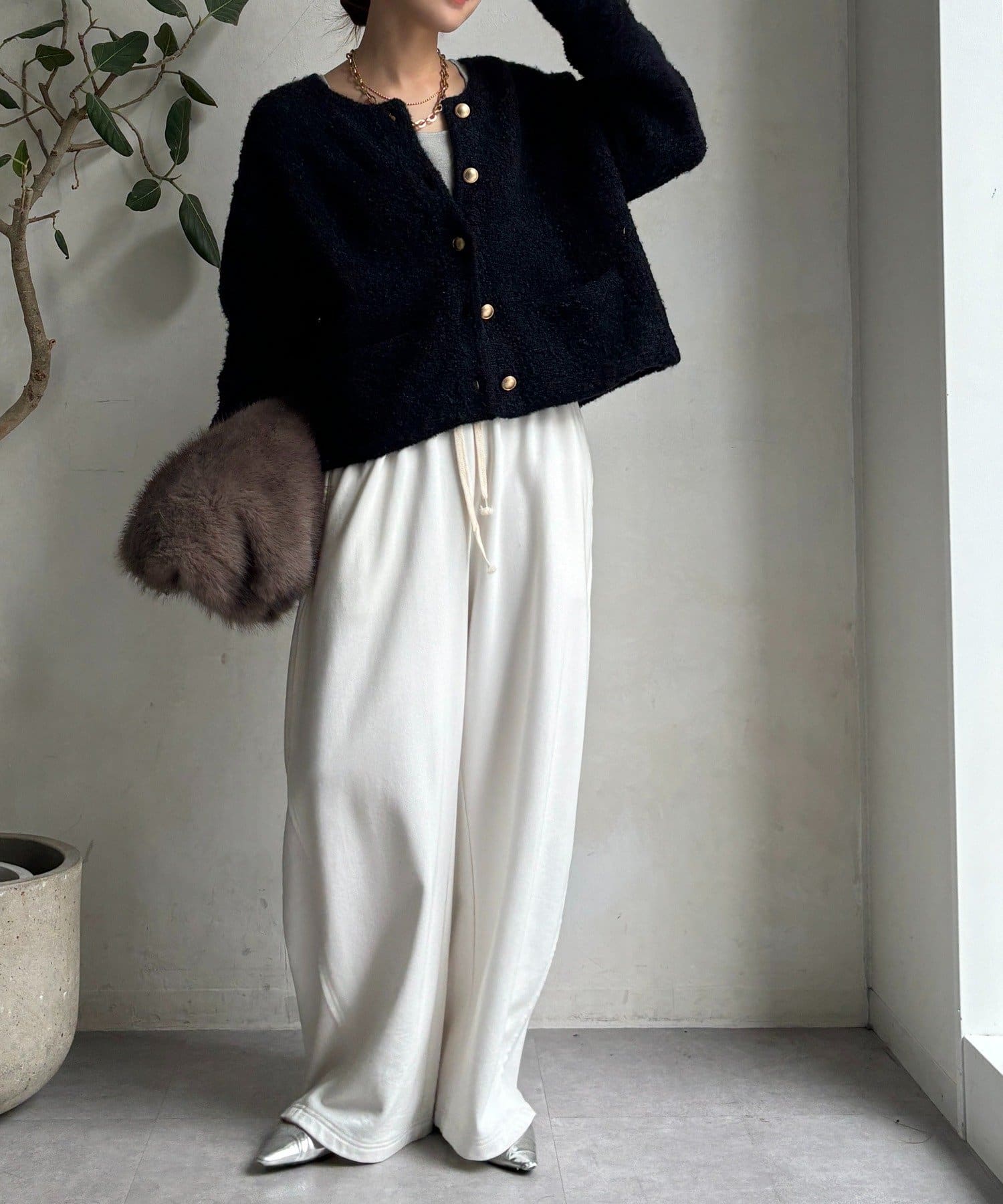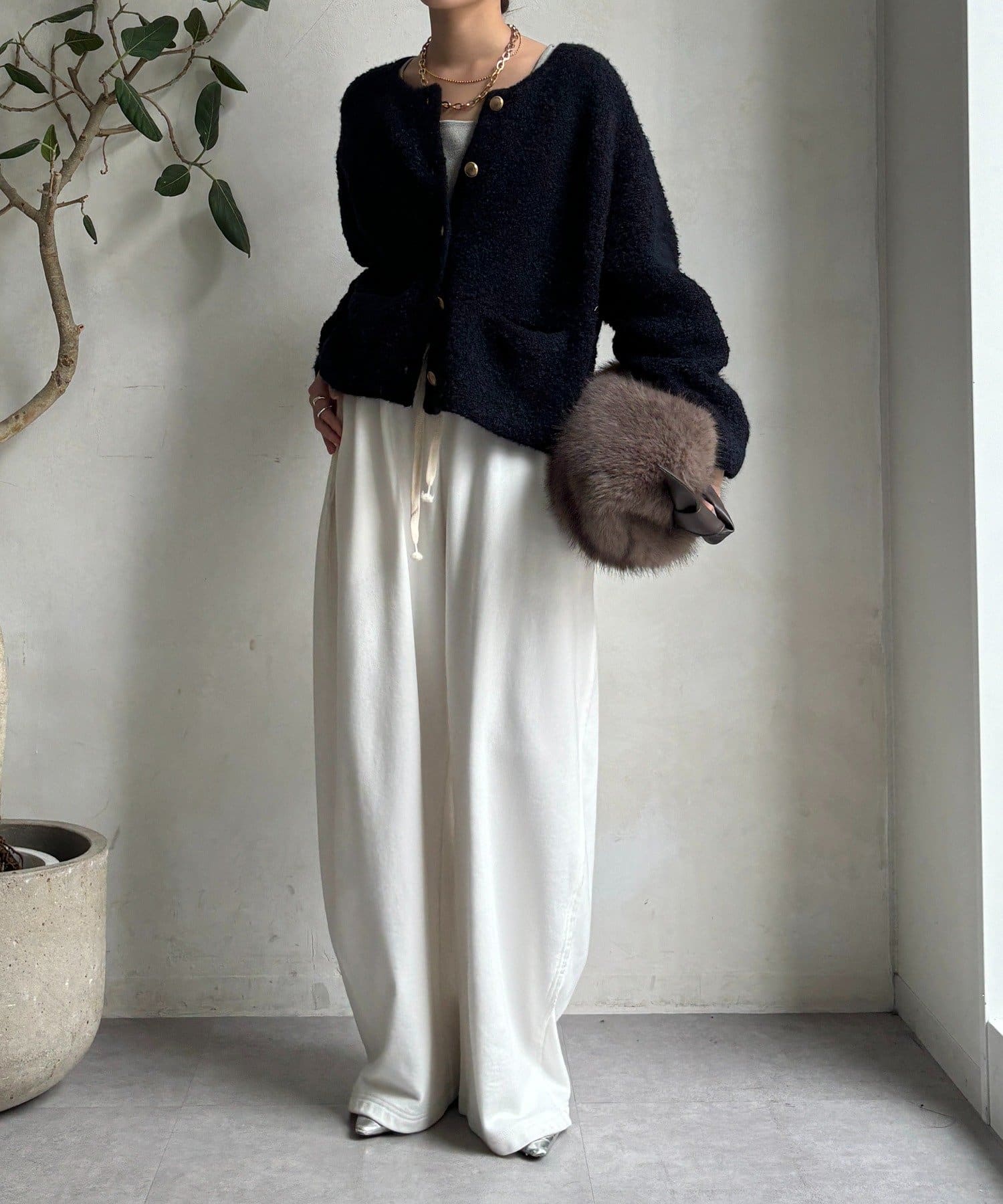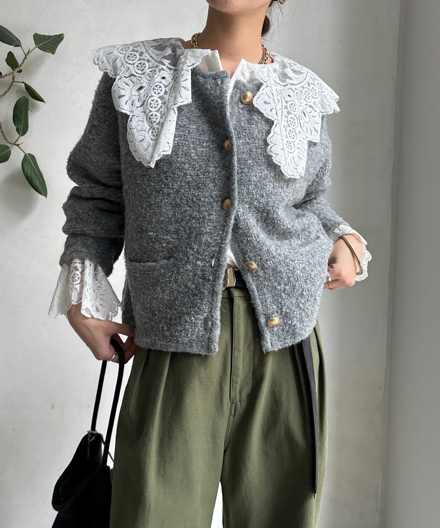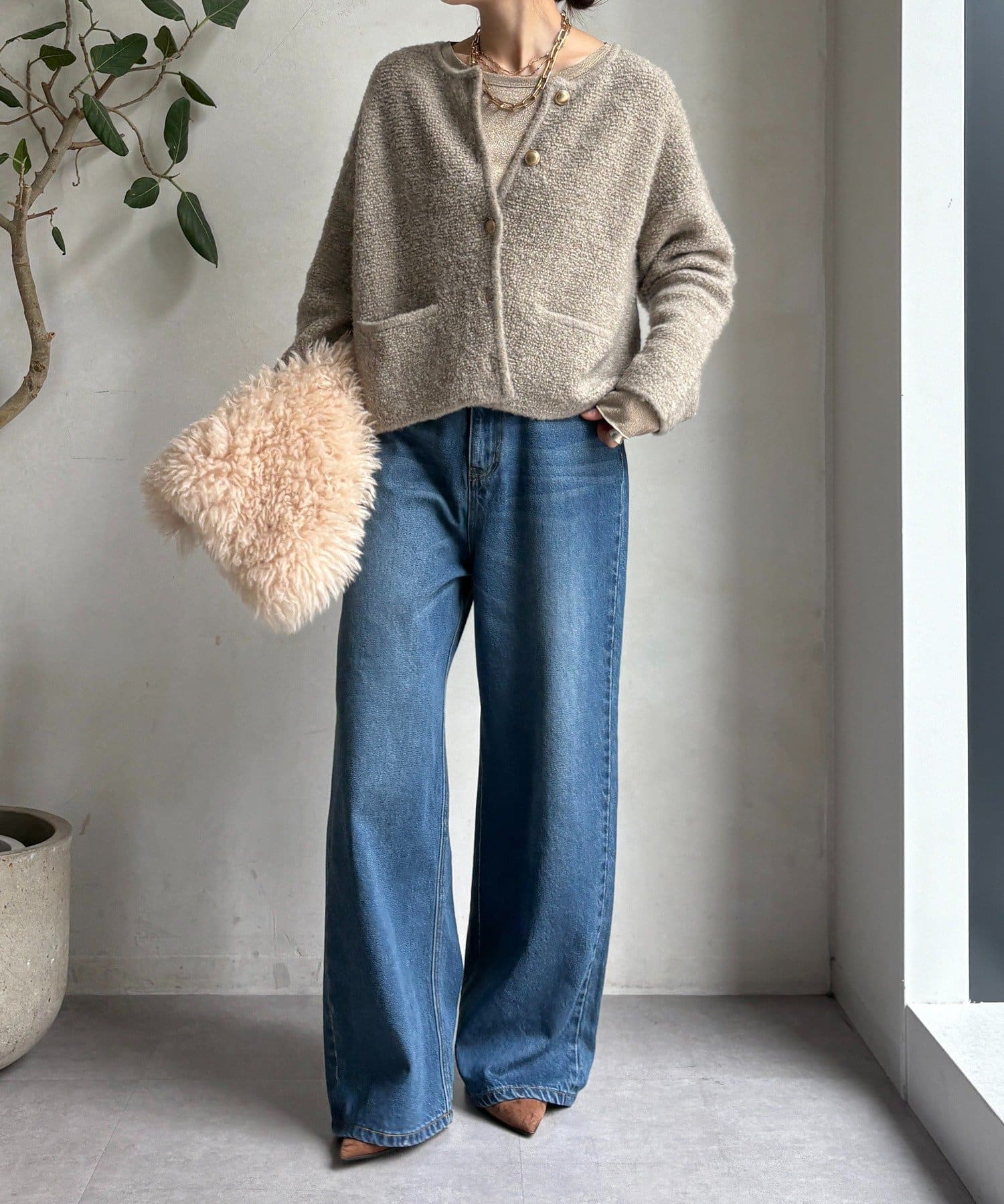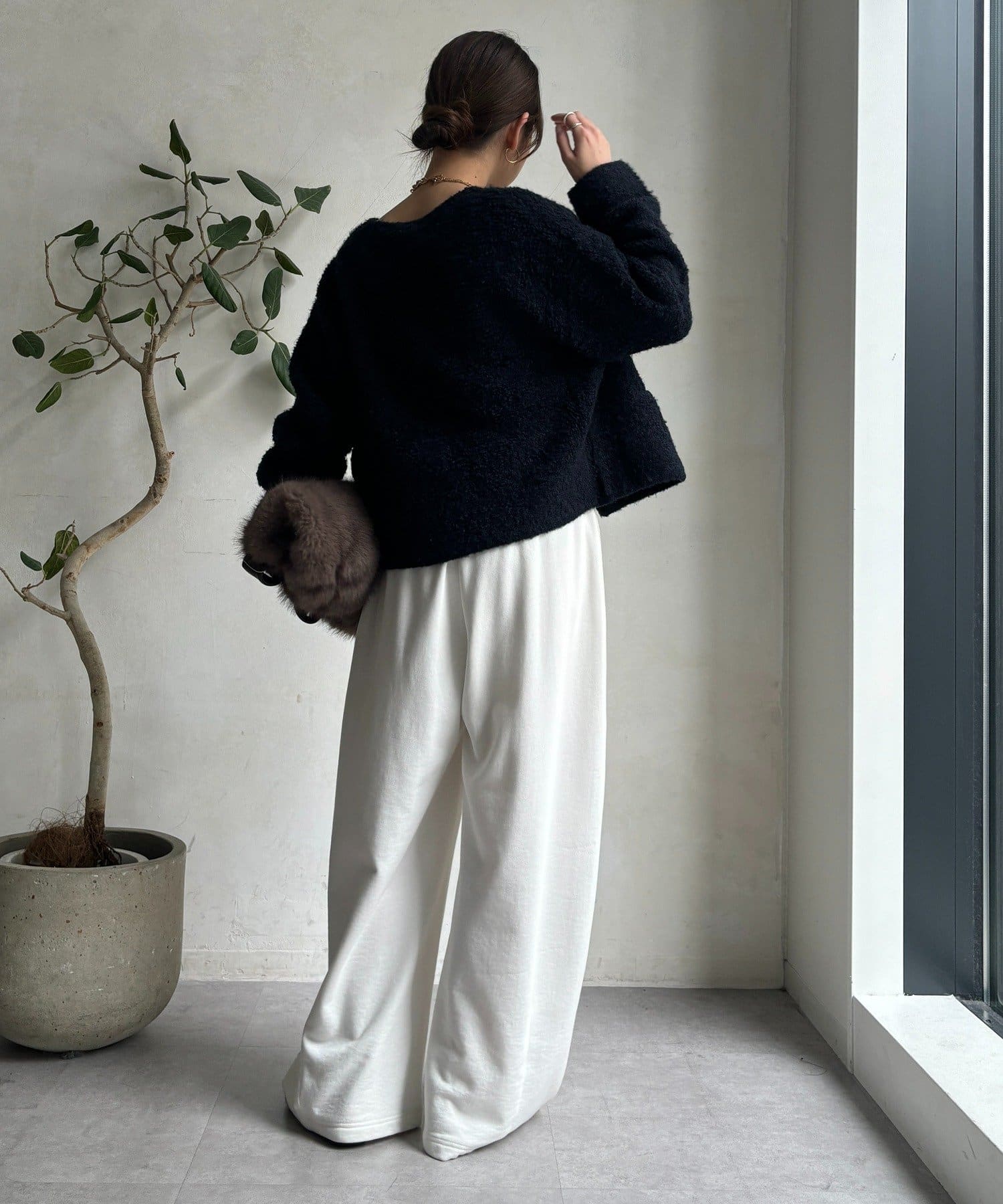 ふんわりと空気を含んだループヤーンが、見た目にもあたたかなニットジャケット。