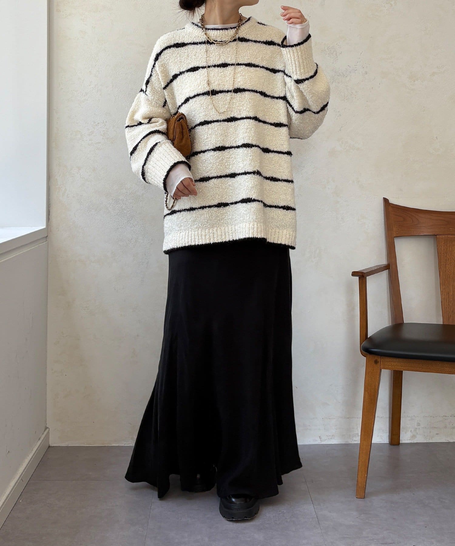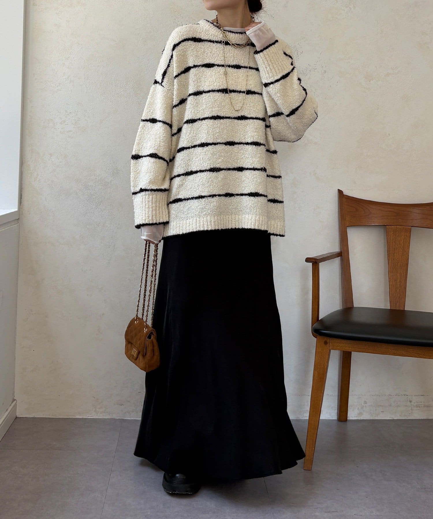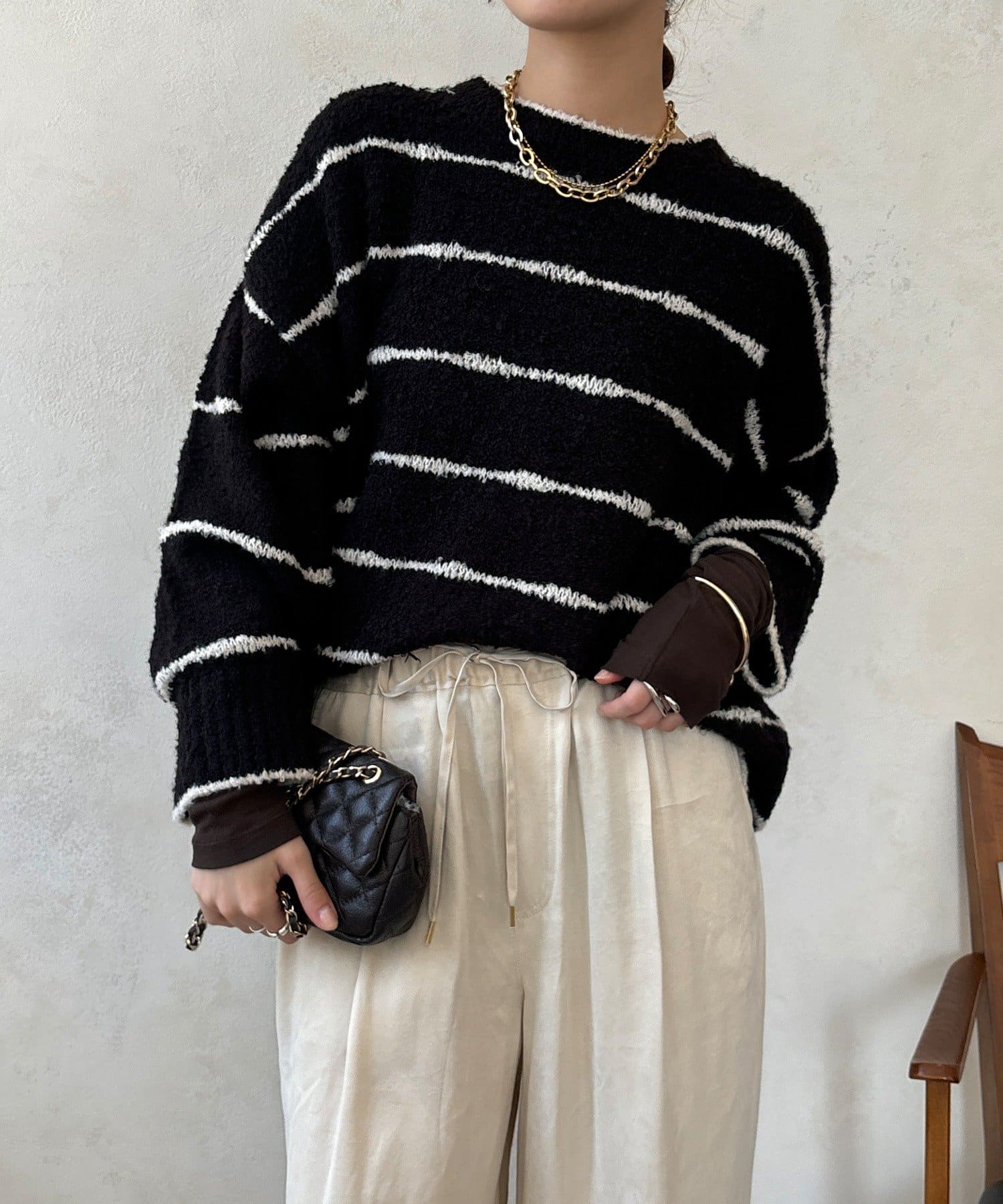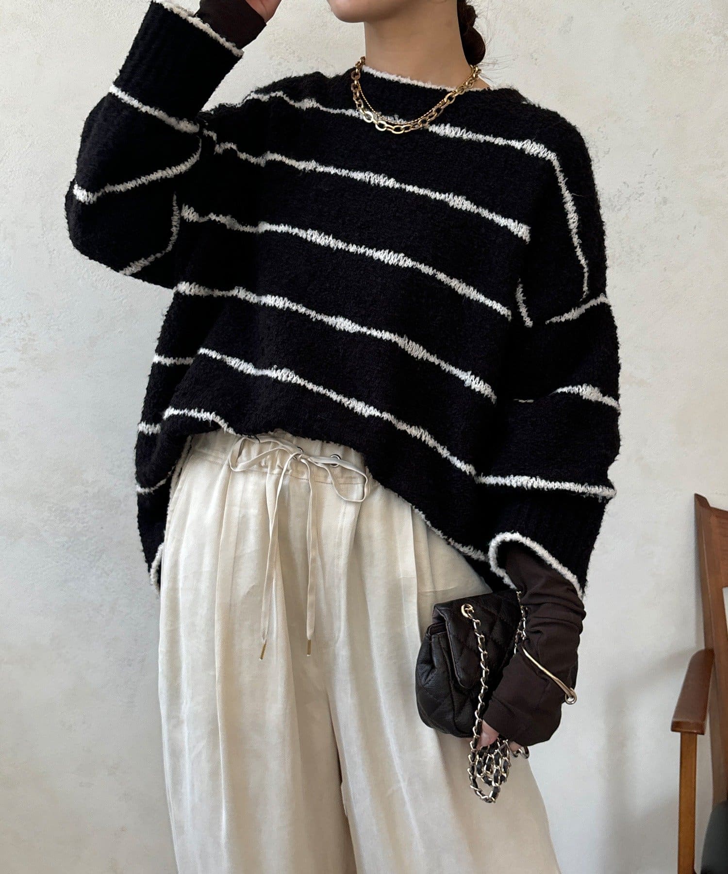 定番のボーダートップスに、手書き風のラフなタッチをプラスした、こなれ感たっぷりの1枚。