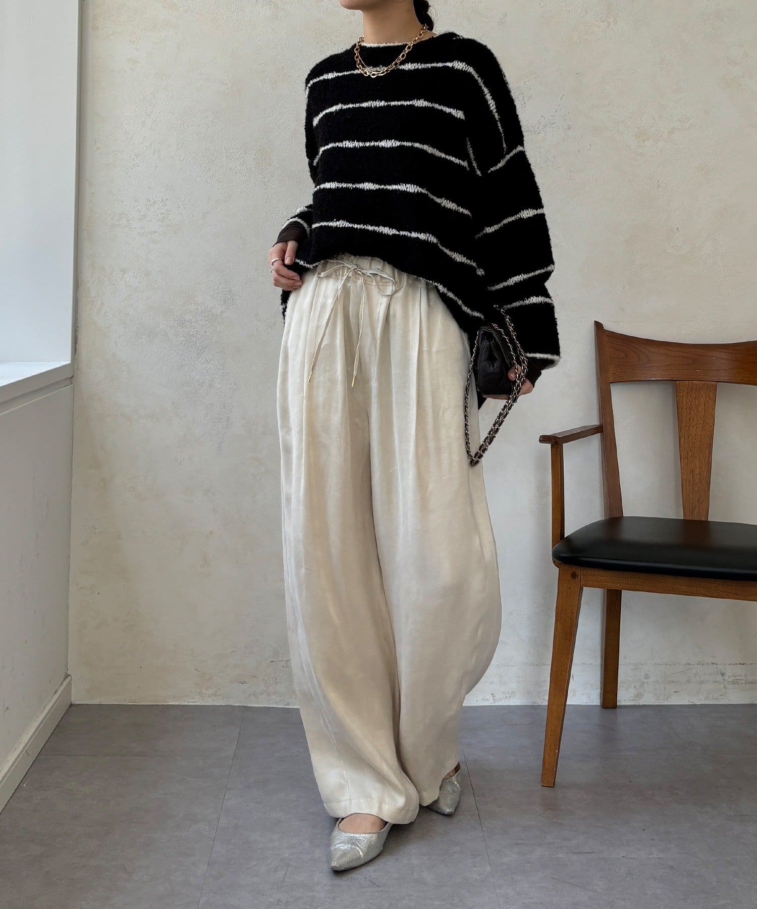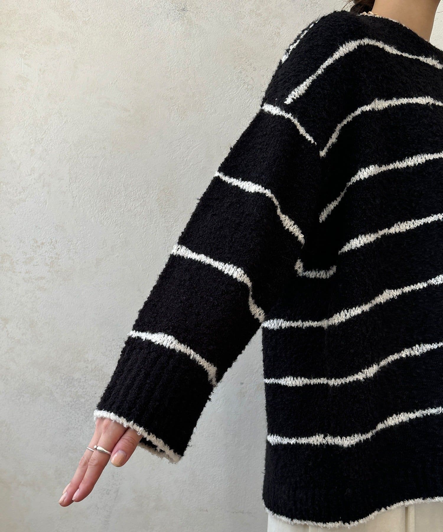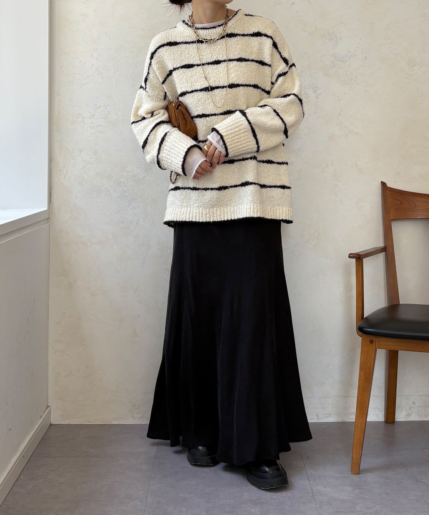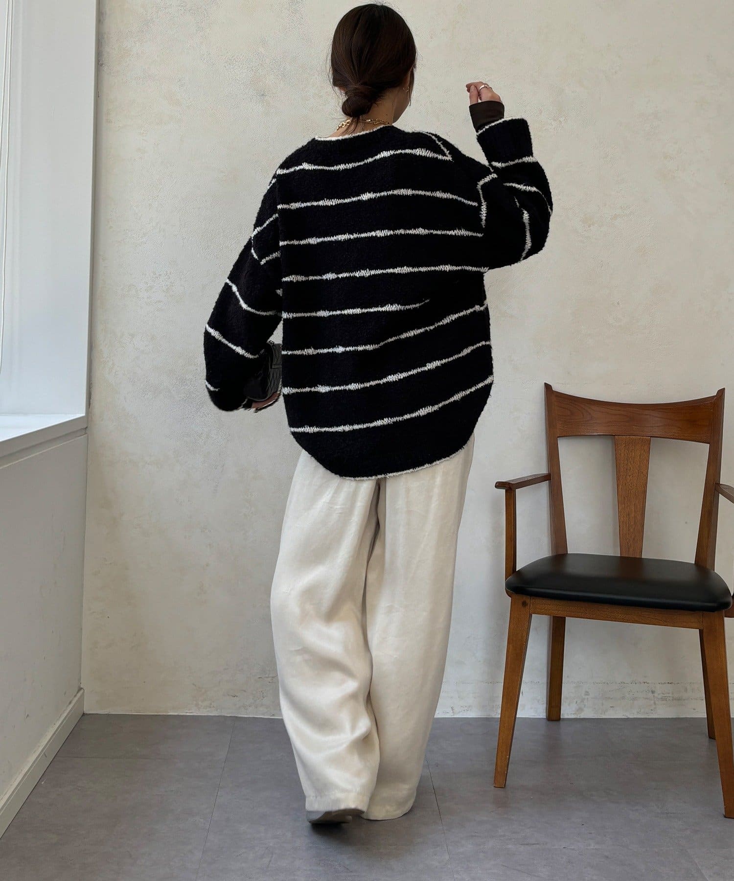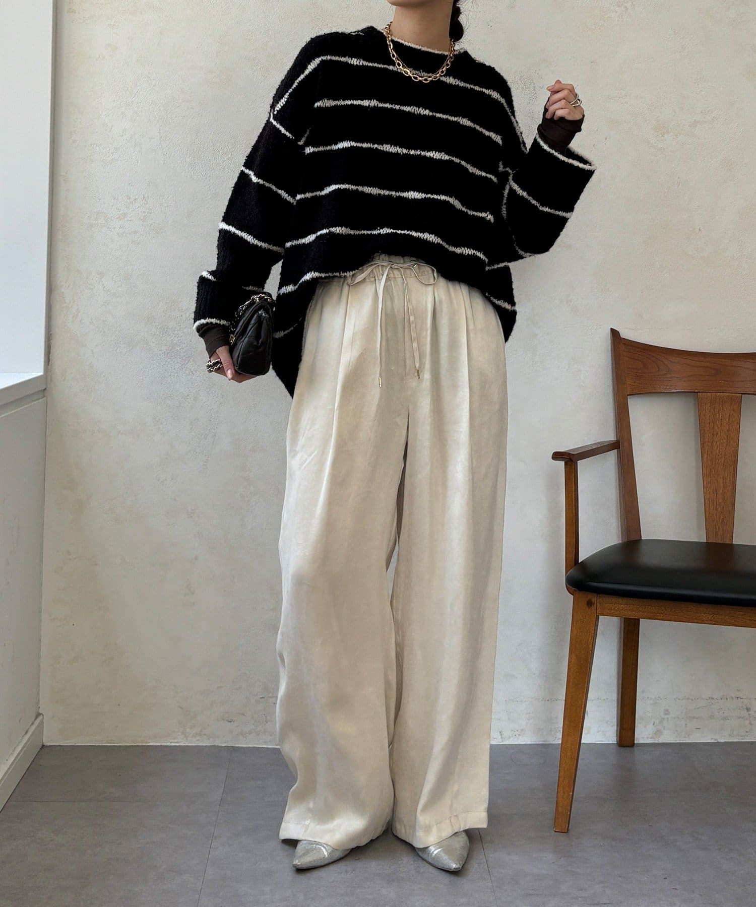 定番のボーダートップスに、手書き風のラフなタッチをプラスした、こなれ感たっぷりの1枚。