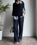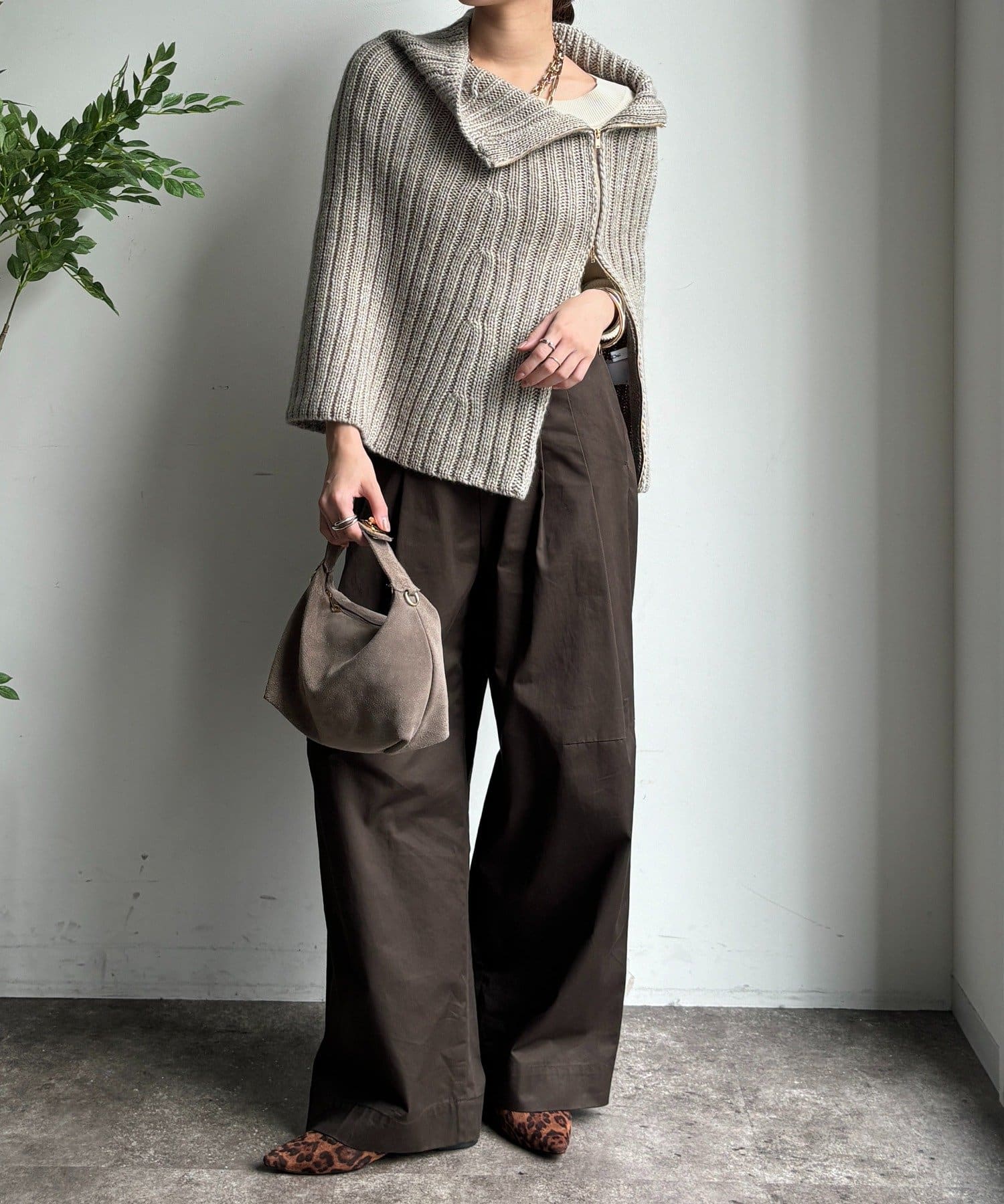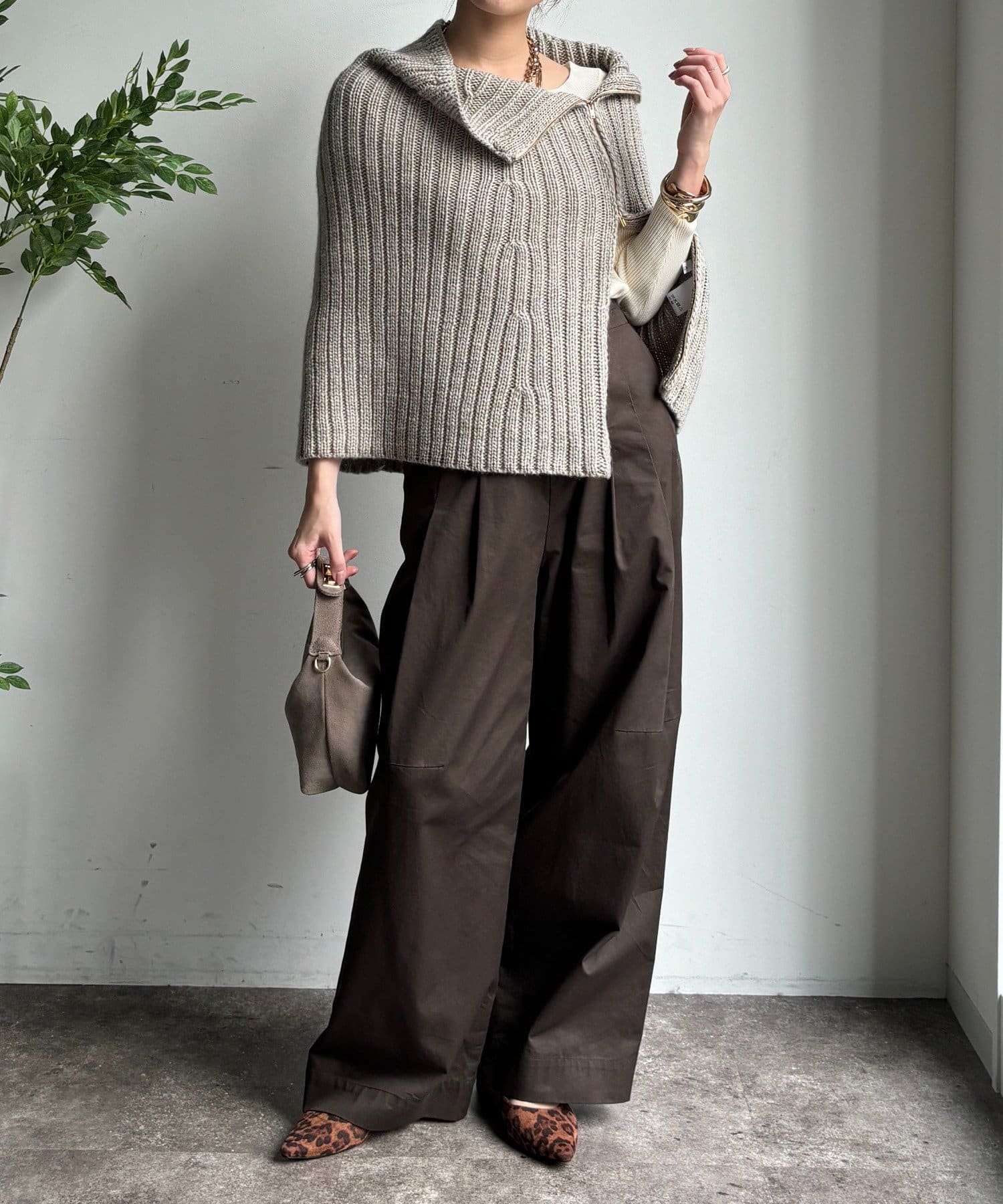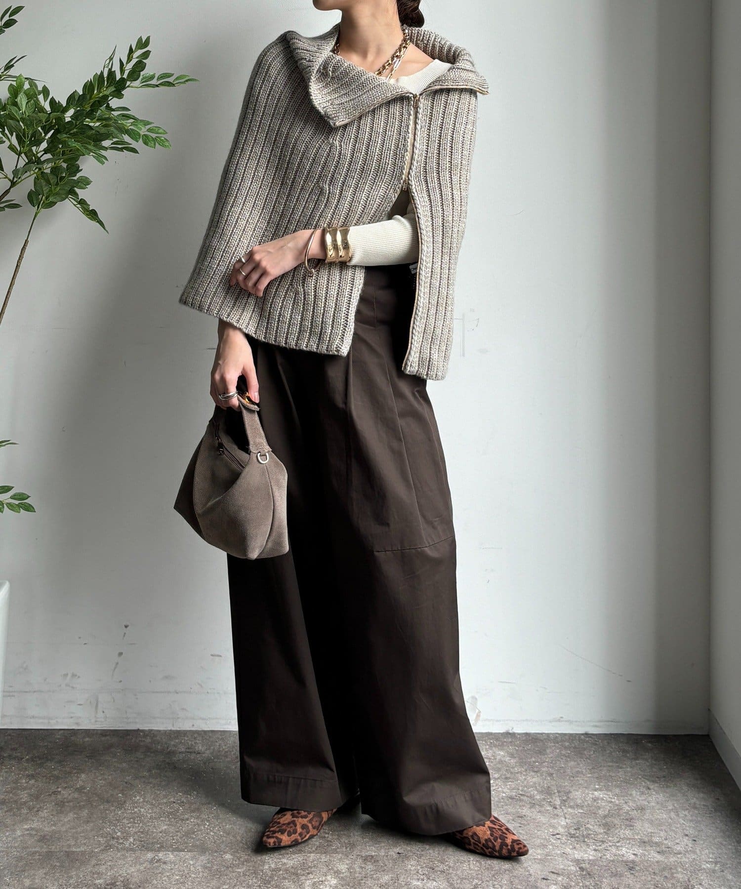 冬には、ニットやタートルネックとのレイヤードスタイルで、暖かくおしゃれを楽しめます。