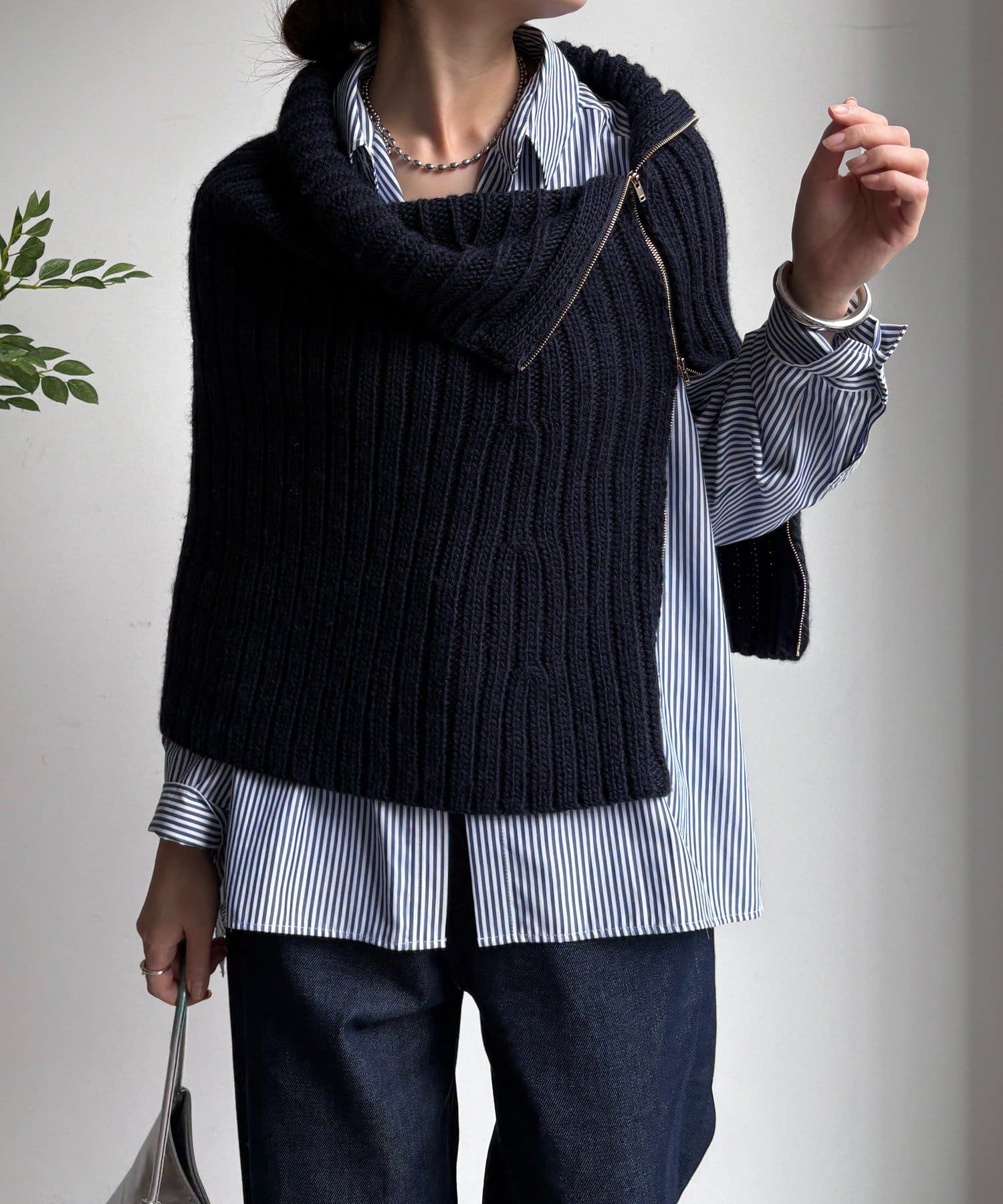 フロントのジップアップデザインは、着脱が簡単なだけでなく、スタイリングの幅を広げるアクセントにも。