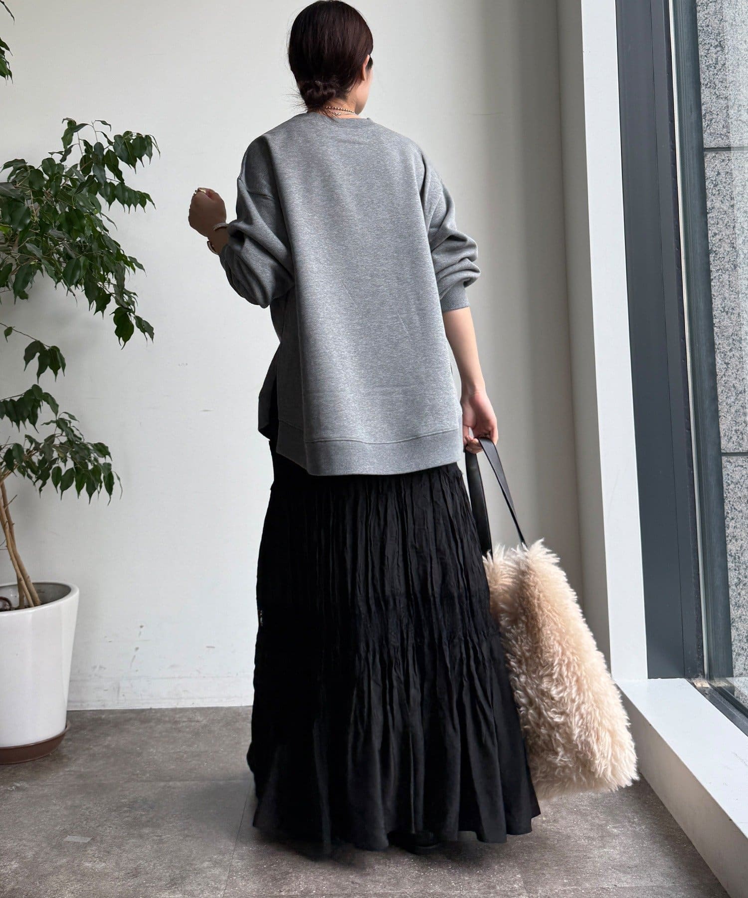 前後差のある裾がこなれ感を演出し、気になる腰まわりも自然にカバー。