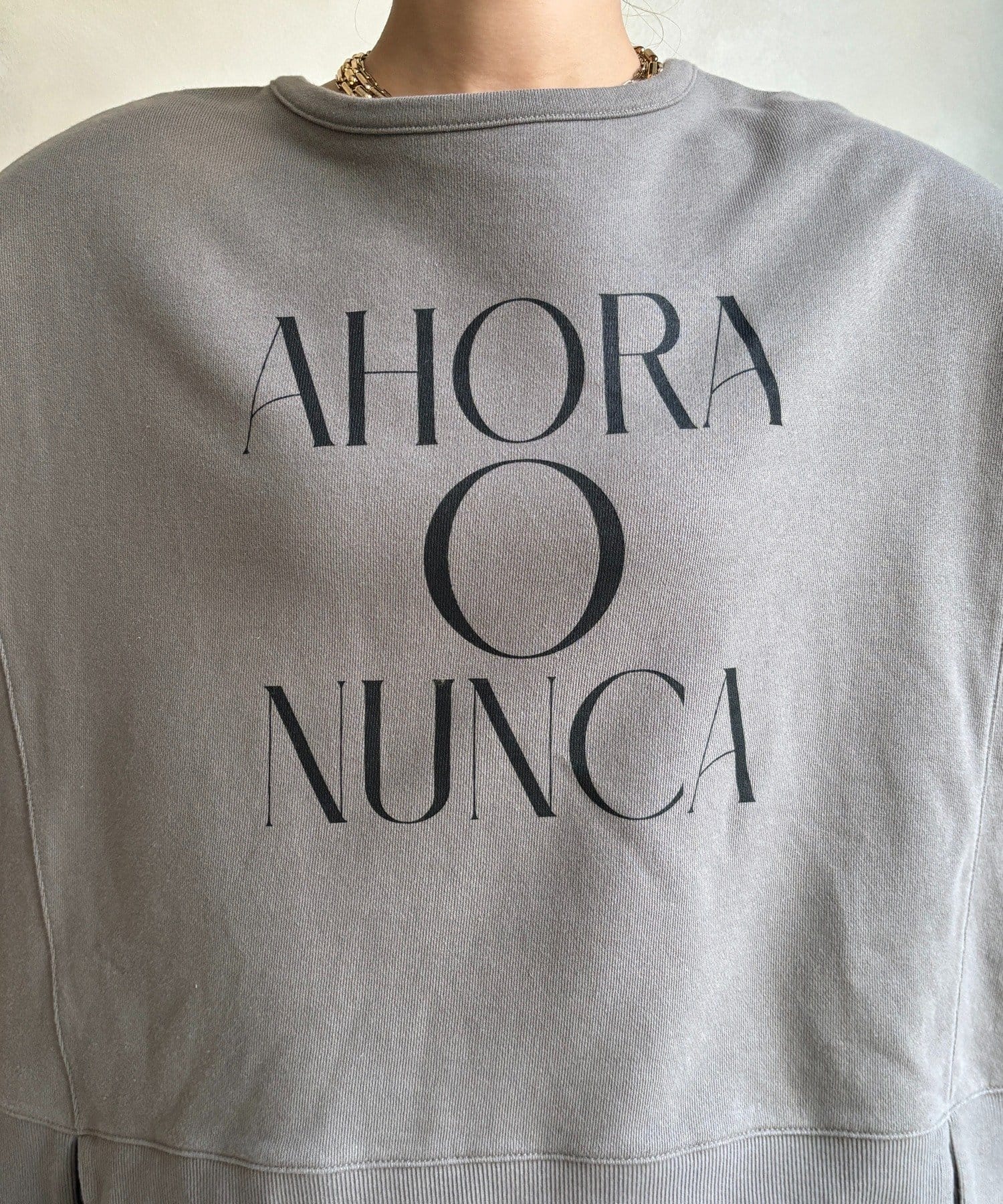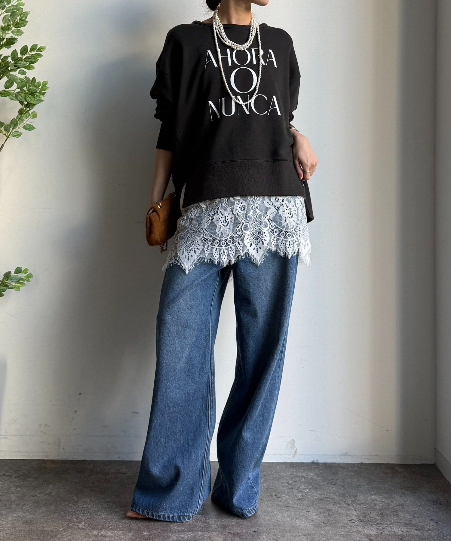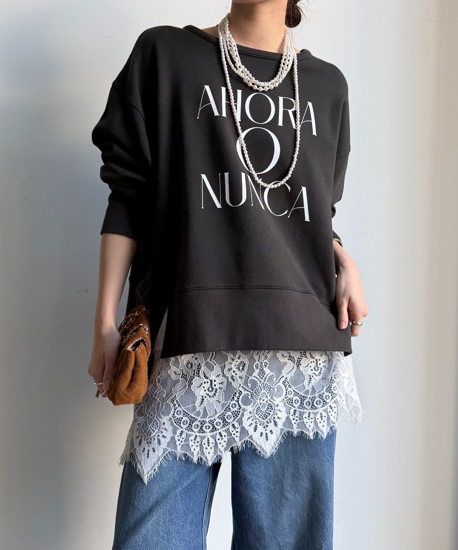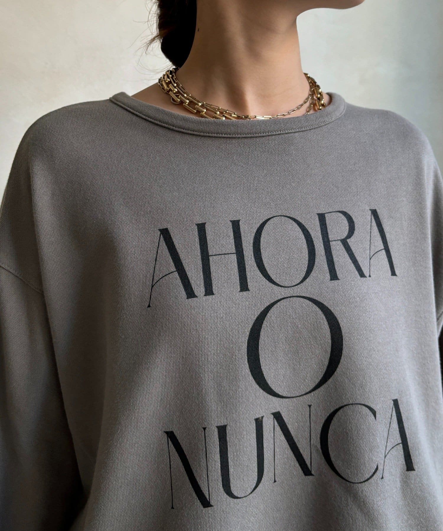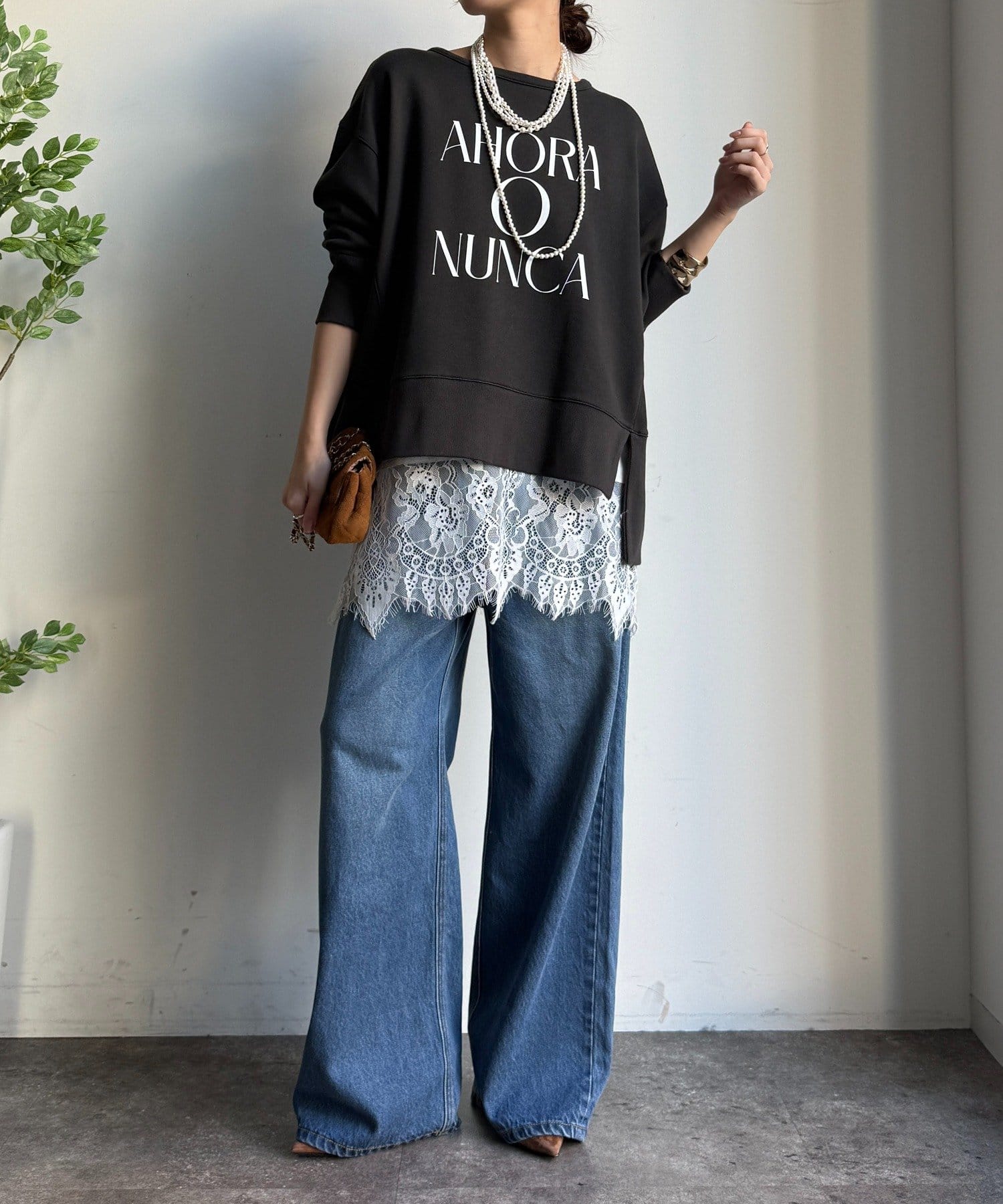 ラフさの中に抜け感と女性らしさを感じる「サイドスリットロゴスウェット」