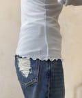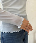袖口と襟ぐりをメロー仕立てにすることで、程よい甘さと軽やかさをプラスします。