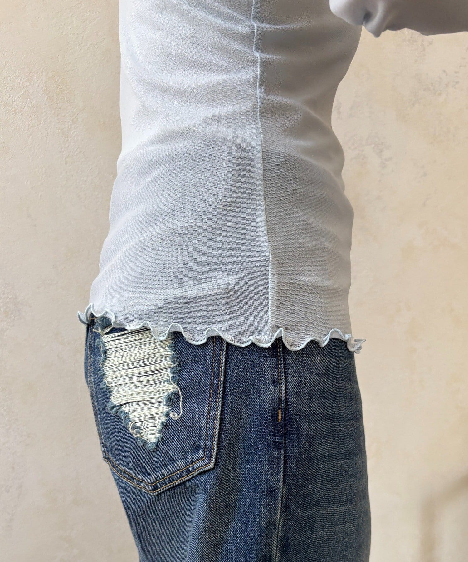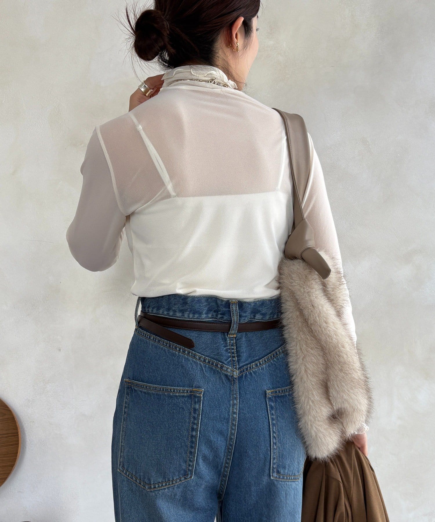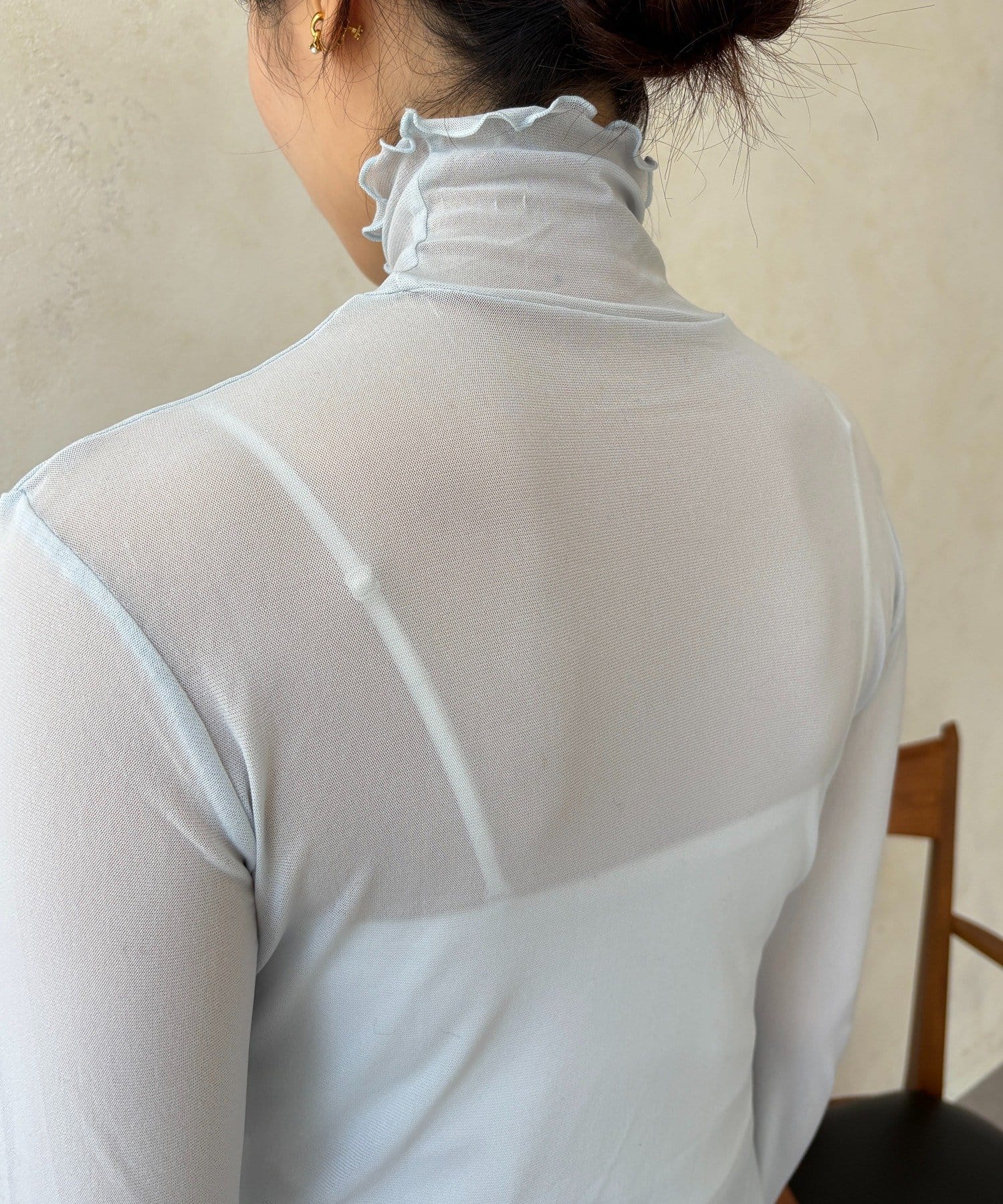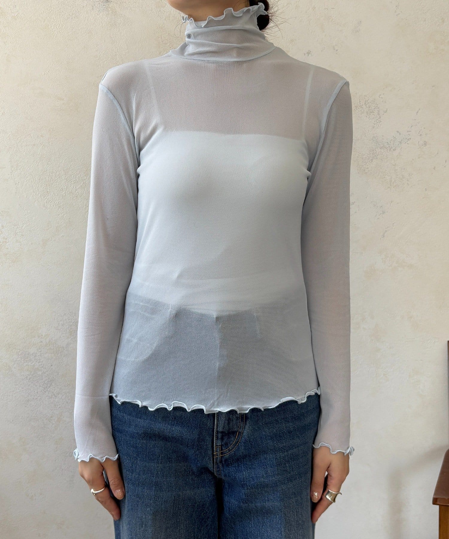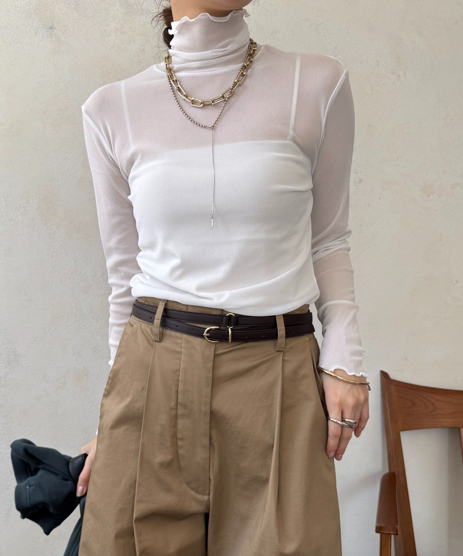 透け過ぎない素材感がポイントとなってくれるアイテム。