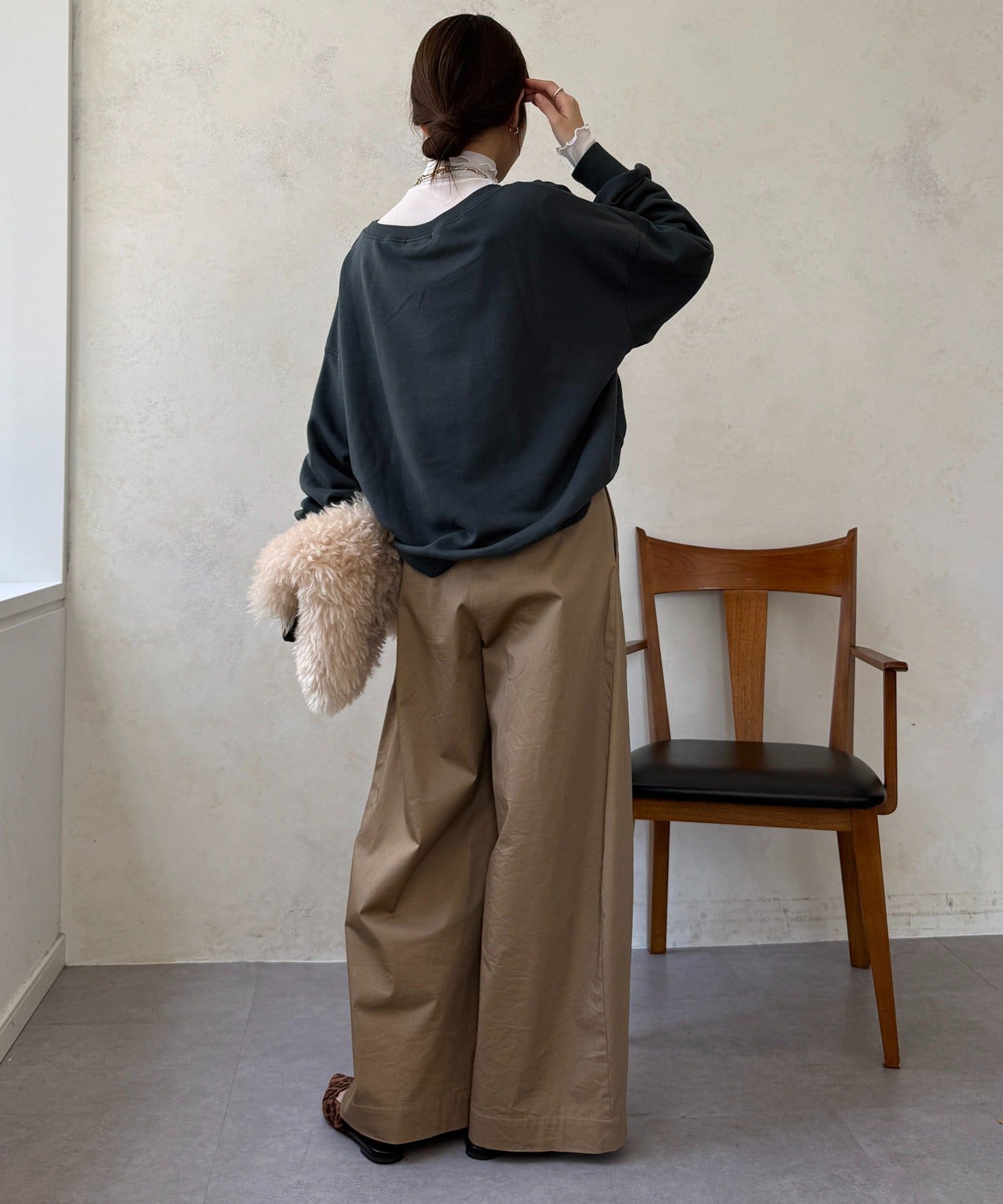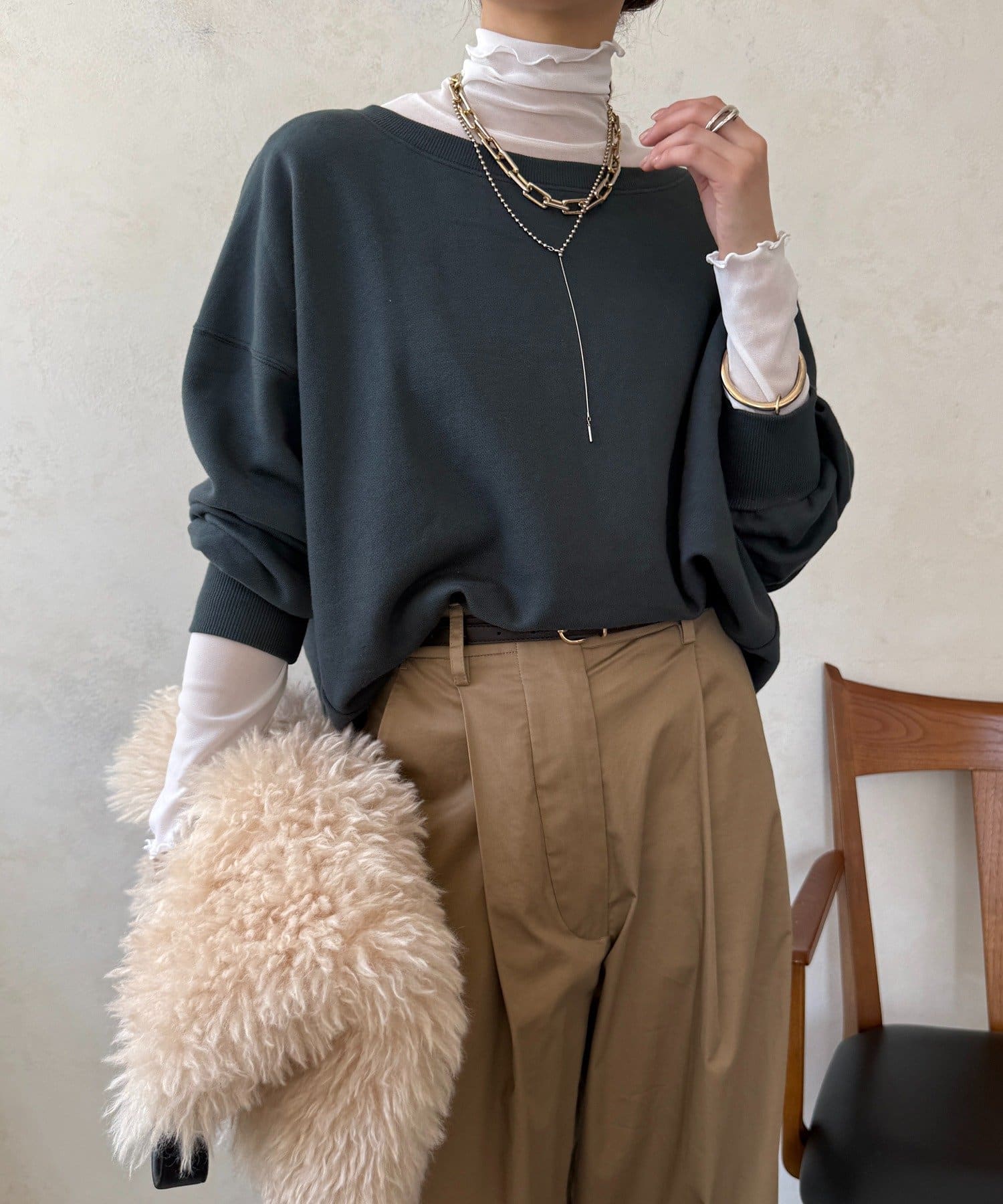 冬にはスウェットやニットと合わせて、首元とお袖からチラッと出すとコーディネートのワンポイントになってくれますよ。