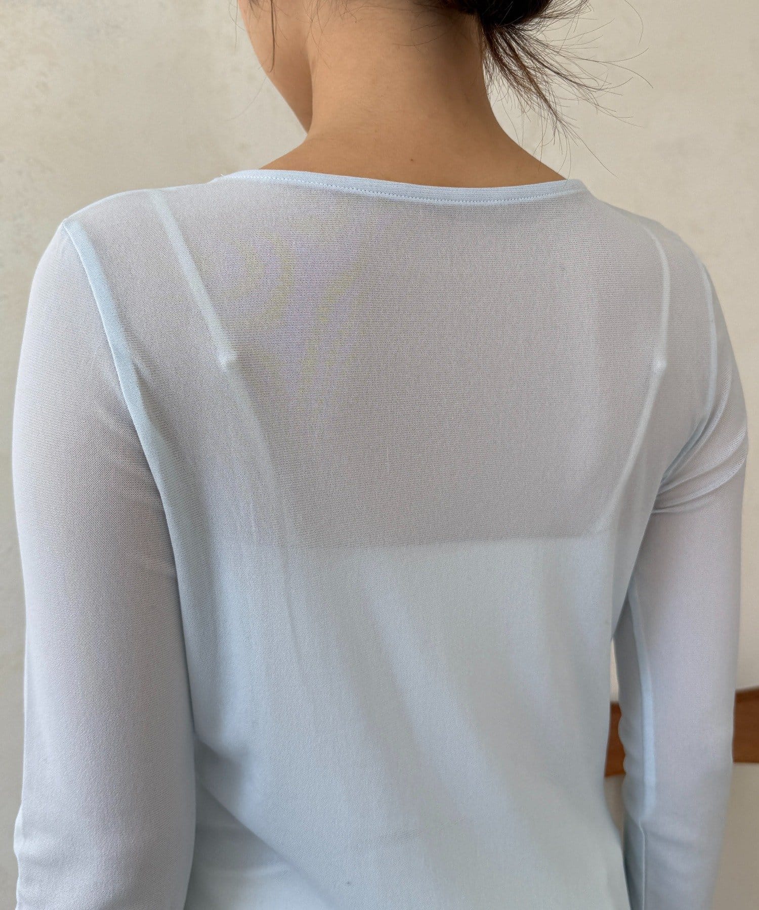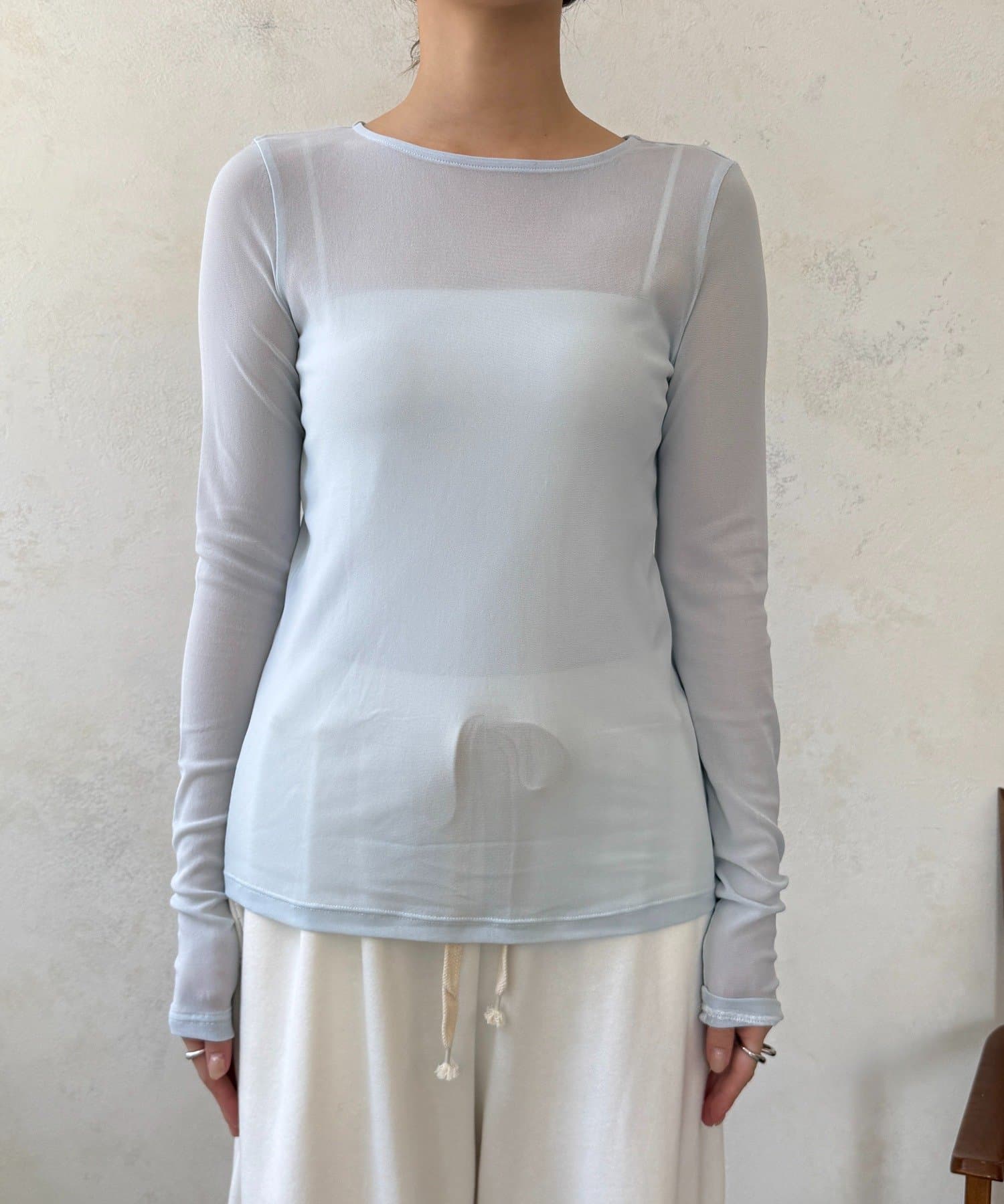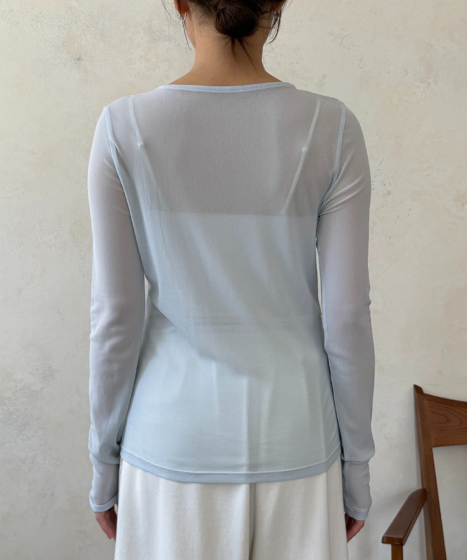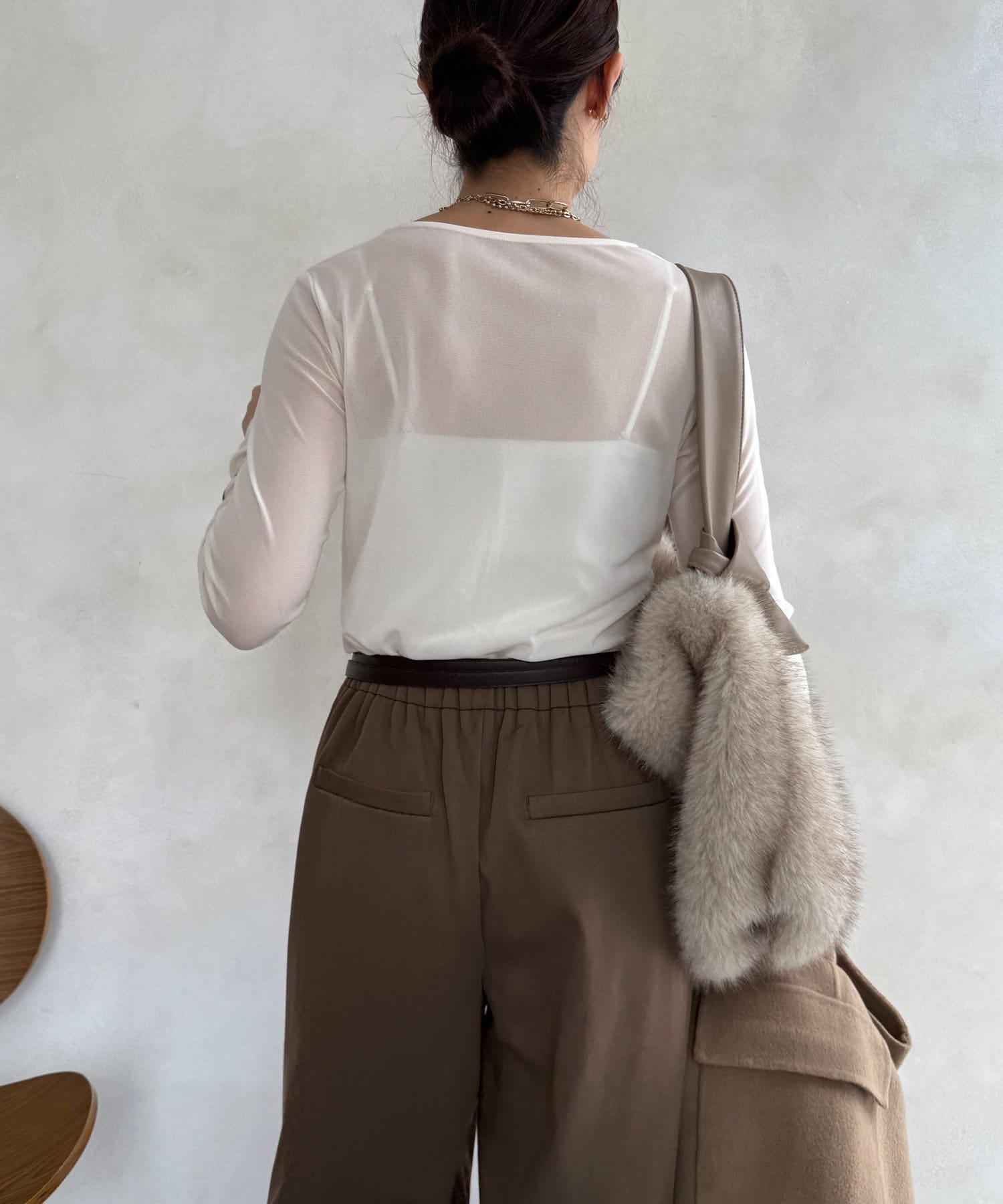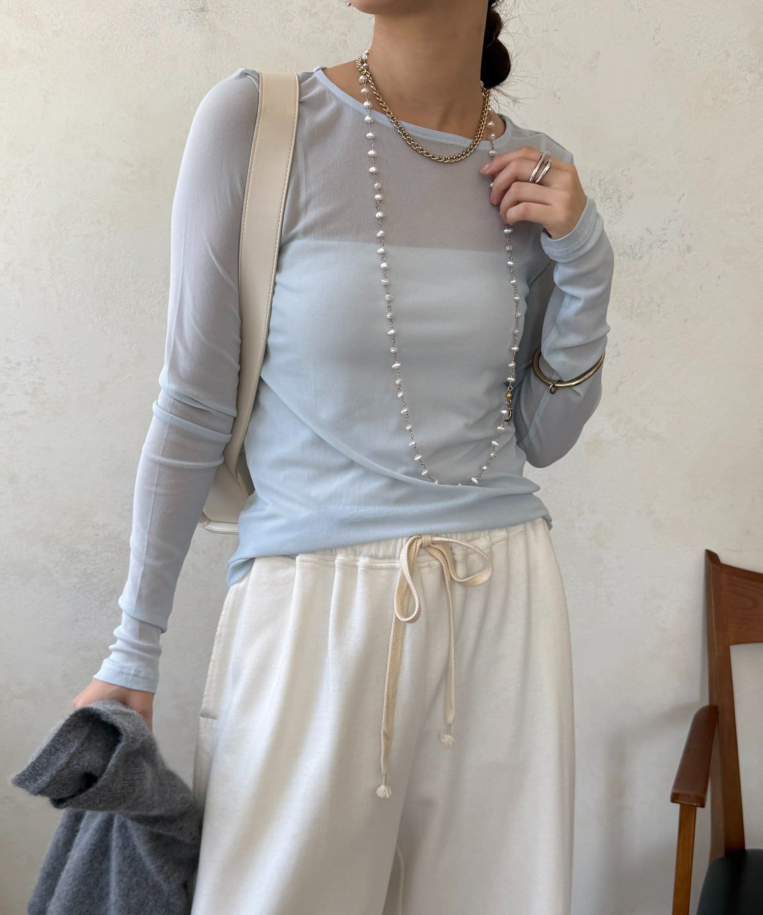 透け過ぎない素材感がポイントとなってくれるアイテム。