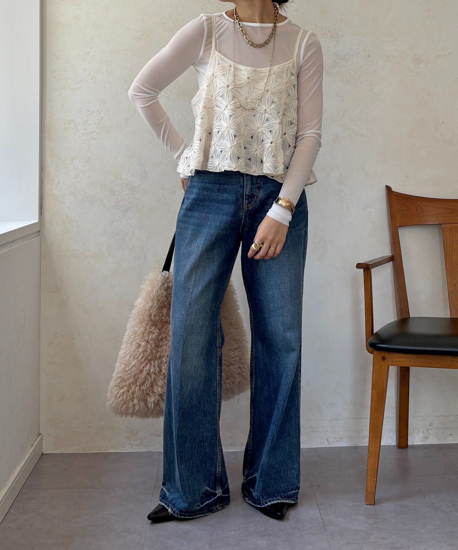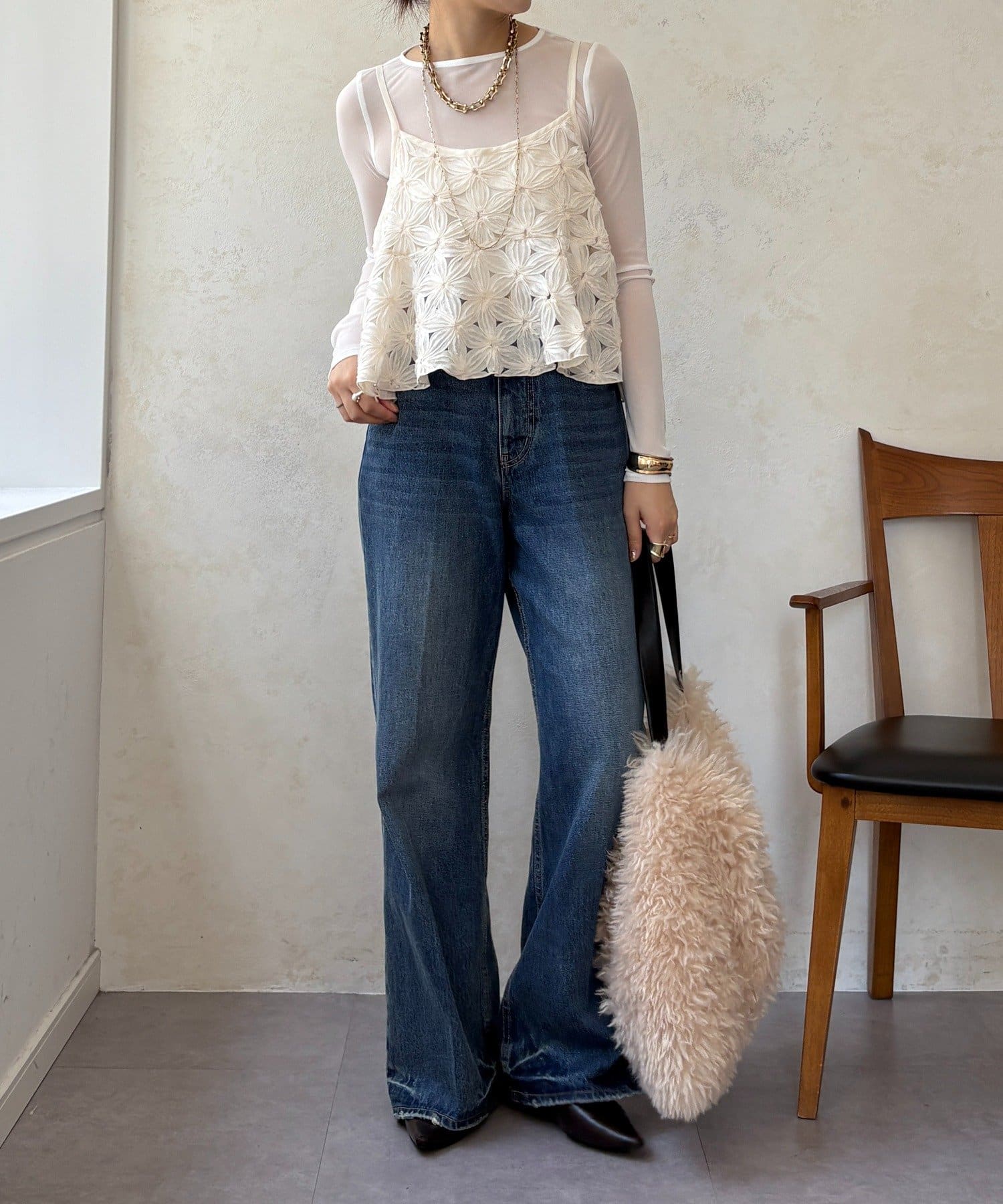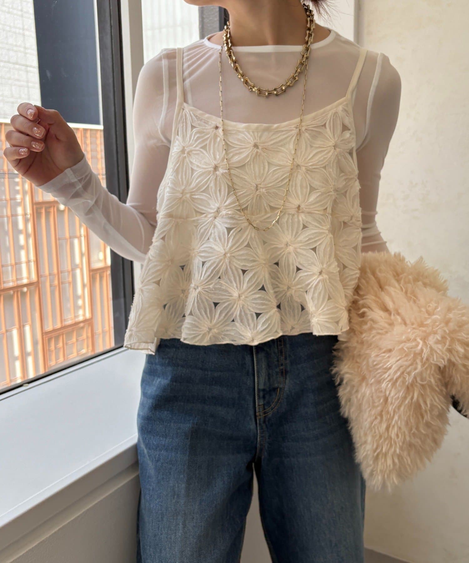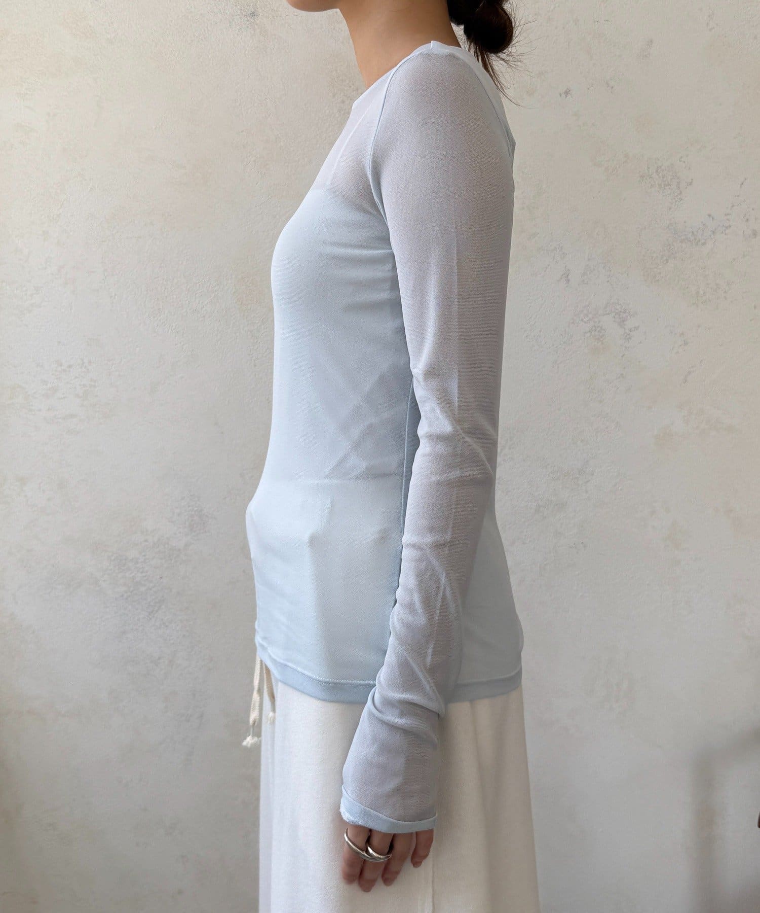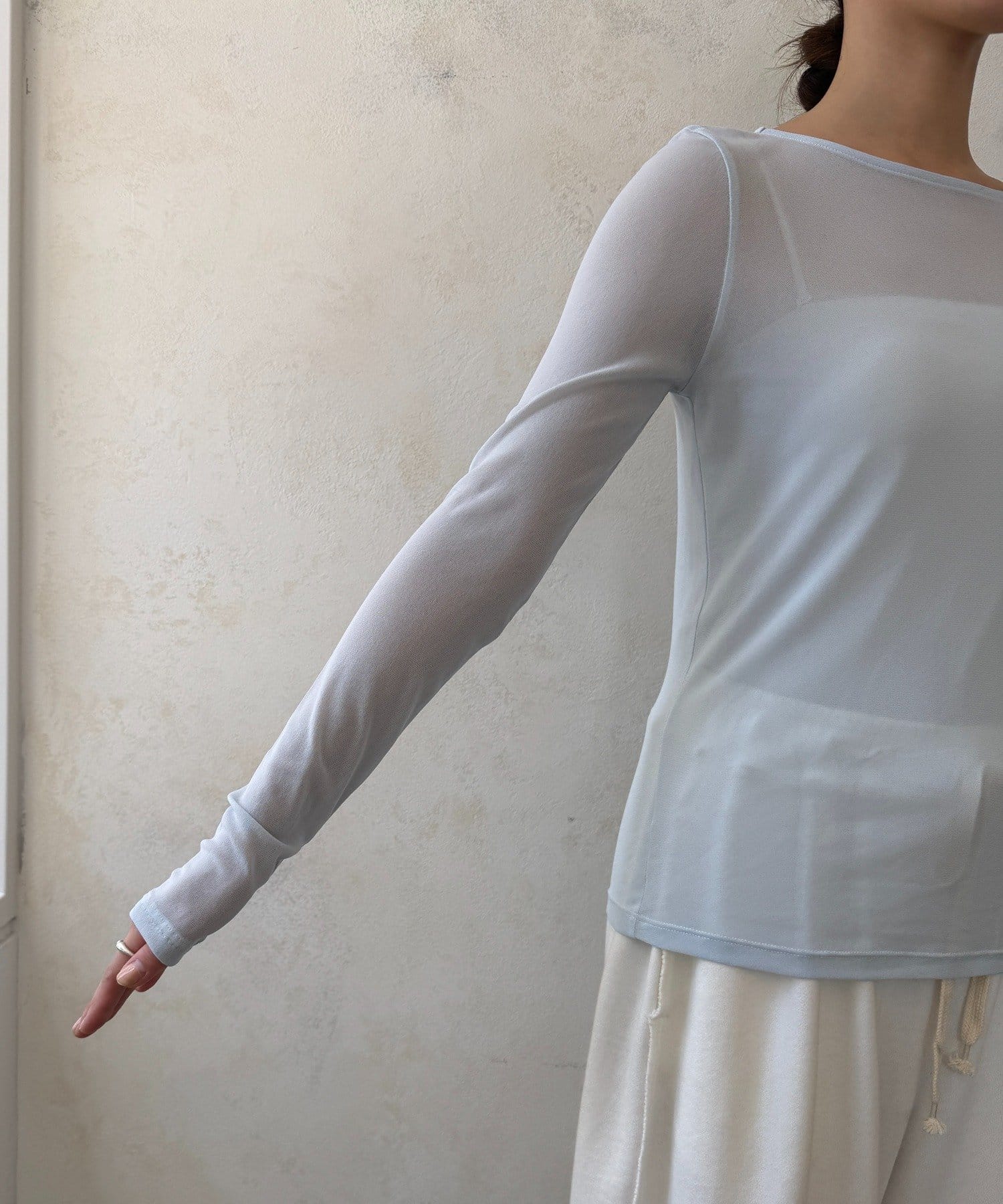 透け過ぎない素材感がポイントとなってくれるアイテム。