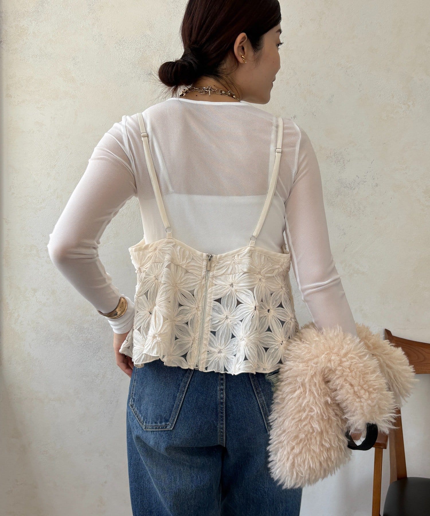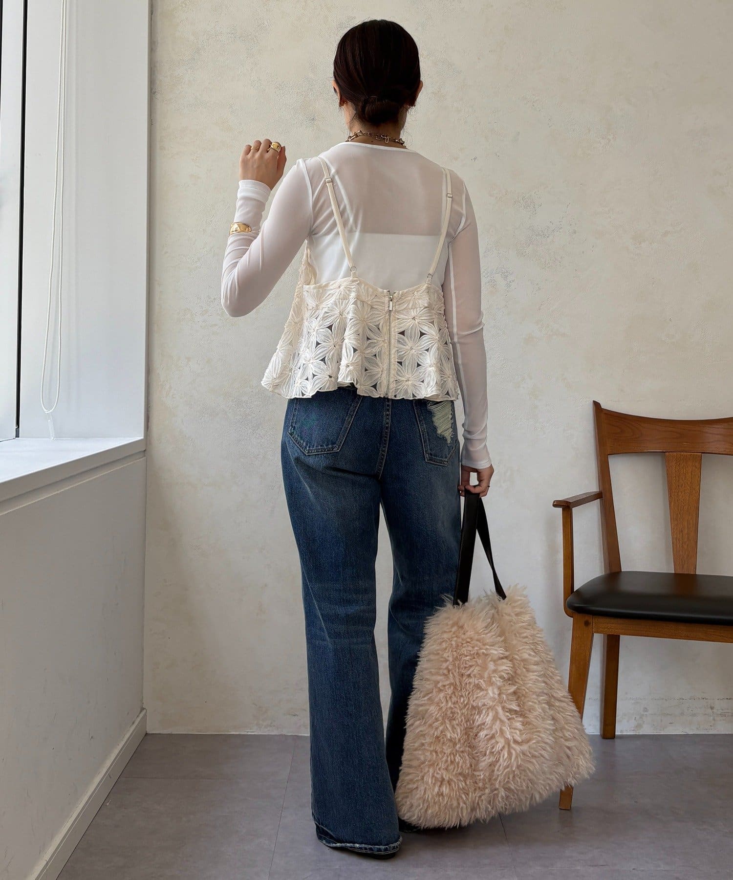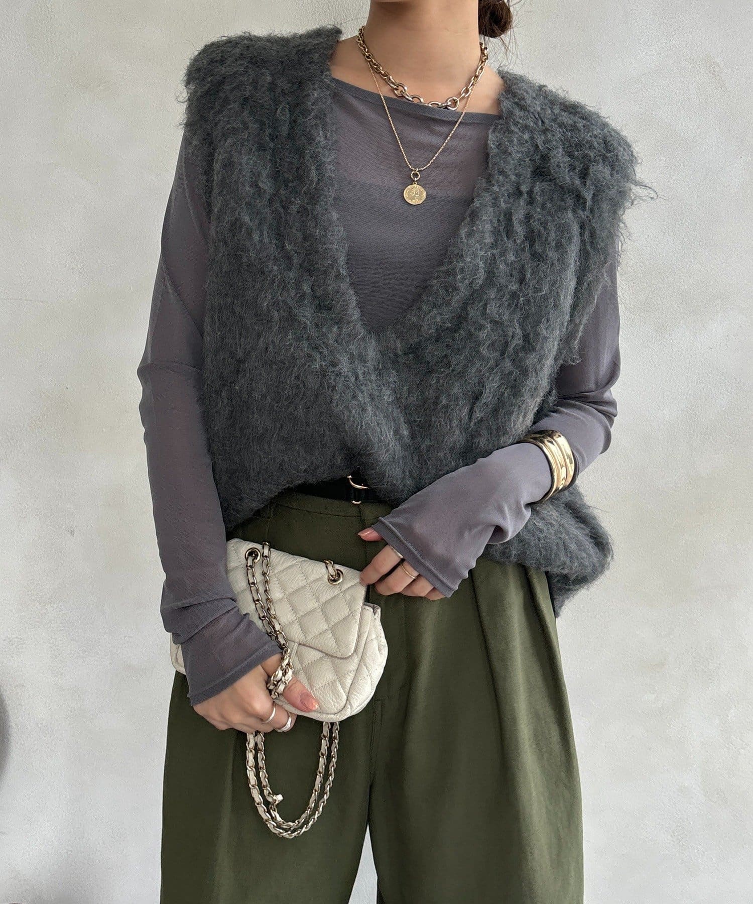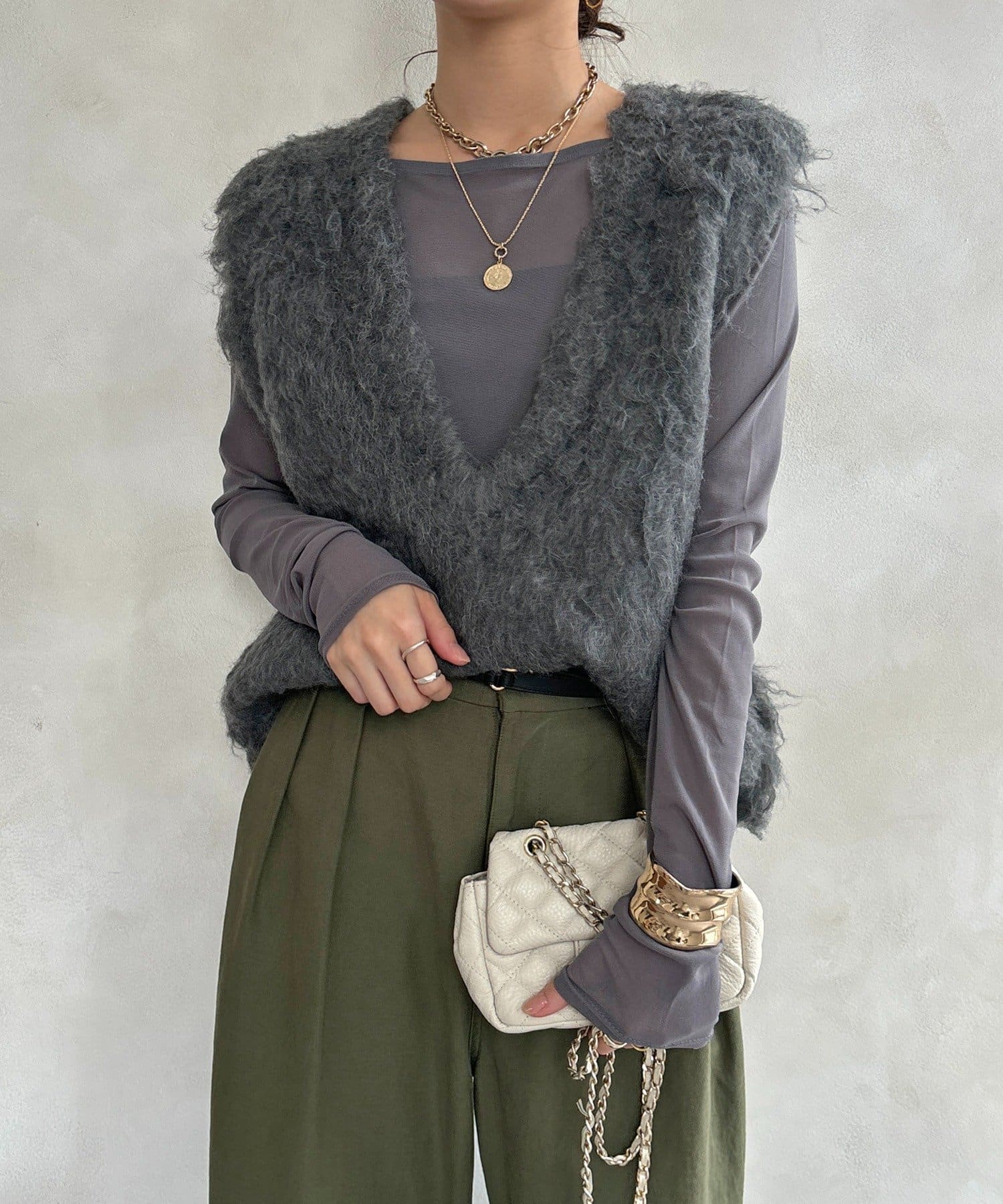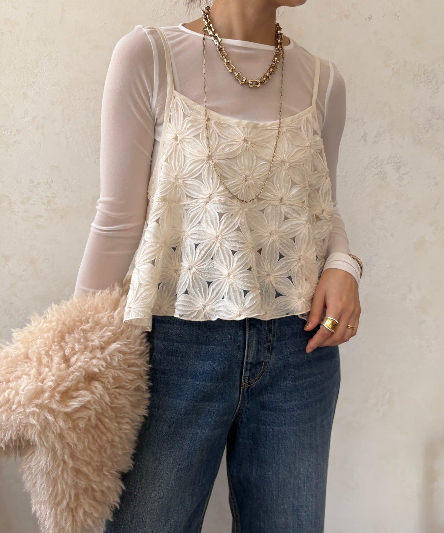 透け過ぎない素材感がポイントとなってくれるアイテム。