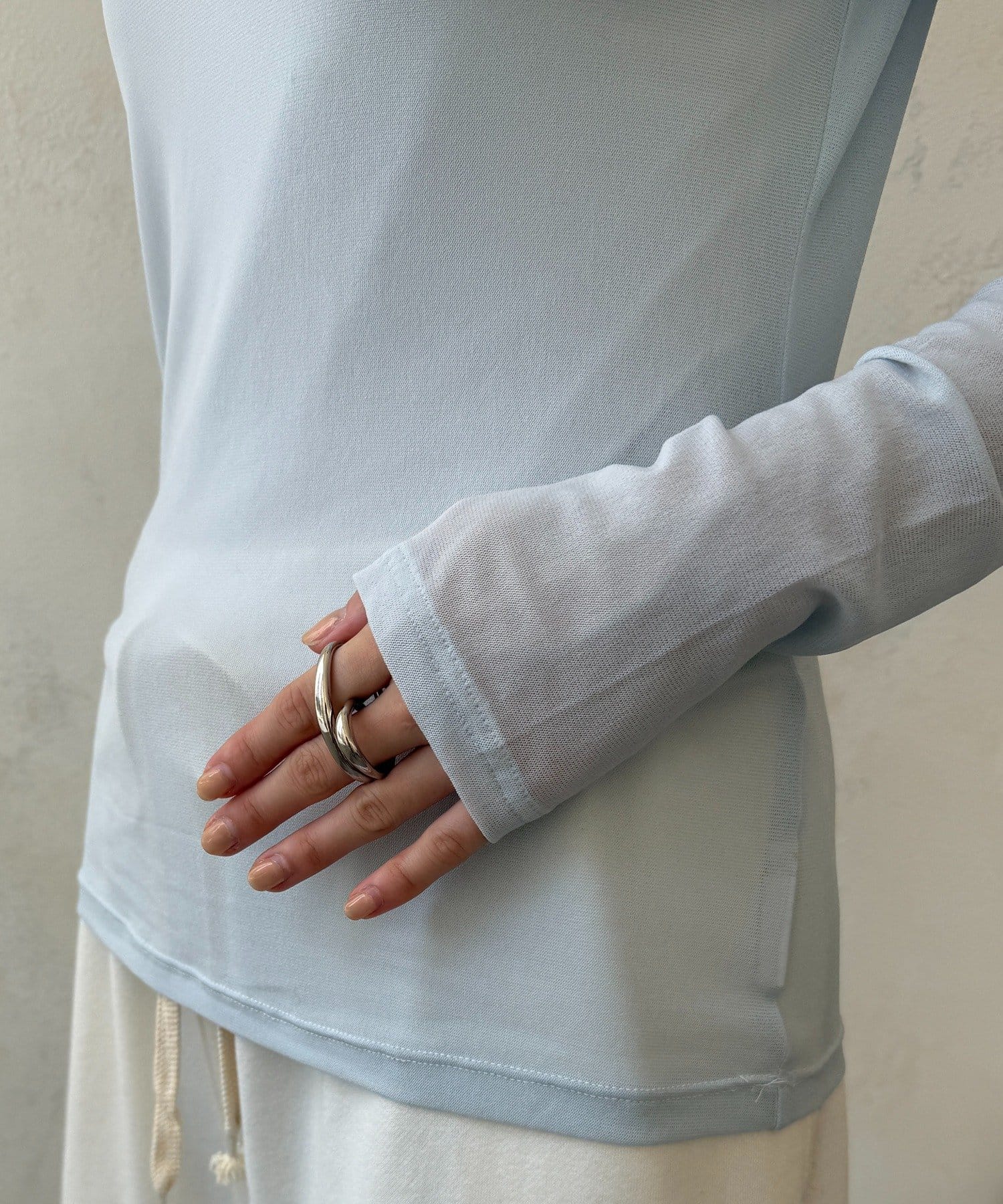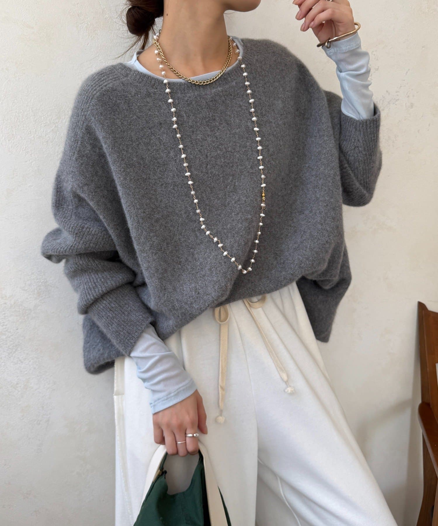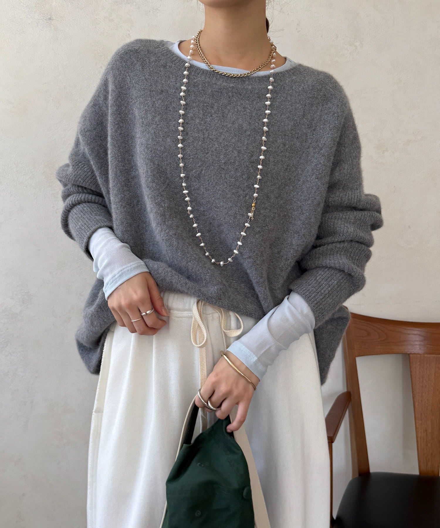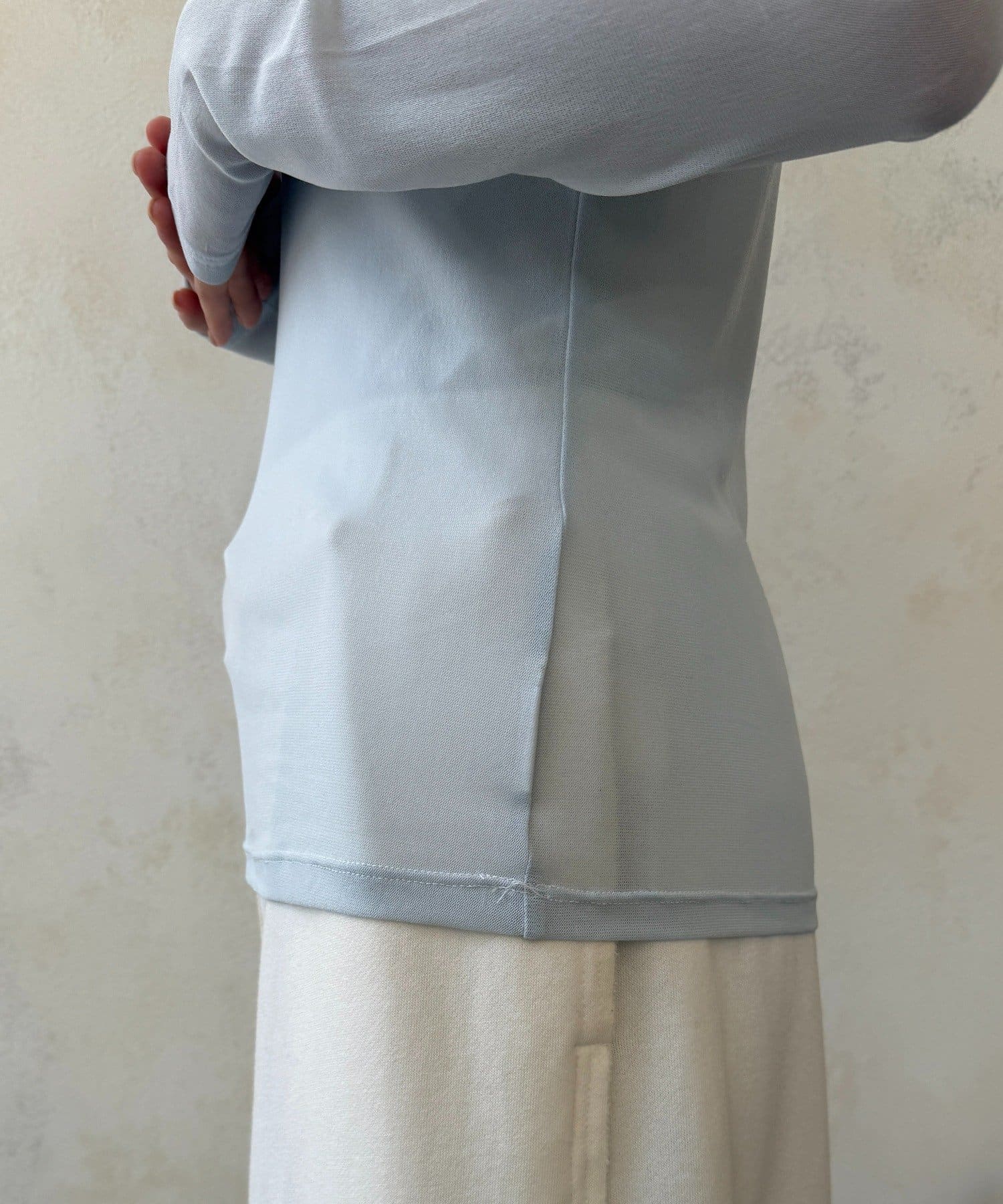 コンパクトでごわつかないサイズ感のため、レイヤードスタイルのインナーとして最適な1枚です。