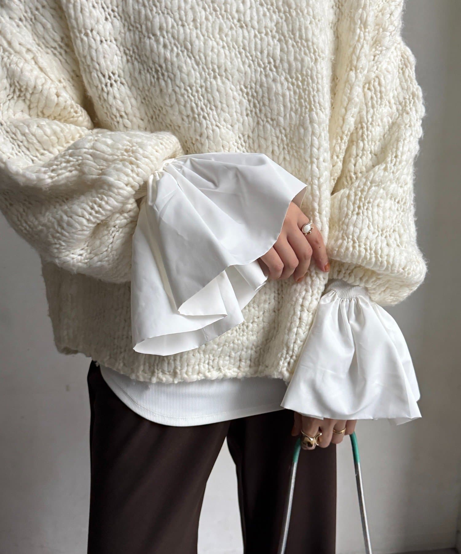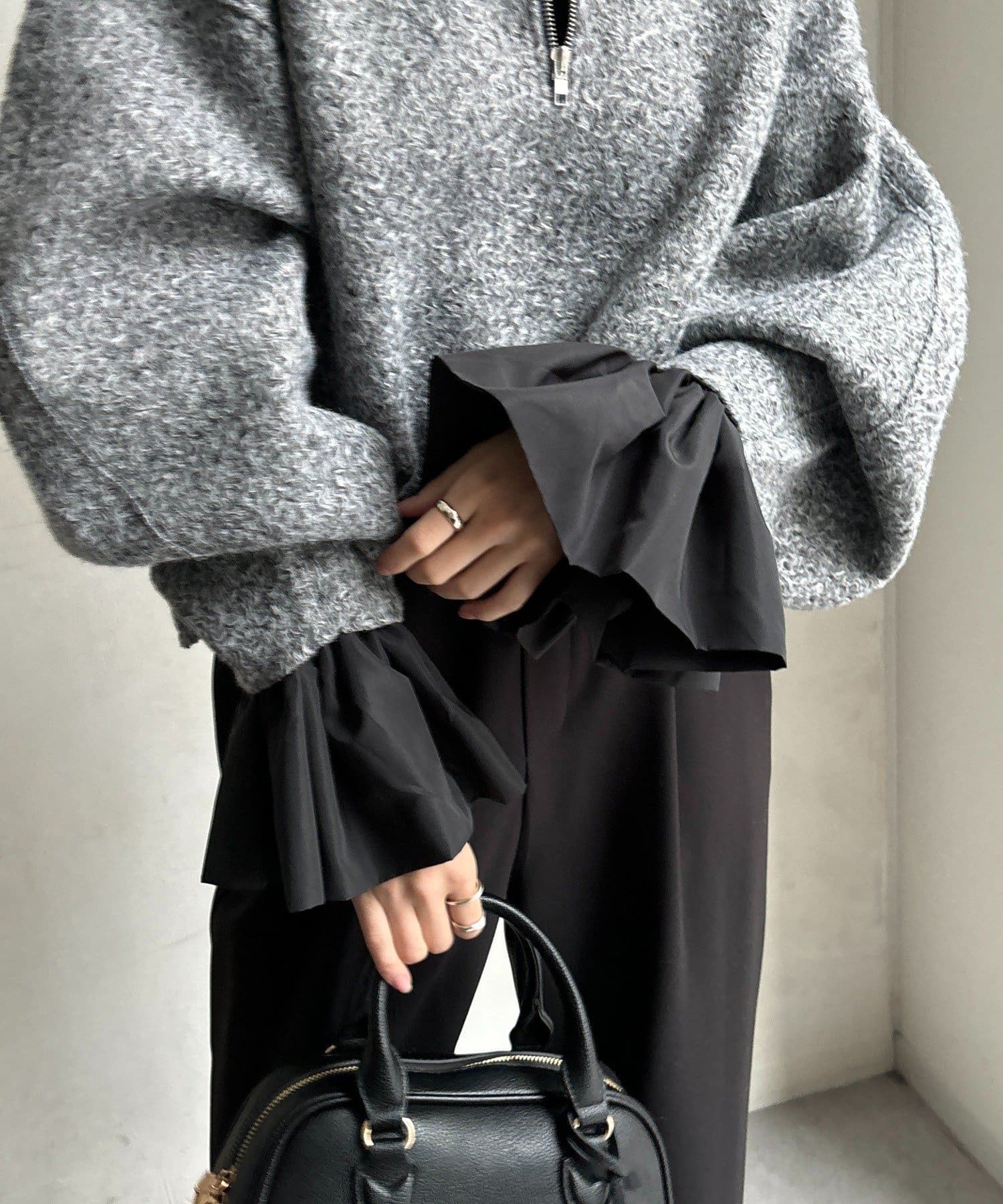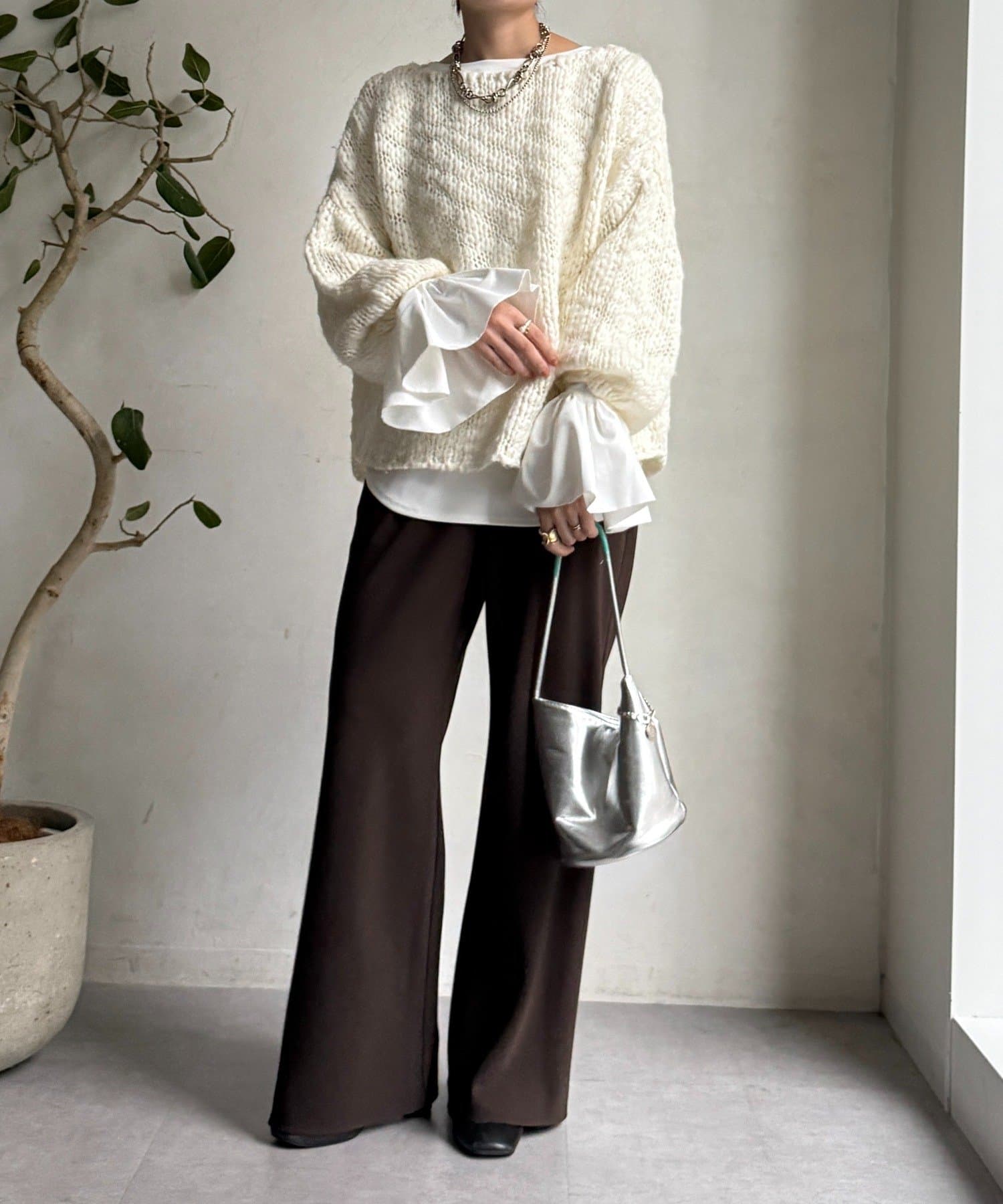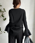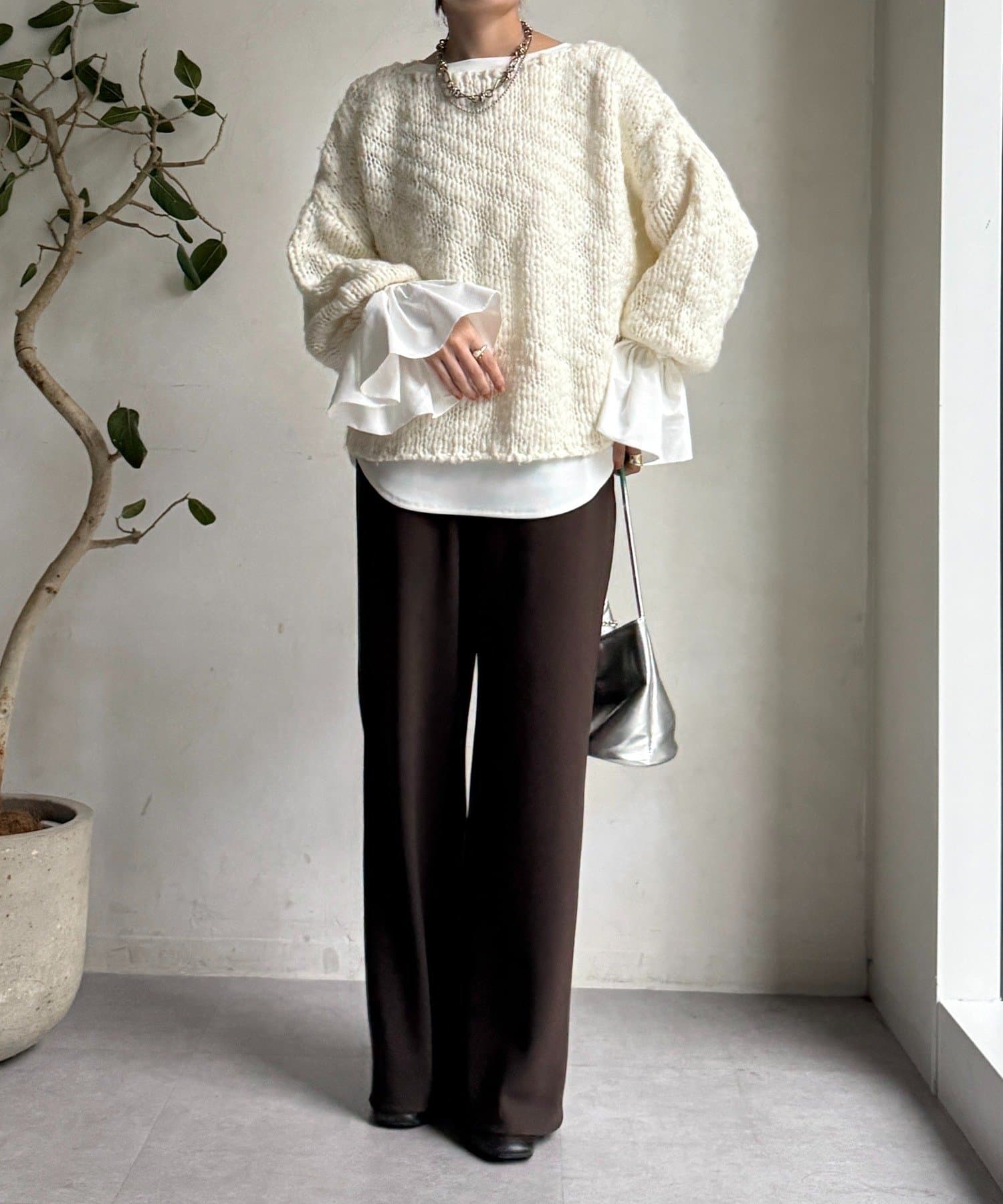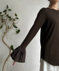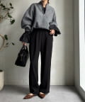 ボリューム感のある袖は、女性らしい柔らかさを演出しながらも甘くなりすぎない絶妙なバランス。