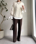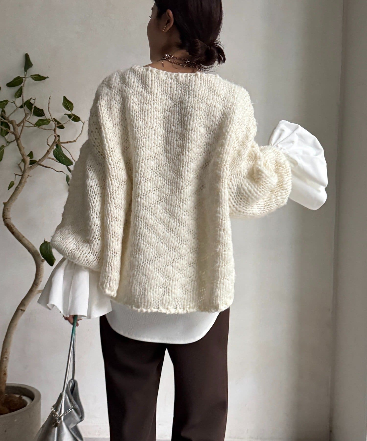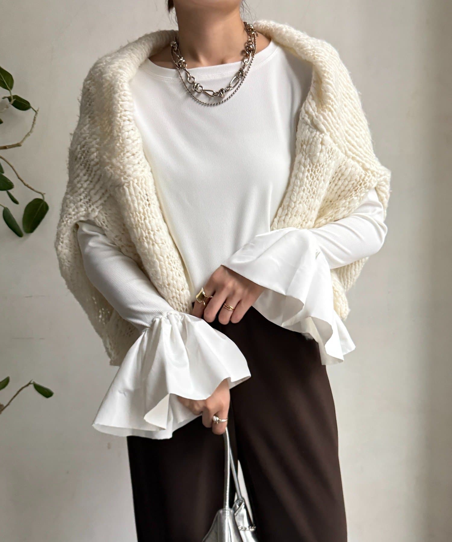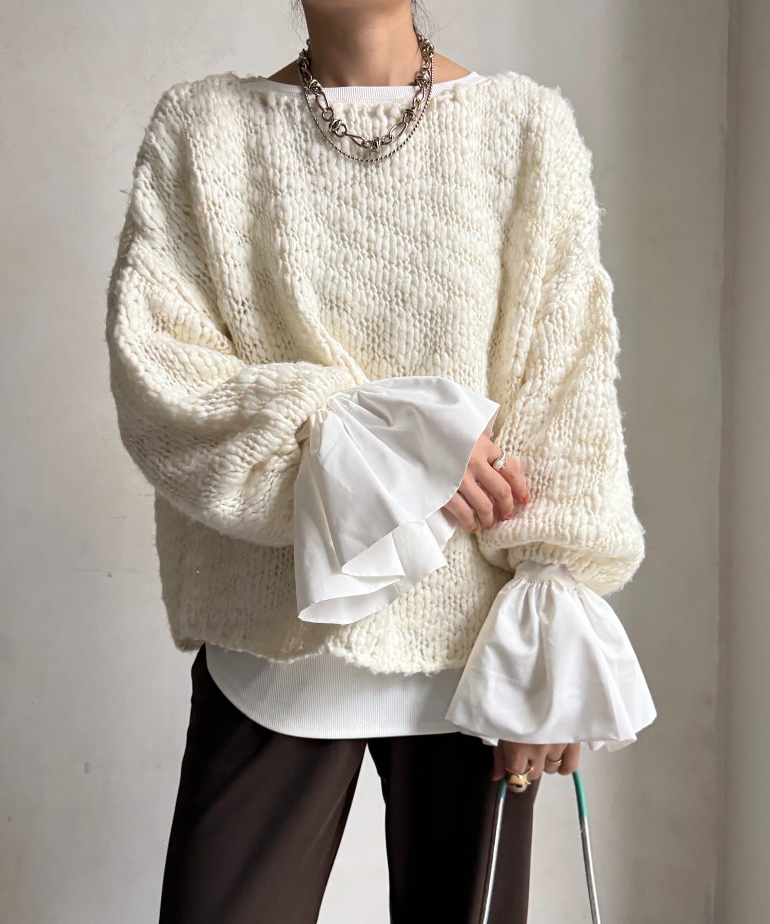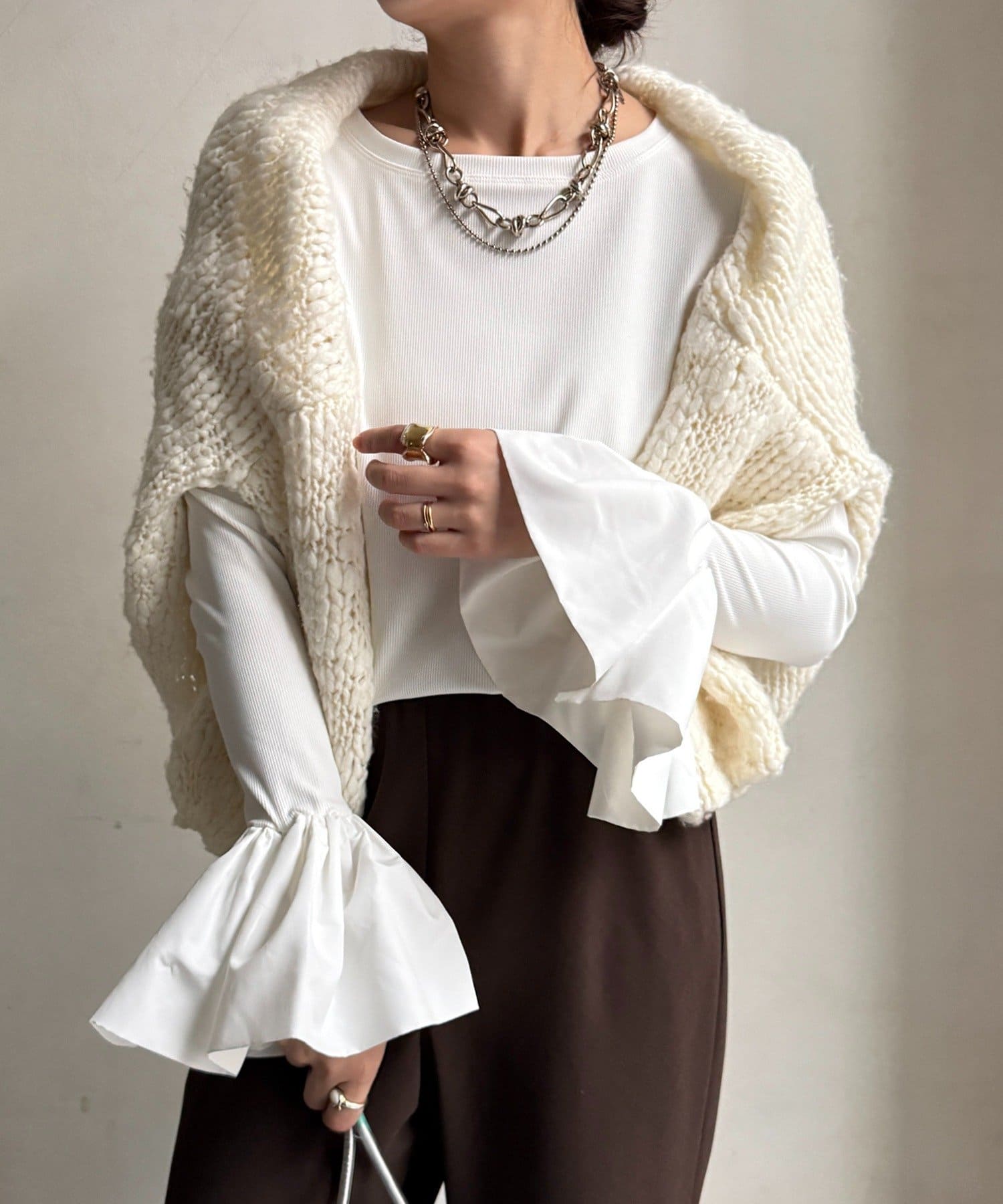 ボリューム感のある袖は、女性らしい柔らかさを演出しながらも甘くなりすぎない絶妙なバランス。