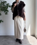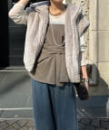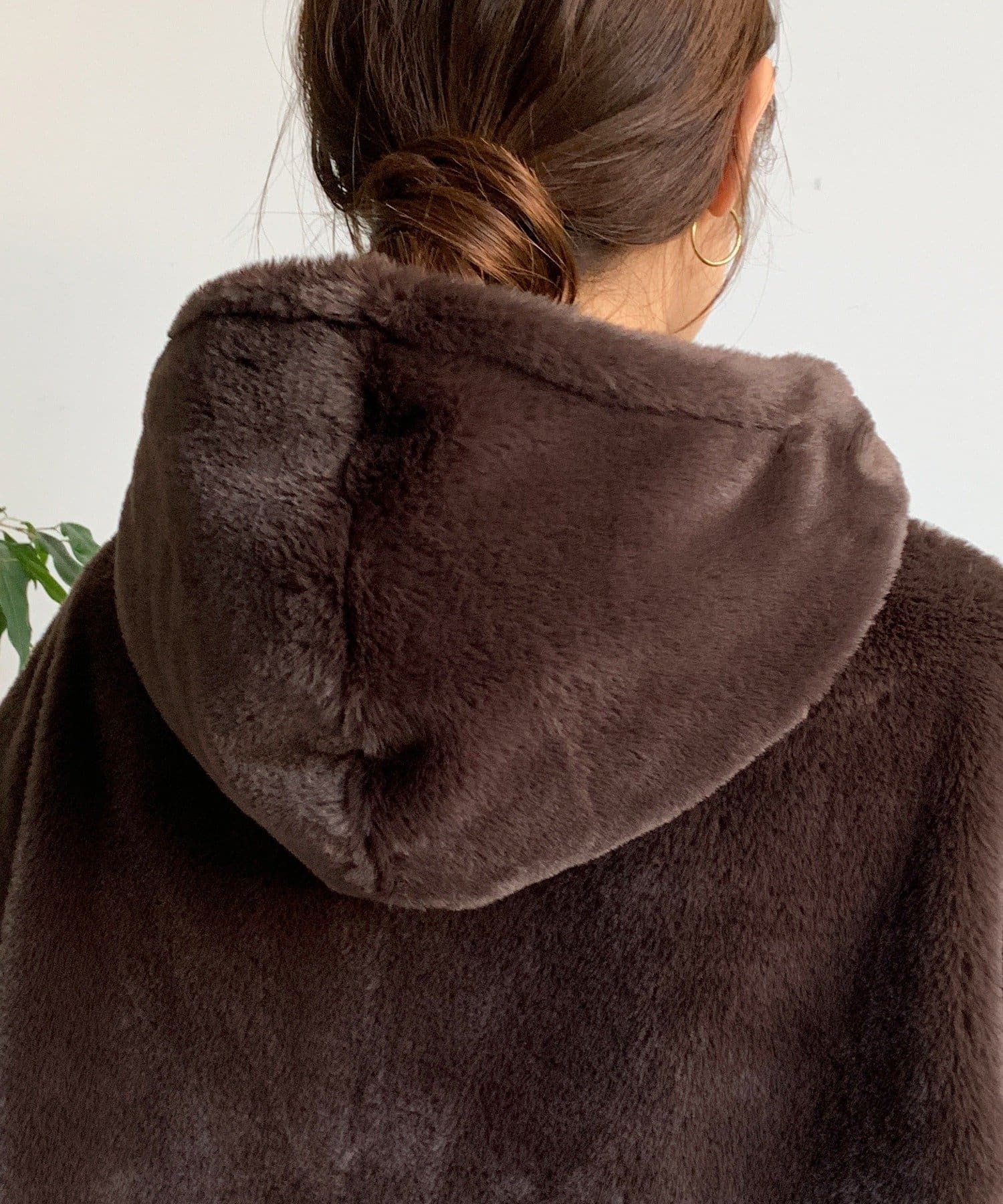 ボリュームのあるフードデザインが甘さを程よく抑え、フェミニンすぎず大人な印象に仕上がります。