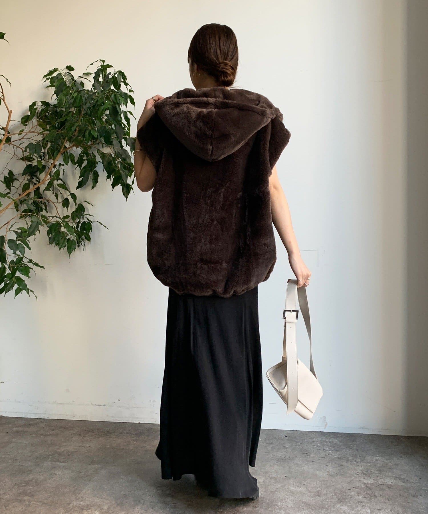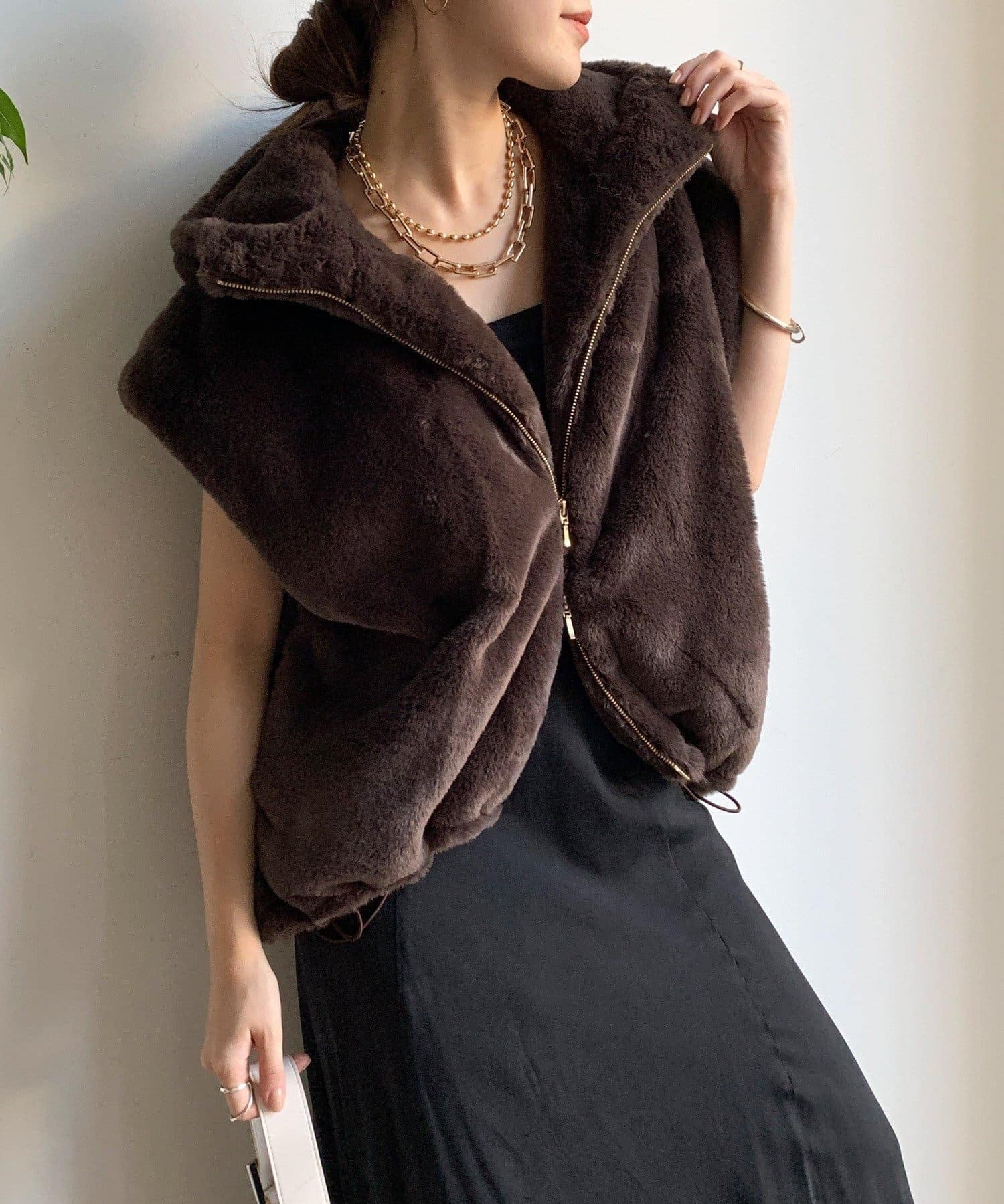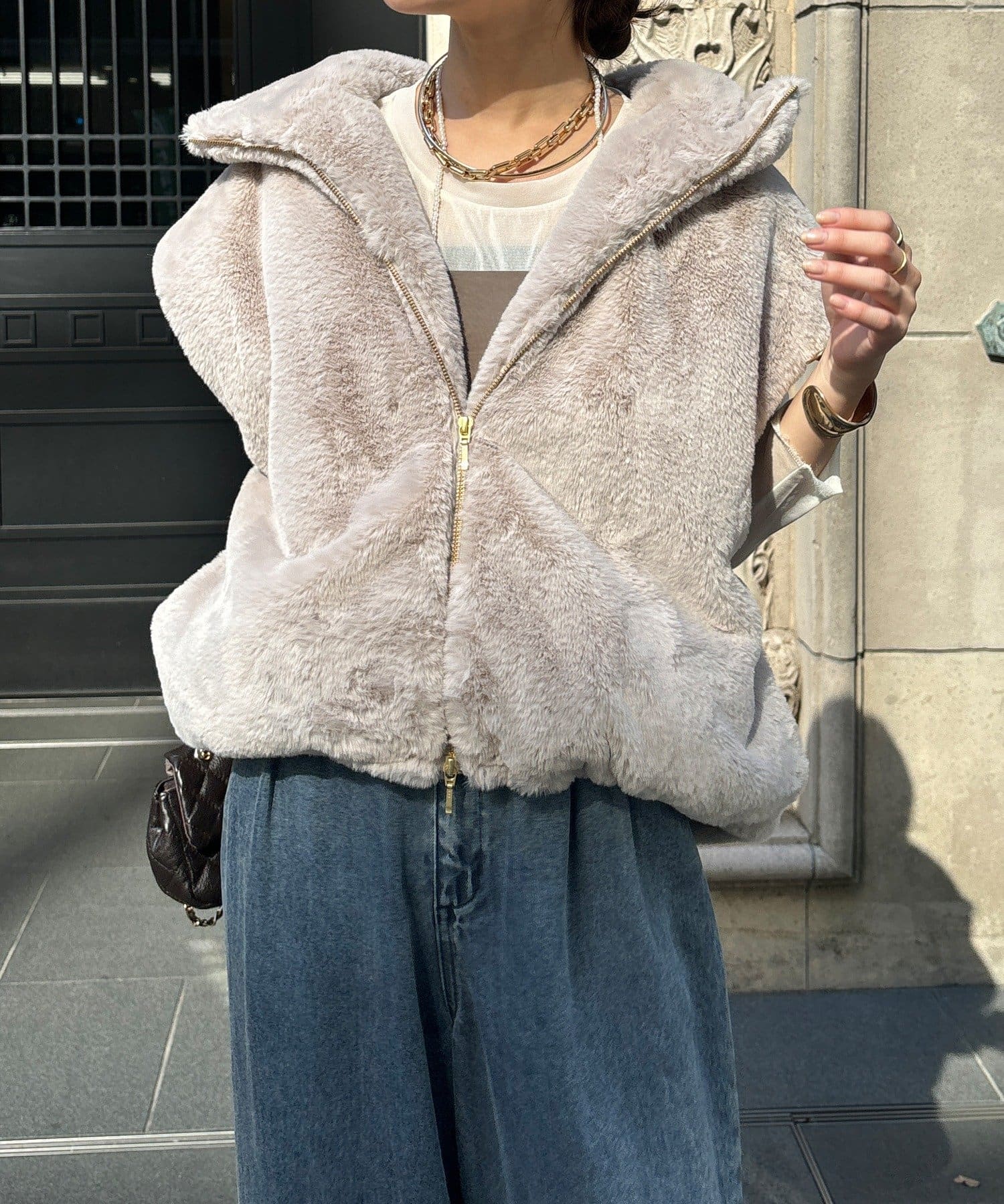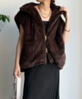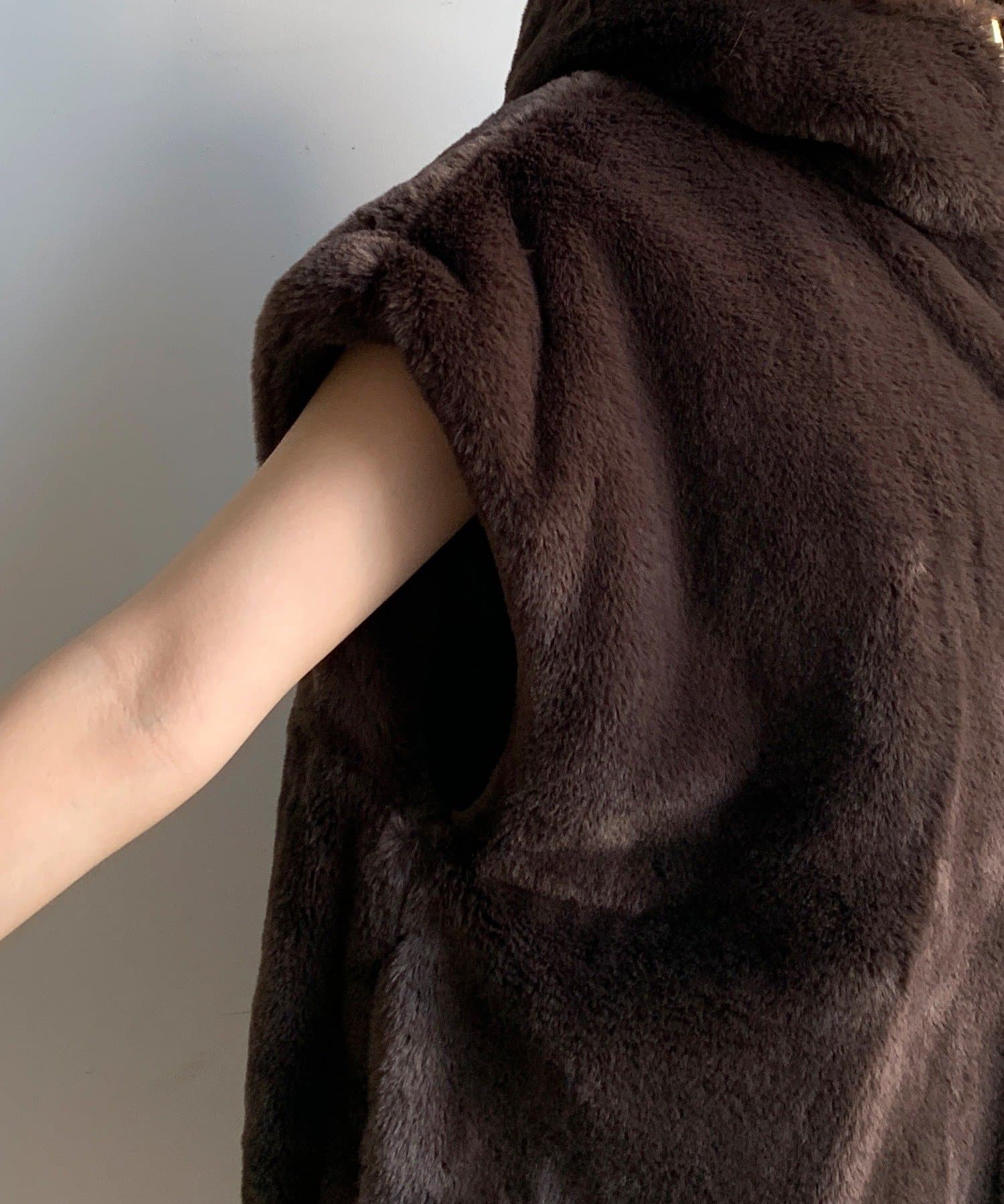 手触りなめらかなフェイクミンクファーを使用した、上品な光沢感が魅力のファーベスト。