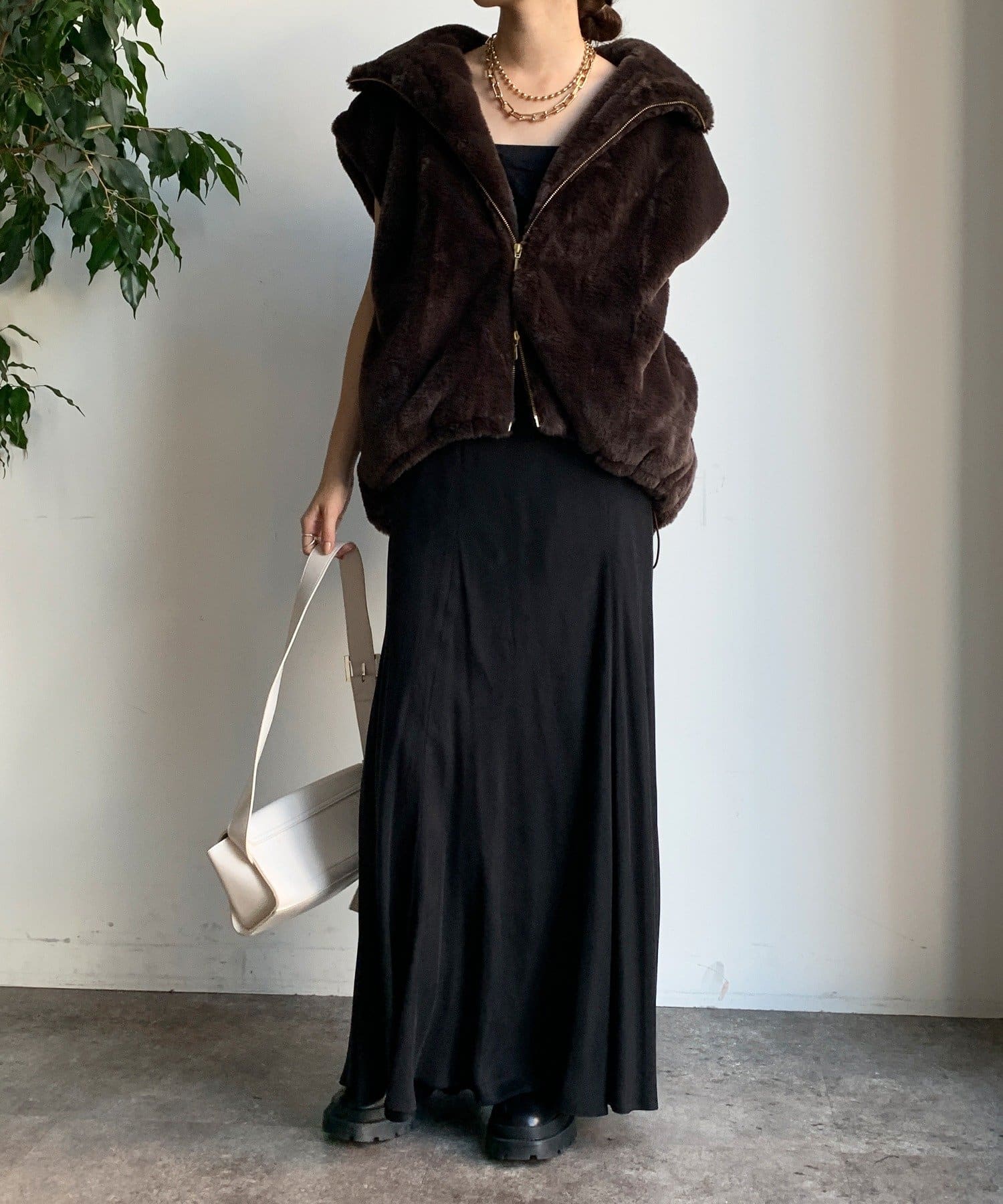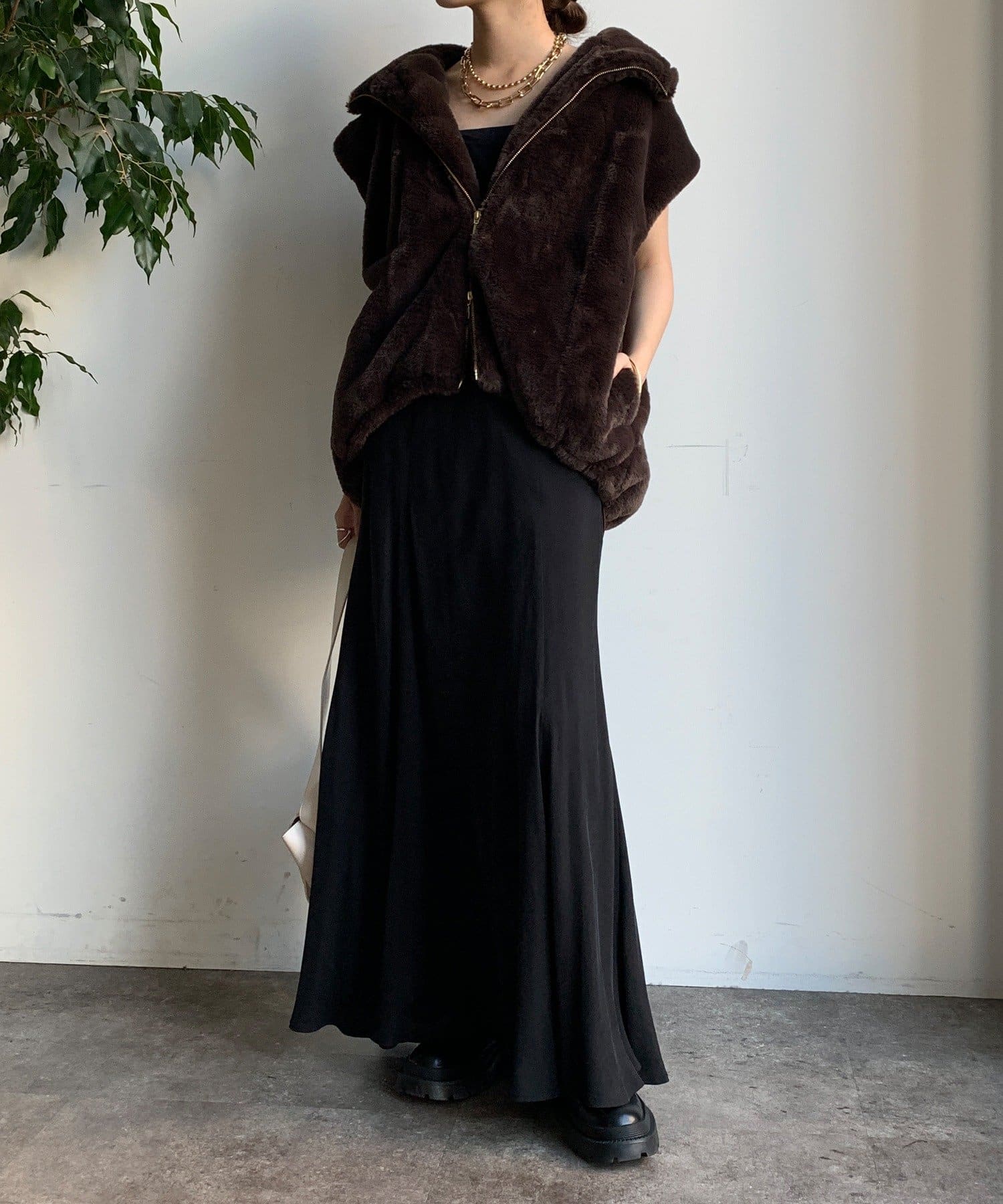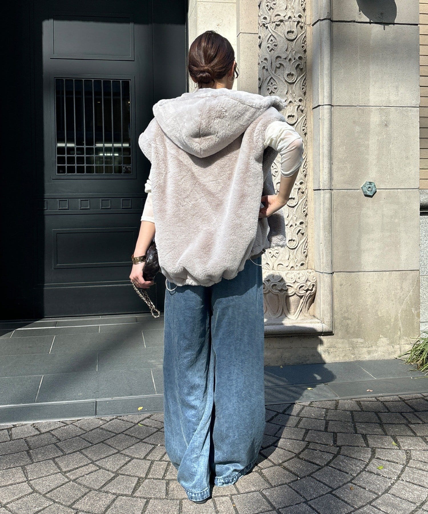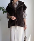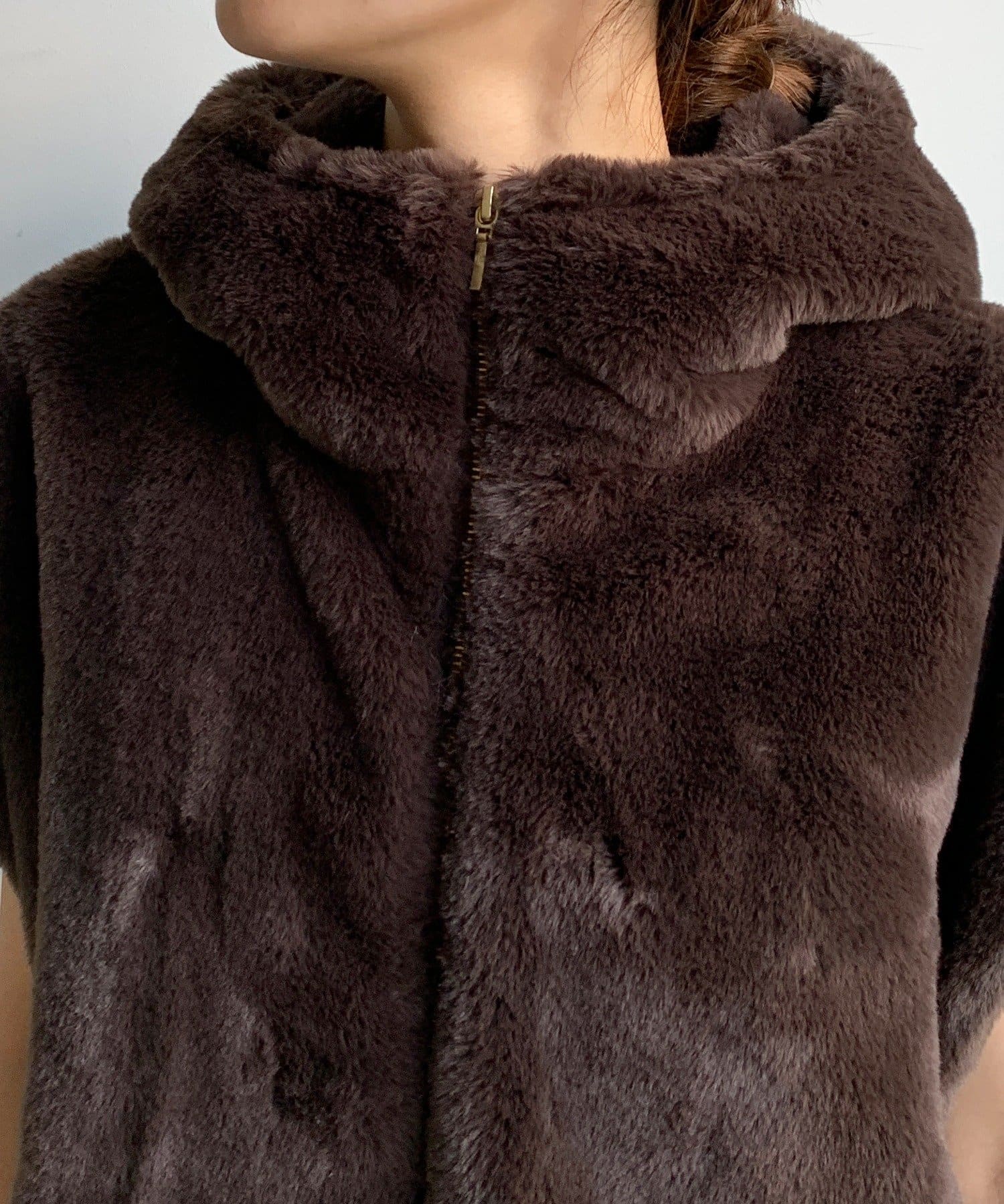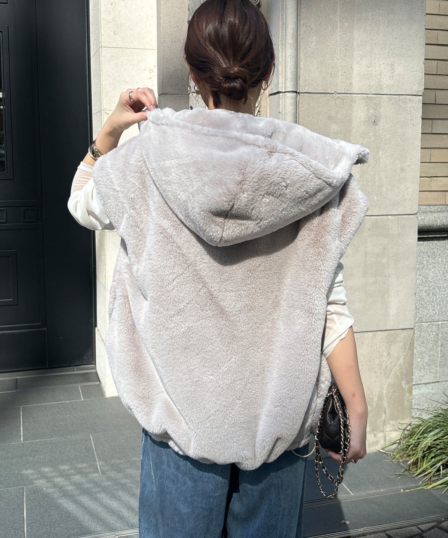 手触りなめらかなフェイクミンクファーを使用した、上品な光沢感が魅力のファーベスト。