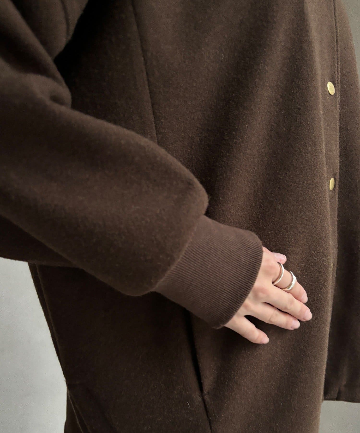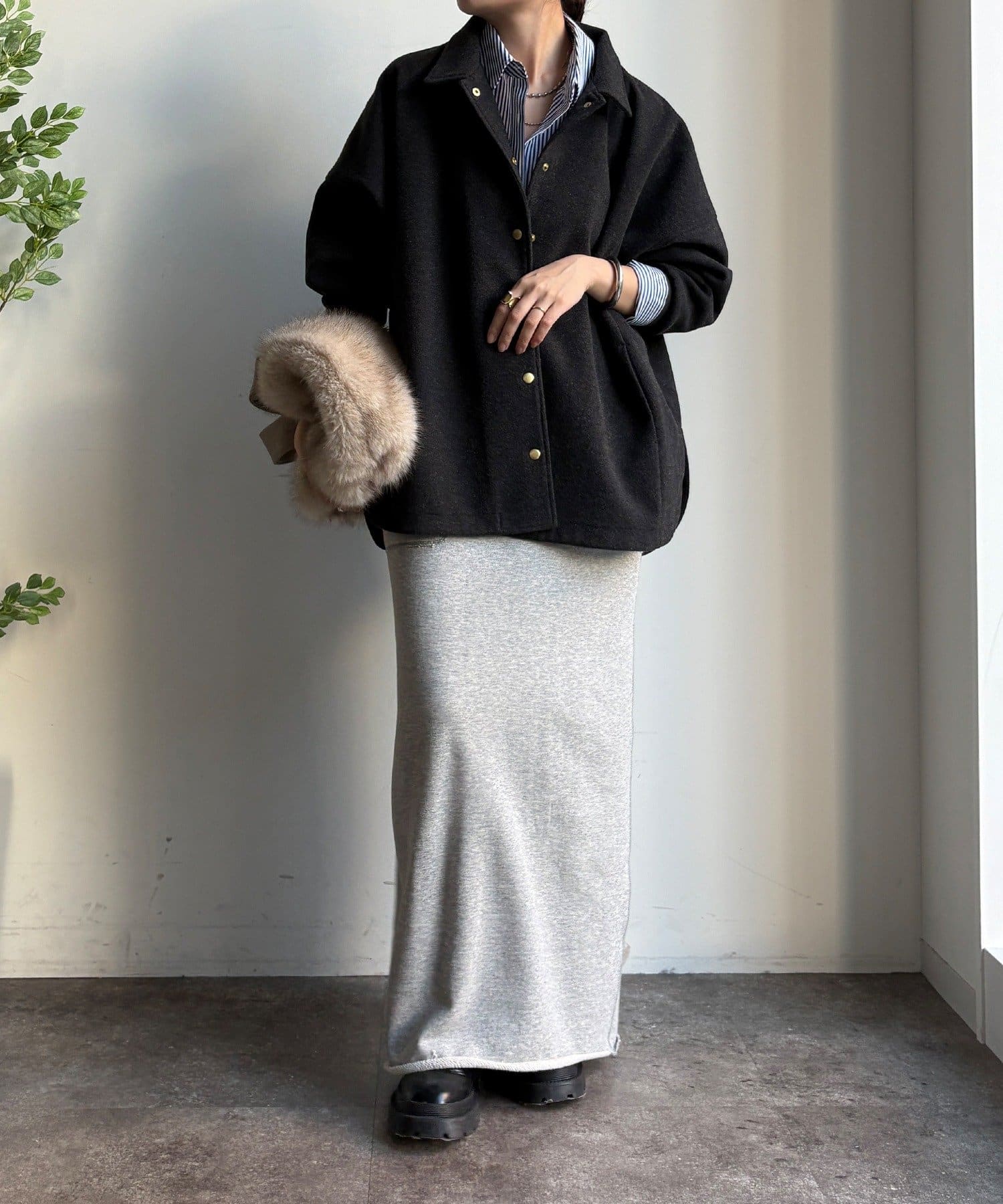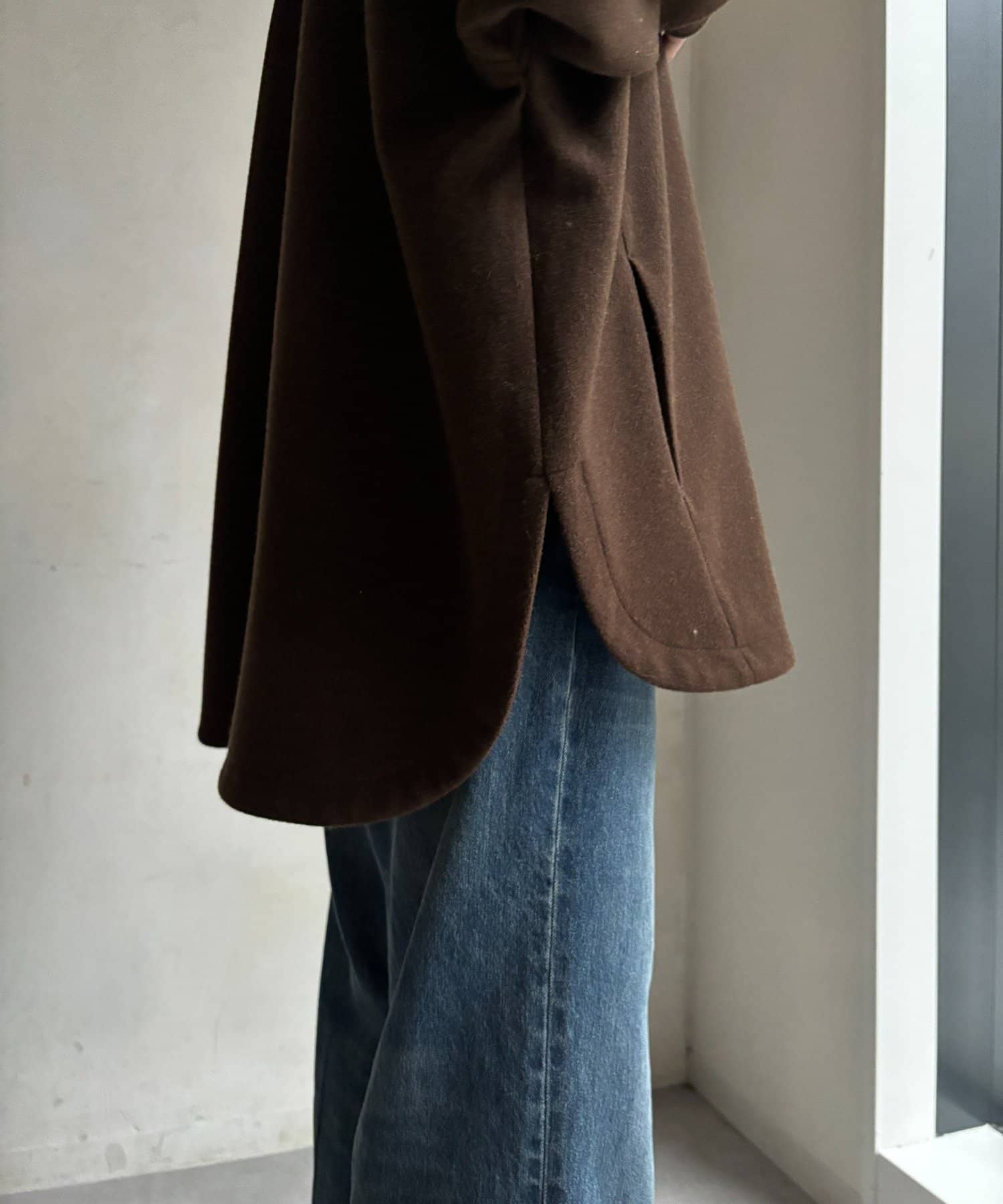 程よくハリのあるメルトン生地がシルエットを美しくキープしつつ、軽く柔らかなタッチでストレスフリーに着こなせます。