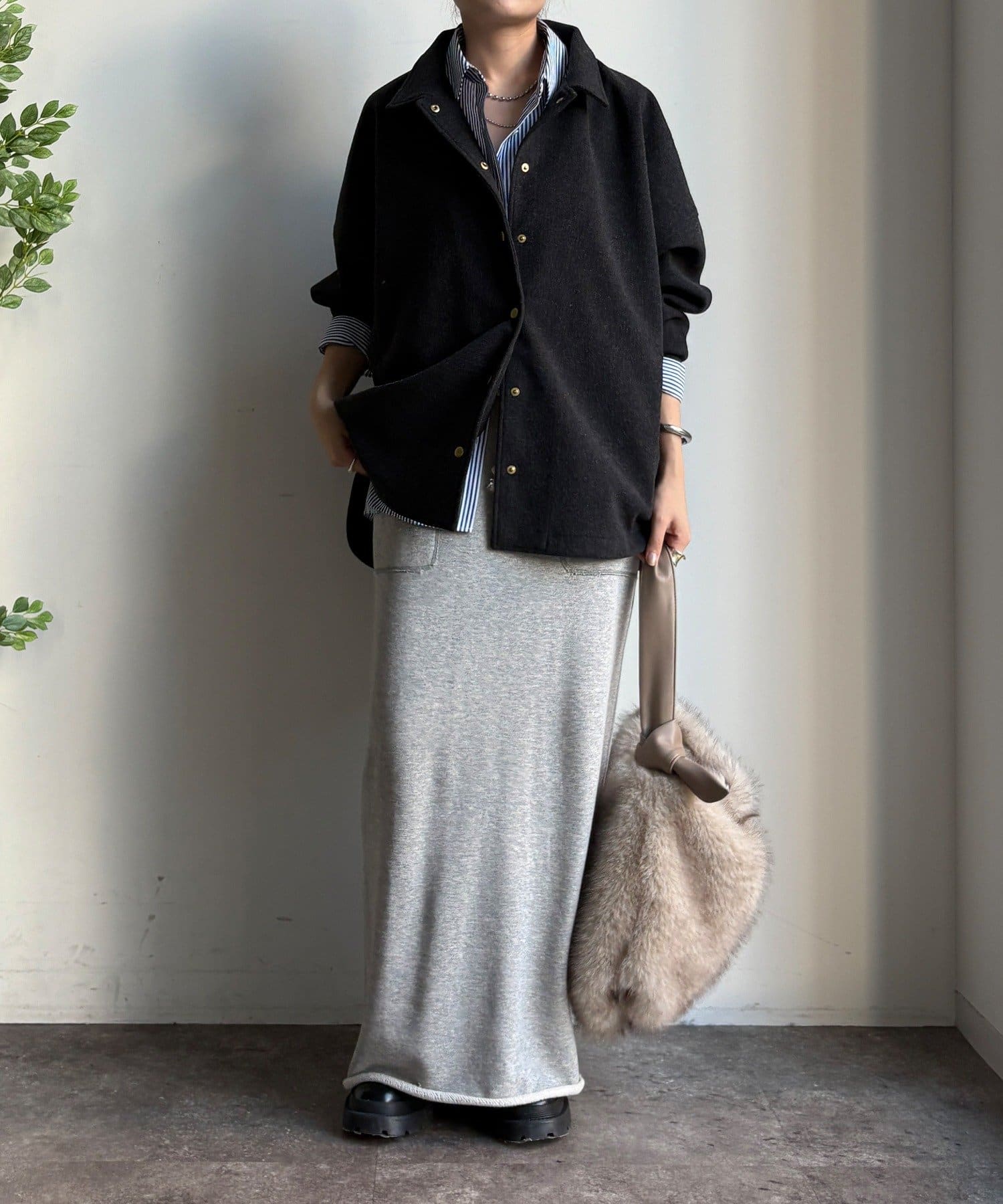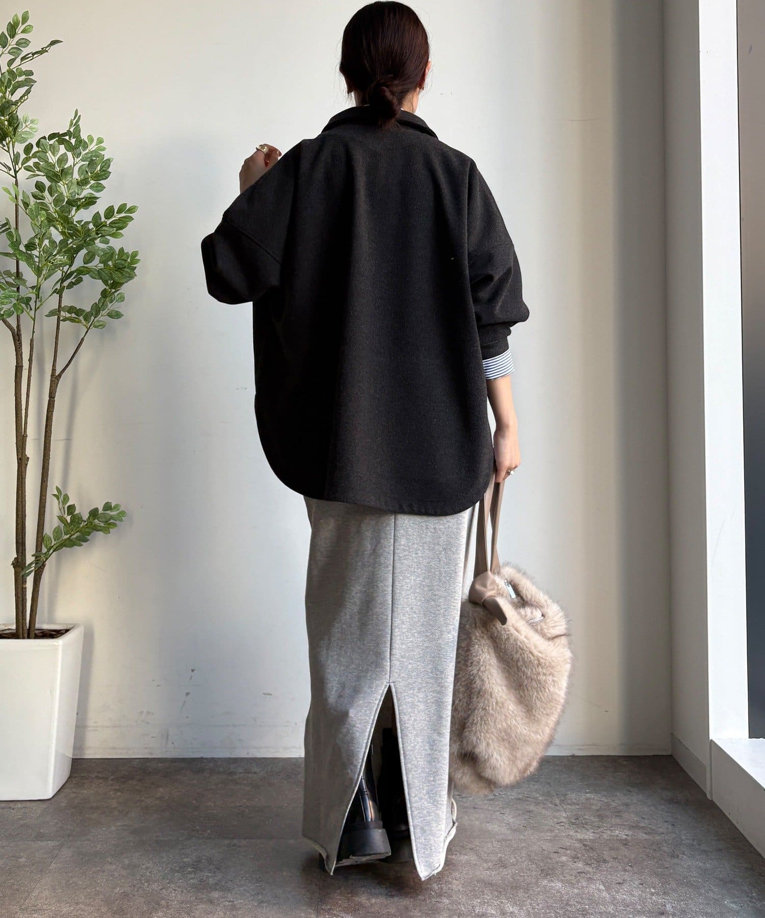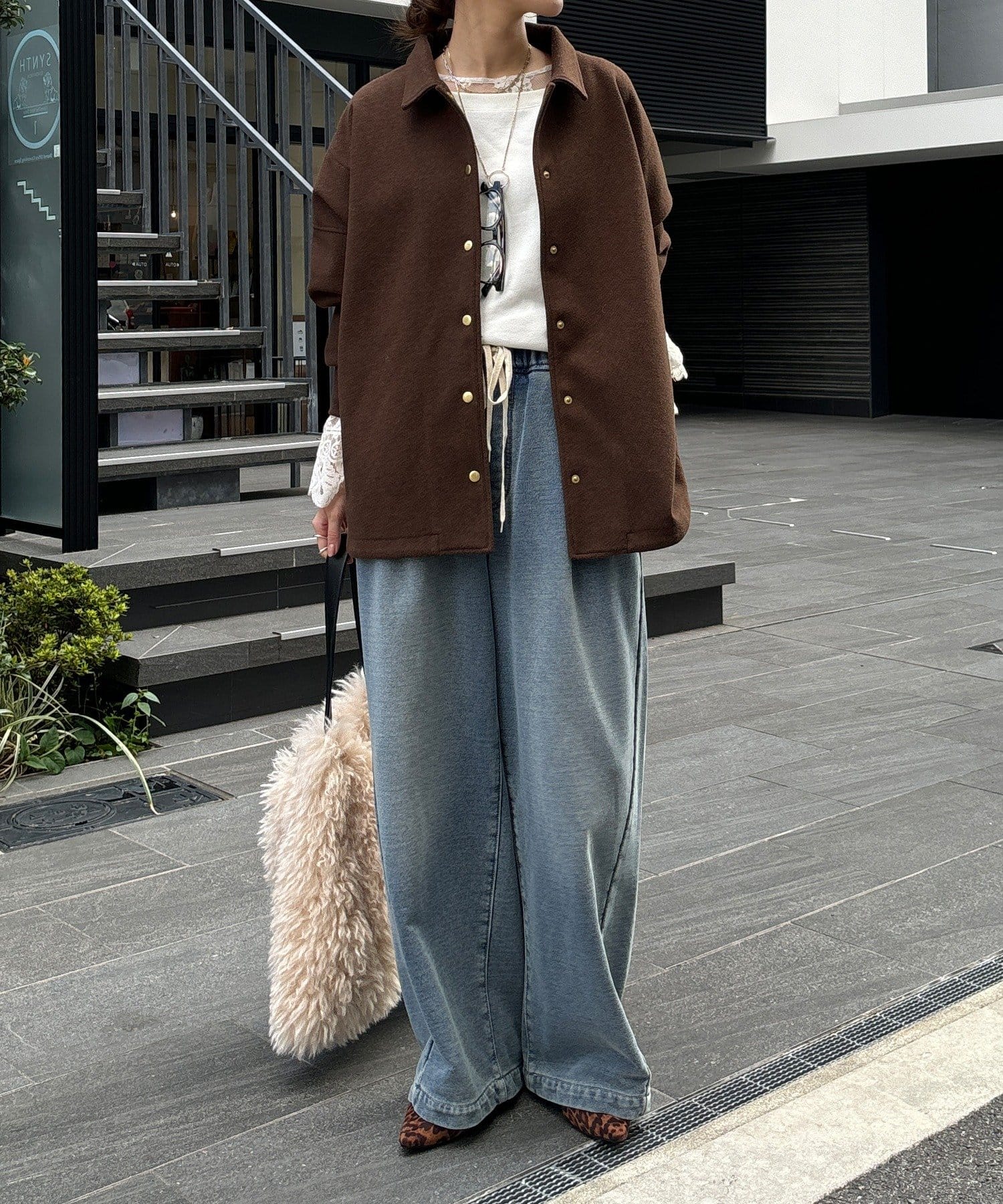 程よくハリのあるメルトン生地がシルエットを美しくキープしつつ、軽く柔らかなタッチでストレスフリーに着こなせます。