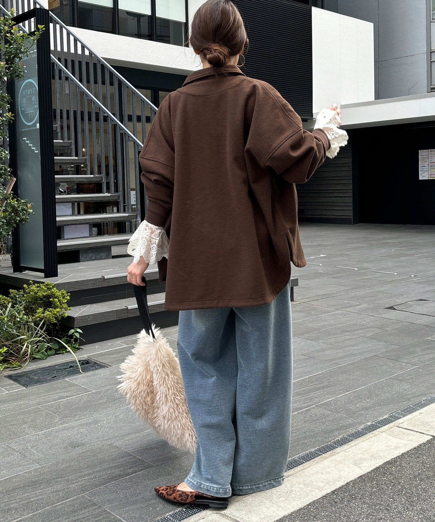 TOP > DOUDOU > レディース > ジャケット/アウター > その他ジャケット/ブルゾン > 【WEB限定】ライトメルトンシャツジャケット