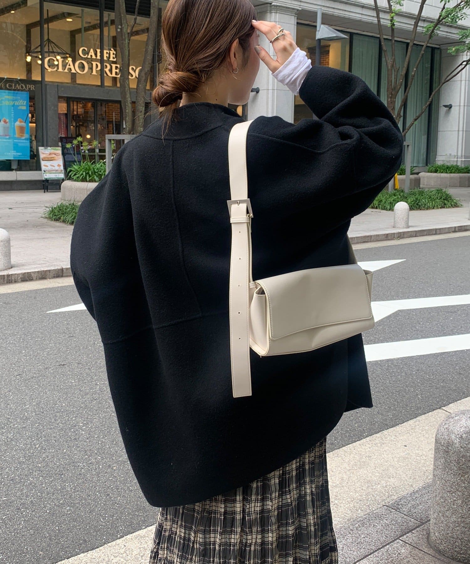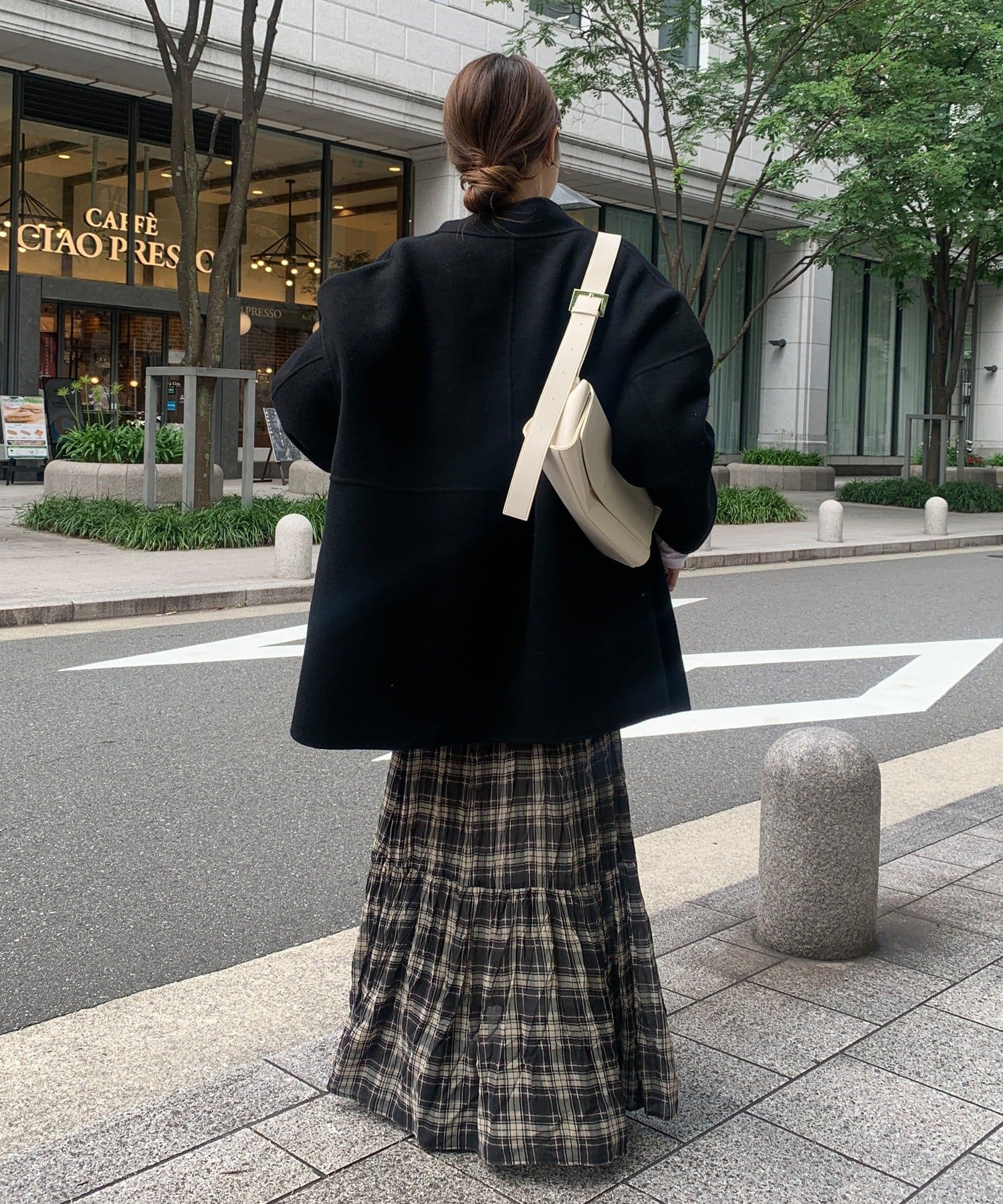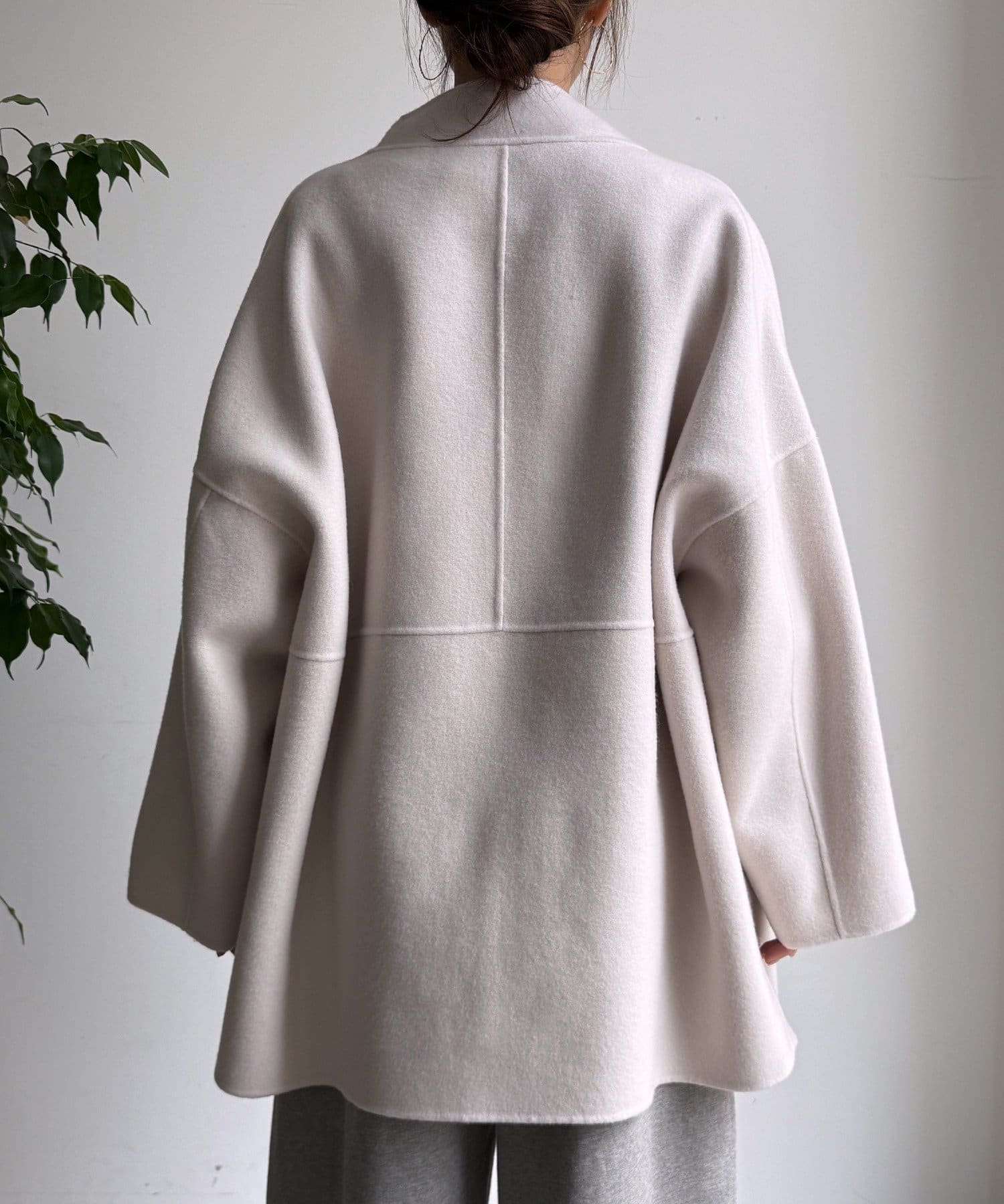バックの切り替えはコクーンシルエットにすることで、後ろ姿にも抜かりのない印象に。