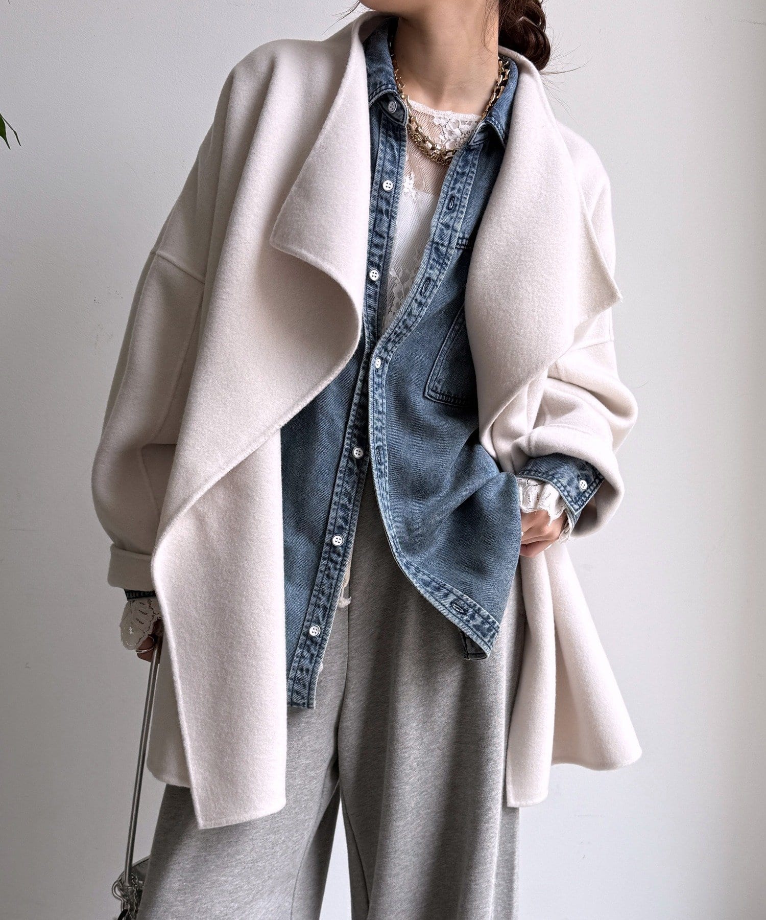 裏地をつけていないため、とっても軽くそれなのに暖かい着心地を叶えます。